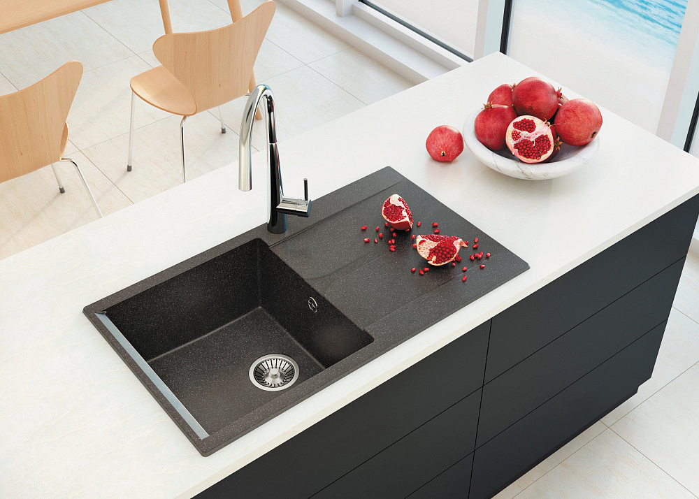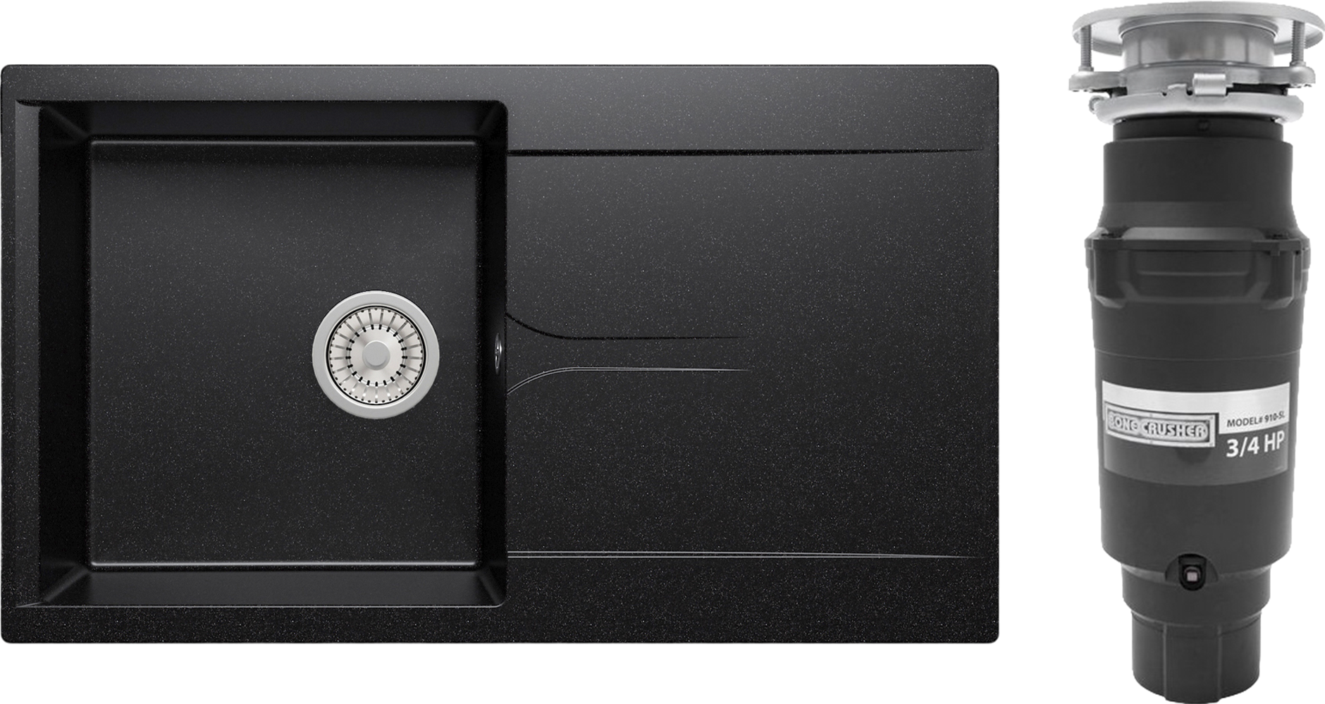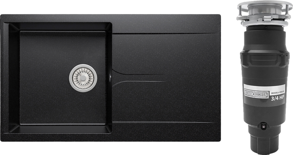 Комплект Мойка Polygran Gals 860, черная + Измельчитель Bone Crusher BC 910-SL-Slim Line