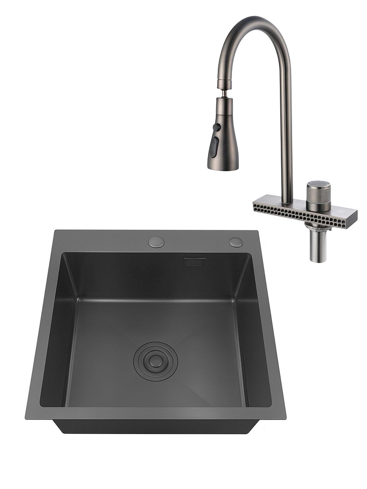 Комплект Мойка РМС MR-5050BL Matte + Смеситель SUS130PVD-017F-2