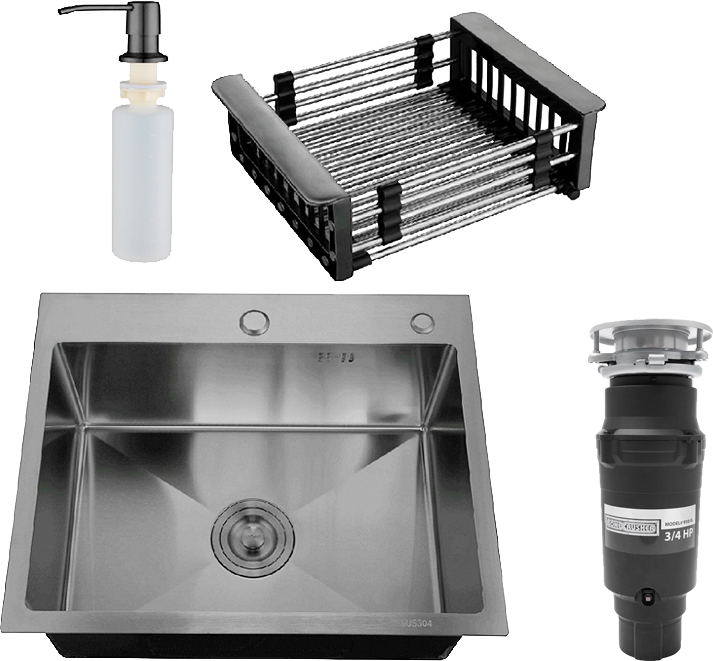 Комплект Мойка РМС MR-5843BL, c корзиной и дозатором, графит + Измельчитель Bone Crusher BC 910-SL-Slim Line