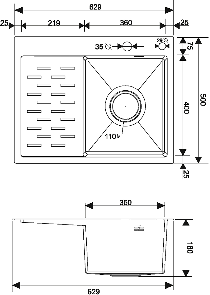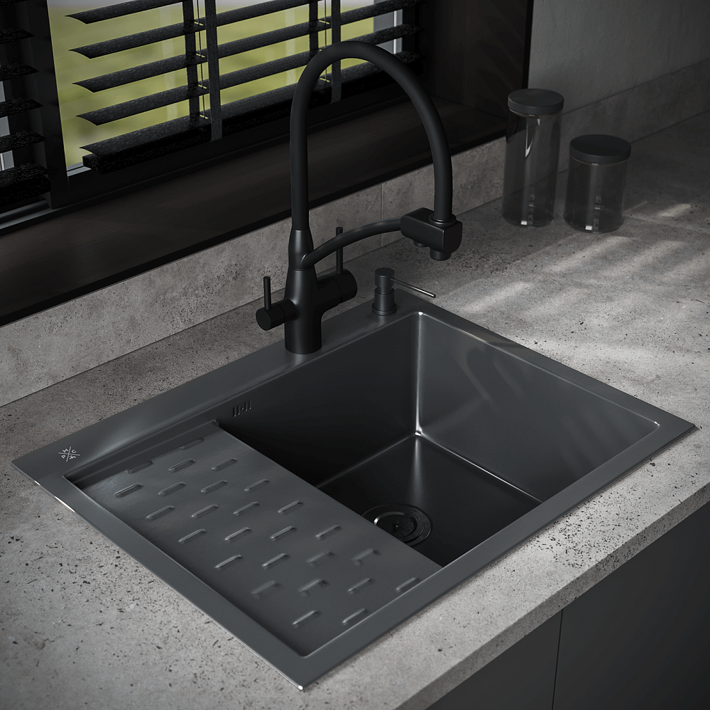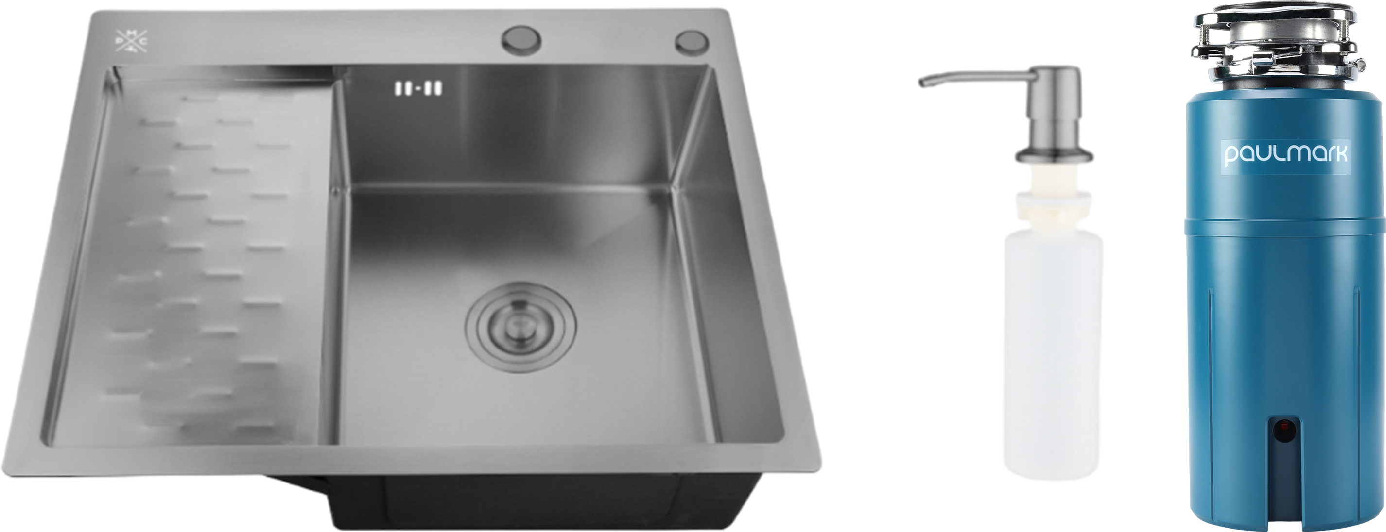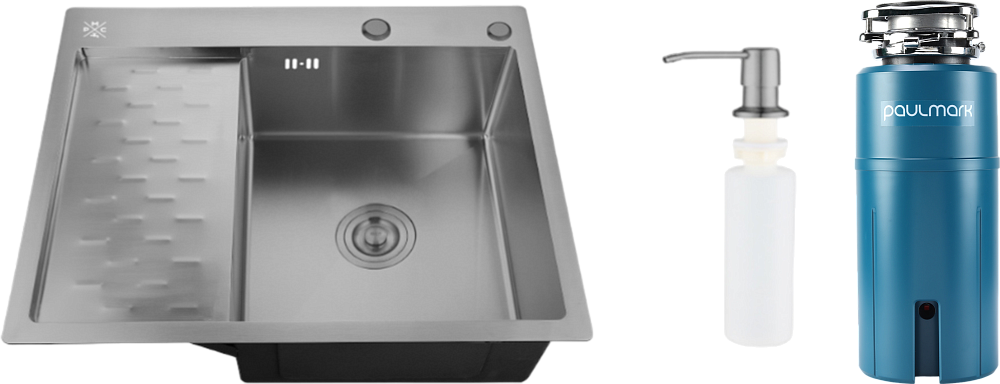 Комплект Мойка РМС MRK-6350BL-R, c дозатором, графит + Измельчитель Paulmark Intenso