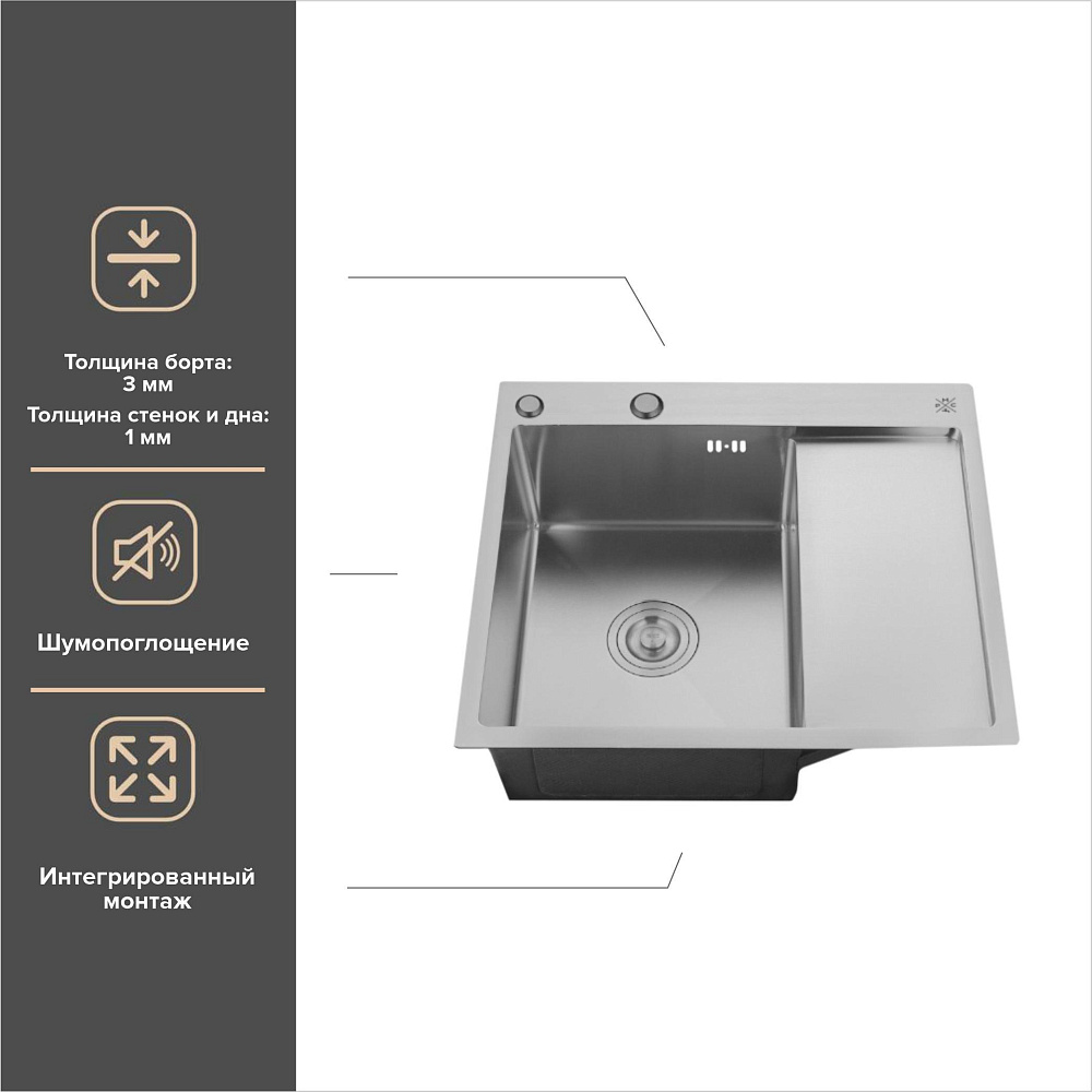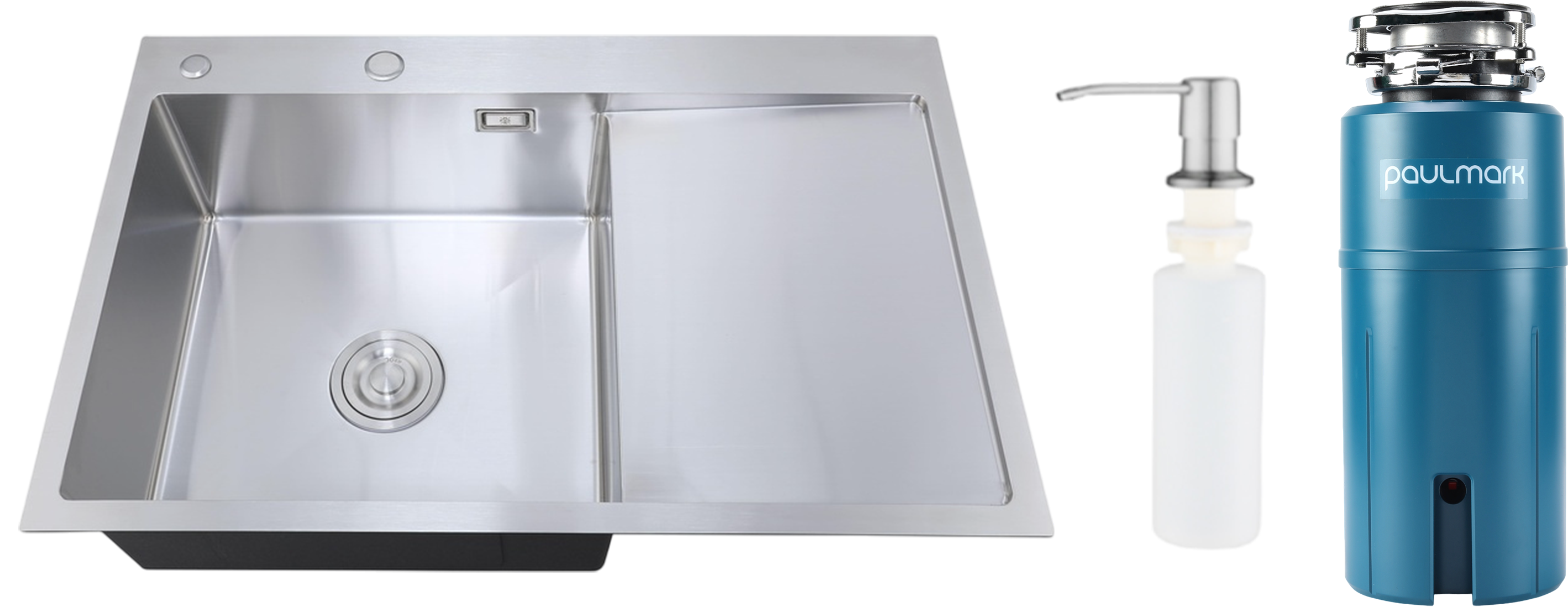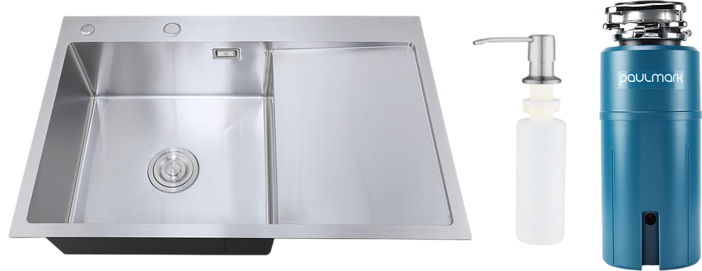 Комплект Мойка РМС MRK-7851L L, c дозатором, серый + Измельчитель Paulmark Intenso