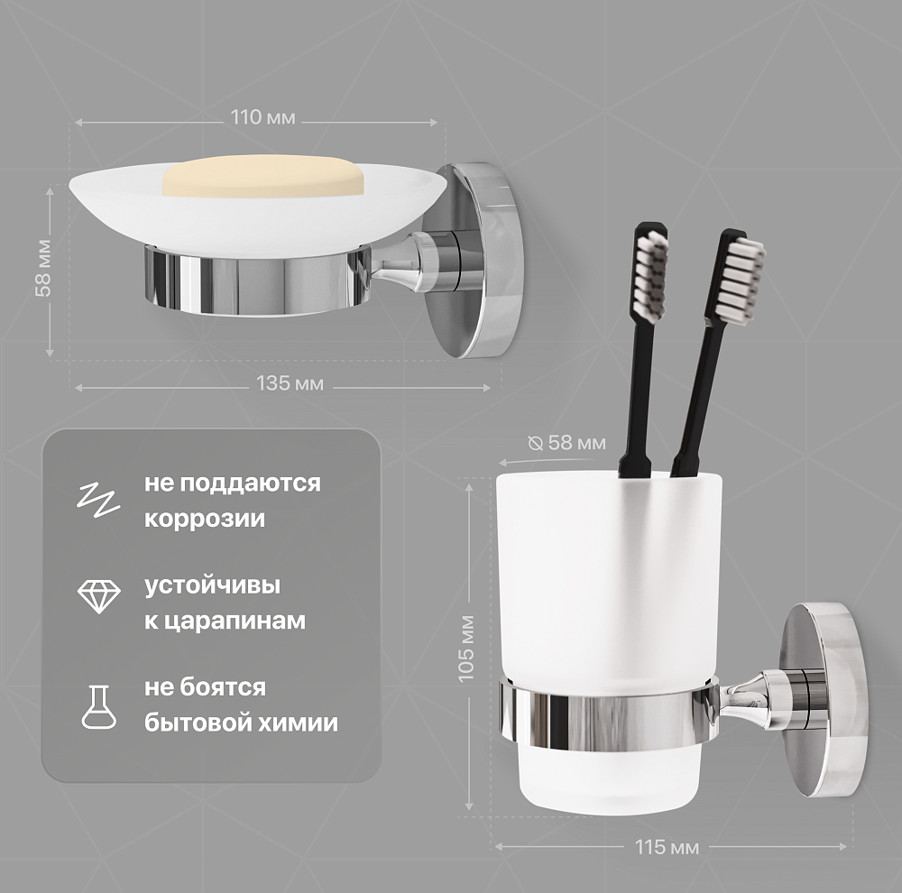Комплект Мыльница DEKOR BANYO Alina A40 405 + Стакан A40 406 + Крючок A40 408 10