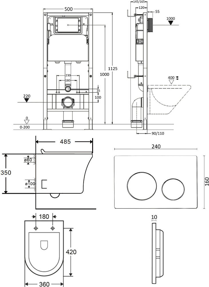 Подвесной безободковый унитаз с инсталляцией и кнопкой смыва от немецкого бренда Orange - функциональное и эргономичное решение. Материал унитаза санфарфор отличается беспористой структурой, высокой прочностью и стойкостью к появлению пятен, что позволит сохранить первоначальный вид изделия на долгие годы использования, гарантия от производителя 25 лет. Обтекаемая форма корпуса не позволяет скапливаться пыли. Мощный смыв воронка-водоворот - подарит комфорт при эксплуатации. Безободковая модель - отсутствие недоступных областей для уборки обеспечит простой уход и отсутствие посторонних запахов. В комплекте быстросъемная крышка-сиденье с функцией плавного закрывания Soft-close, сиденье изготовлено из прочного материала - дюропласта, петли крышки-сиденья из нержавеющей стали. Скрытая система монтажа, цвет глянцевый белый. Инсталляция обеспечит минимальный уровень шума и максимальный уровень комфорта при эксплуатации. В комплект входят все необходимые крепления. Максимально допустимая нагрузка 400 кг. Объем смыва 3 и 6 литра позволяет экономить воду, снижая ее расход. Ширина рамы - 500 мм, глубина - 145/165 мм, высота - 1125/1325 мм. Материал - сталь. Кнопка смыва с механическим управлением отличается современным дизайном и гармонично дополнит интерьер. Выполнена в цвете глянцевый хром. Форма кнопок - круглая, материал - пластик. Гарантия: 25 лет - унитаз, 10 лет - инсталляция, 2 года - кнопка смыва.