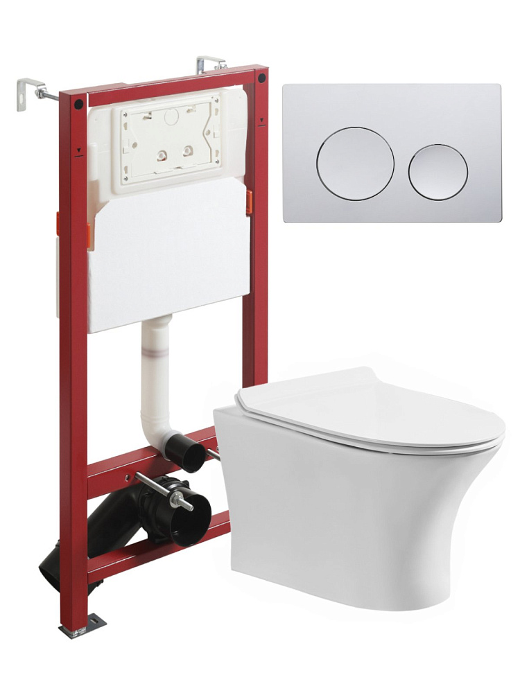 Комплект Orange CI01-100W+APB100 Унитаз подвесной безободковый, с микролифтом + Система инсталляции + Кнопка смыва хром