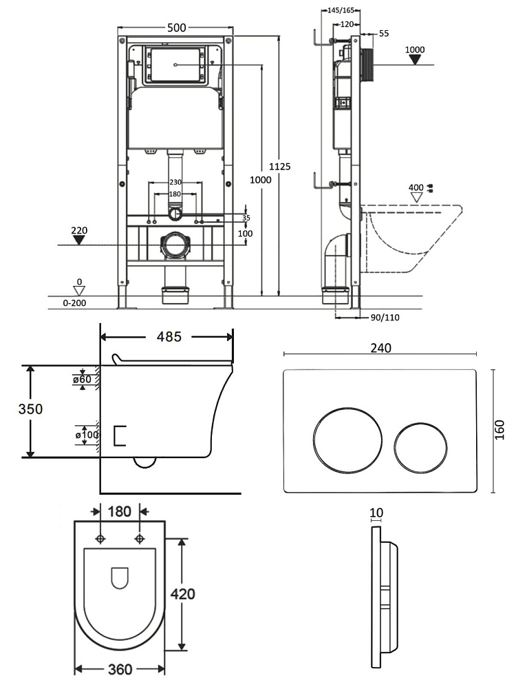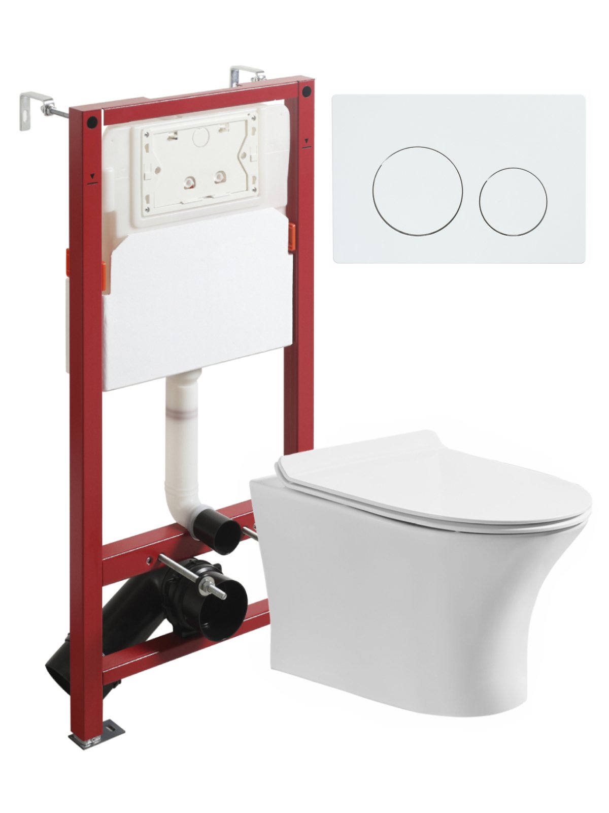 Комплект Orange CI01-100W+APB188 Унитаз подвесной безободковый, с микролифтом + Система инсталляции + Кнопка смыва белая