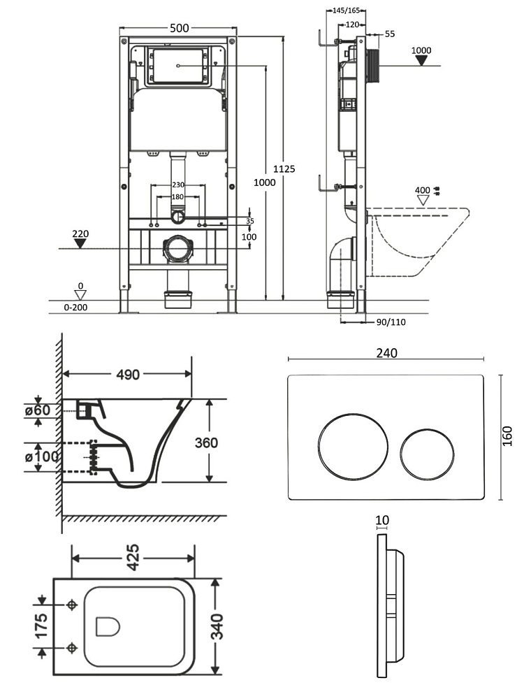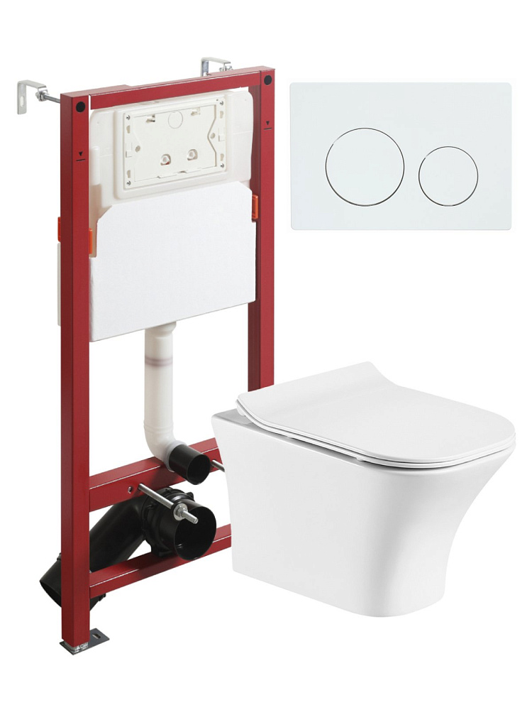 Комплект Orange CI02-100W+APB188 Унитаз подвесной безободковый, с микролифтом + Система инсталляции + Кнопка смыва белая