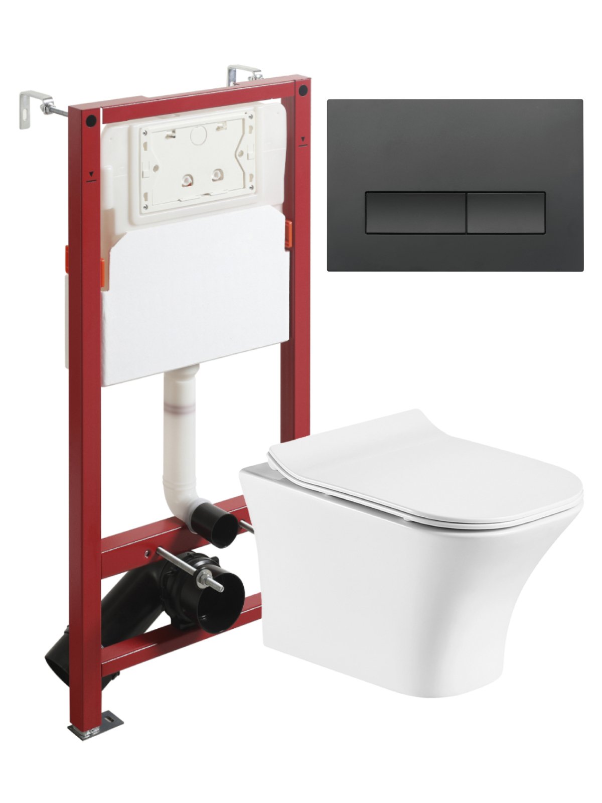 Отзывы о Комплект Orange CI02-100W+APB244 Унитаз подвесной безободковый, с микролифтом + Система инсталляции + Кнопка смыва матовая черная