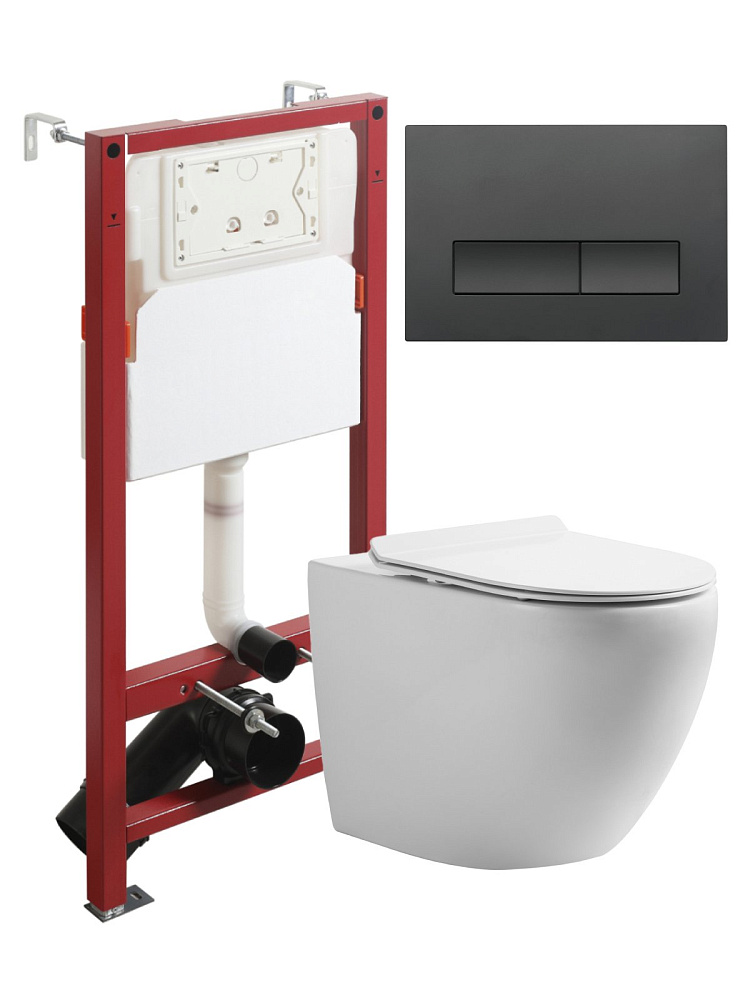 Комплект Orange CI07-100W+APB244 Унитаз подвесной безободковый, с микролифтом + Система инсталляции + Кнопка смыва матовая черная