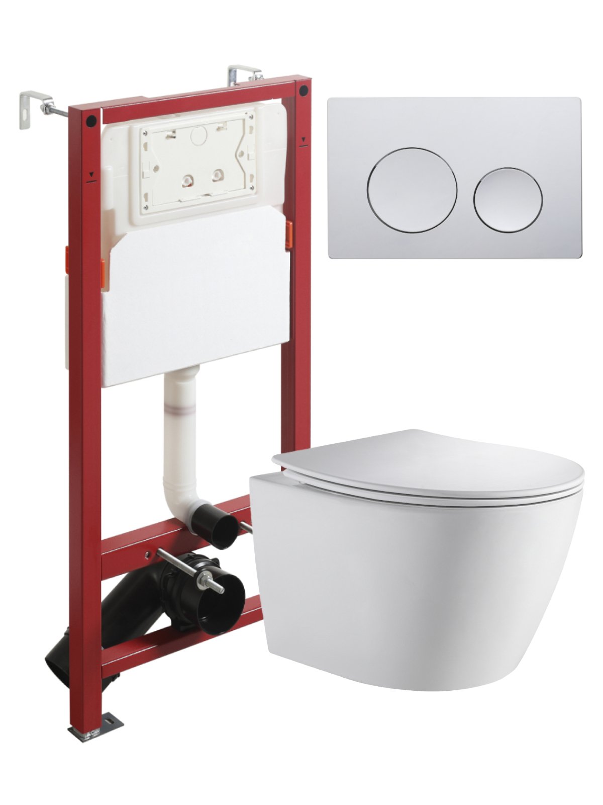 Подвесной безободковый унитаз TORNADO с инсталляцией и кнопкой смыва от немецкого бренда Orange - функциональное и эргономичное решение. Материал унитаза санфарфор отличается беспористой структурой, высокой прочностью и стойкостью к появлению пятен, что позволит сохранить первоначальный вид изделия на долгие годы использования, гарантия от производителя 25 лет. Обтекаемая форма корпуса не позволяет скапливаться пыли. Отличительная особенность данной модели - смыв Торнадо (эффект водоворота), работает максимально бесшумно и эффективно, осуществляется даже небольшим количеством воды. Безободковая модель - отсутствие недоступных областей для уборки обеспечит простой уход и отсутствие посторонних запахов. В комплекте быстросъемная крышка-сиденье с функцией плавного закрывания Soft-close, сиденье изготовлено из прочного материала - дюропласта, петли крышки-сиденья из нержавеющей стали. Скрытая система монтажа, цвет глянцевый белый. Инсталляция обеспечит минимальный уровень шума и максимальный уровень комфорта при эксплуатации. В комплект входят все необходимые крепления. Максимально допустимая нагрузка 400 кг. Объем смыва 3 и 6 литра позволяет экономить воду, снижая ее расход. Ширина рамы - 500 мм, глубина - 145/165 мм, высота - 1125/1325 мм. Материал - сталь. Кнопка смыва с механическим управлением отличается современным дизайном и гармонично дополнит интерьер. Выполнена в цвете глянцевый хром. Форма кнопок - круглая, материал - пластик. Гарантия: 25 лет - унитаз, 10 лет - инсталляция, 2 года - кнопка смыва.