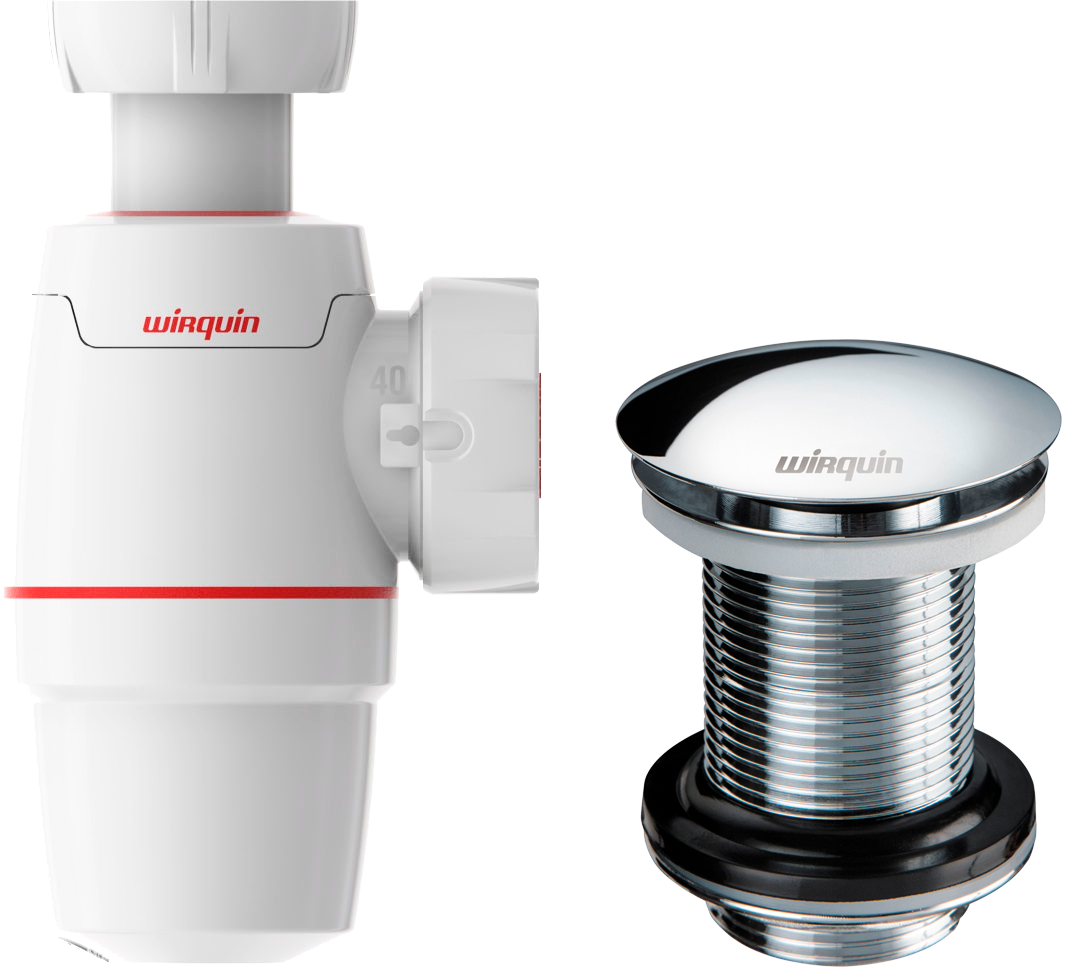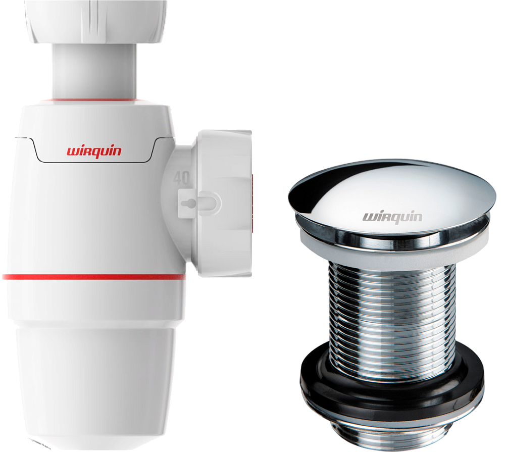 Комплект Сифон Wirquin Neo 30987068 бутылочный, белый, руч + Донный клапан Клик-клак 30723104 хром