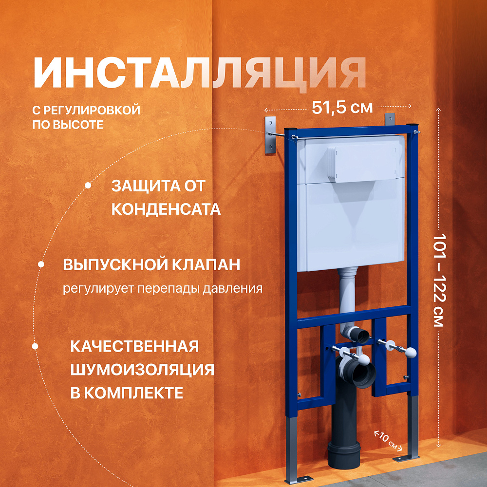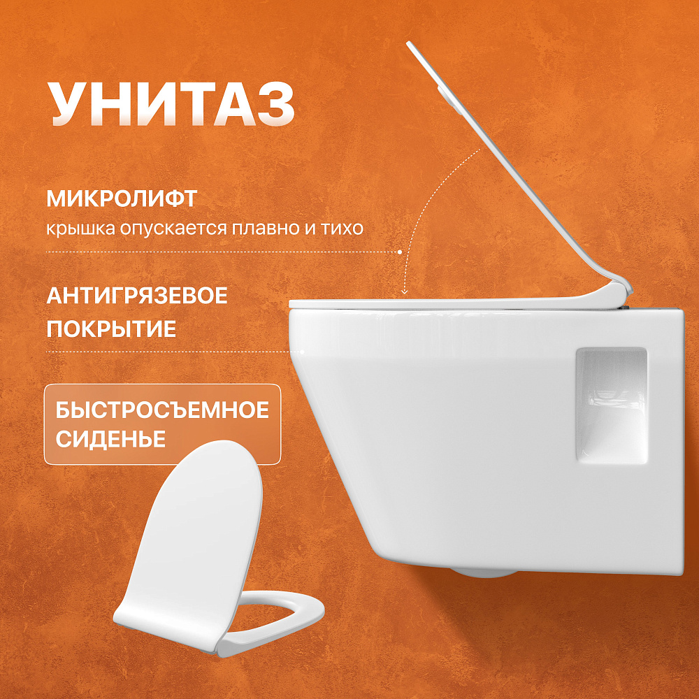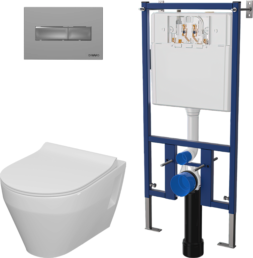 Комплект 3 в 1 Унитаз подвесной Керамин Бари Slim МЛ CDB00022778 + Инсталляция DIWO 4501 + Кнопка 7321 цвет матовый хром