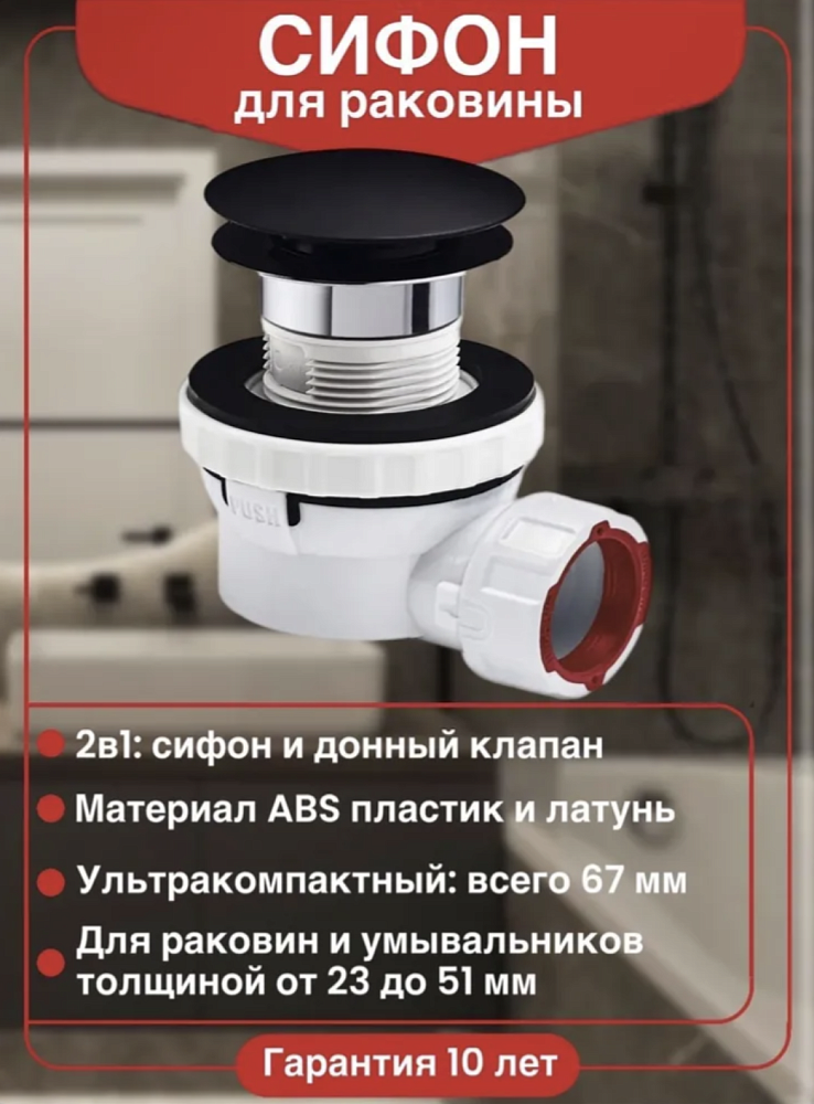 Комплект Wirquin Nano 6.7 30723978 32 мм, с сухим затвором, матовый черный
