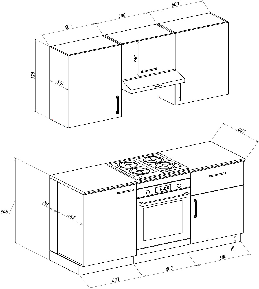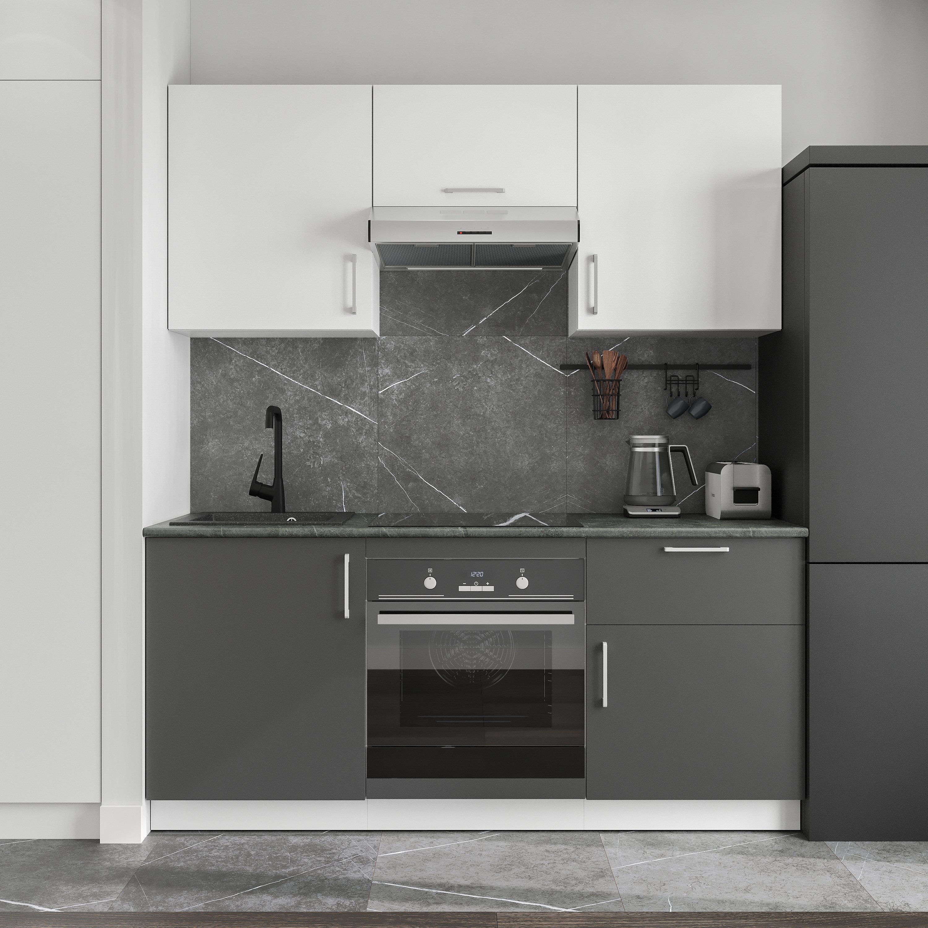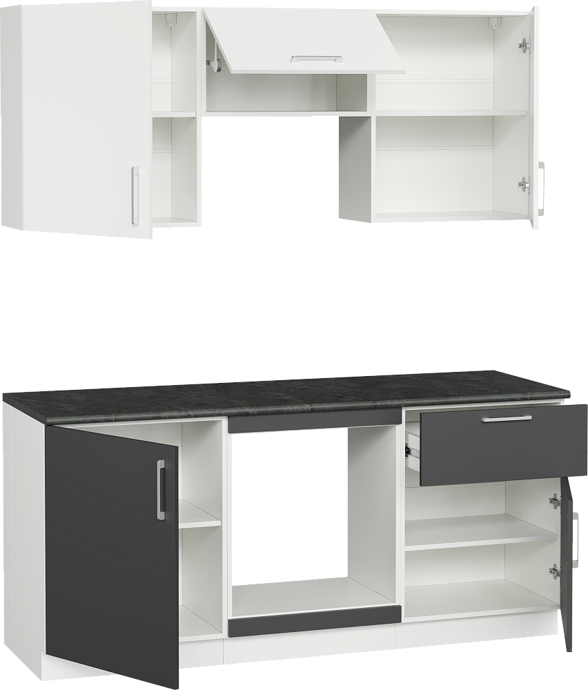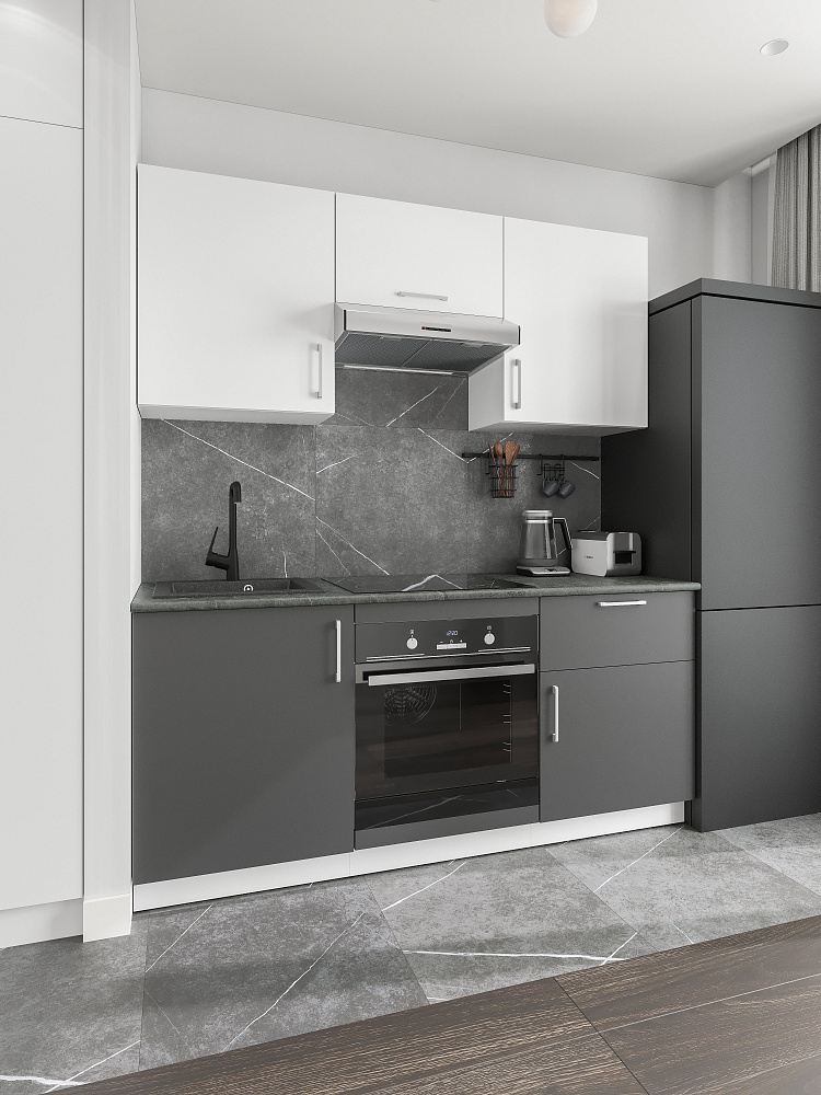 Кухонный гарнитур Domaci Болонья 180 см, фасад графит, белый, ручка хром, столешница луна KUH-767424
