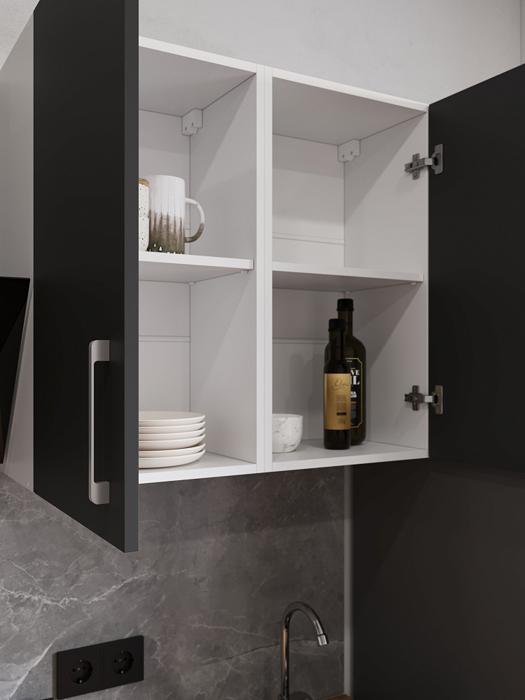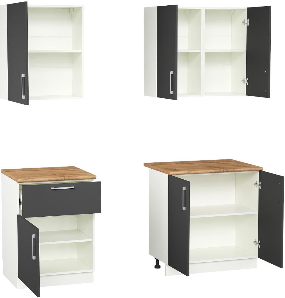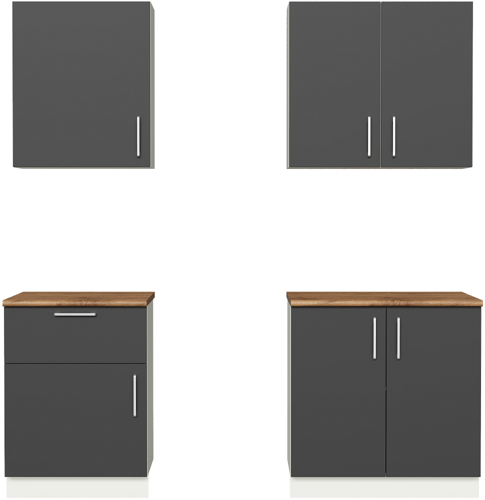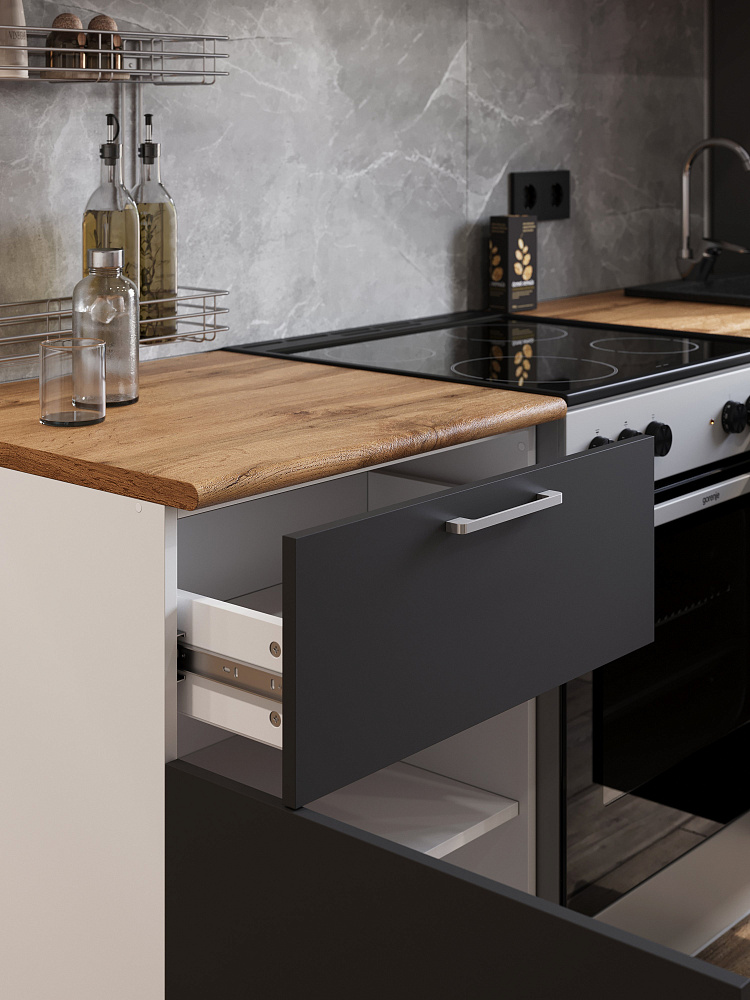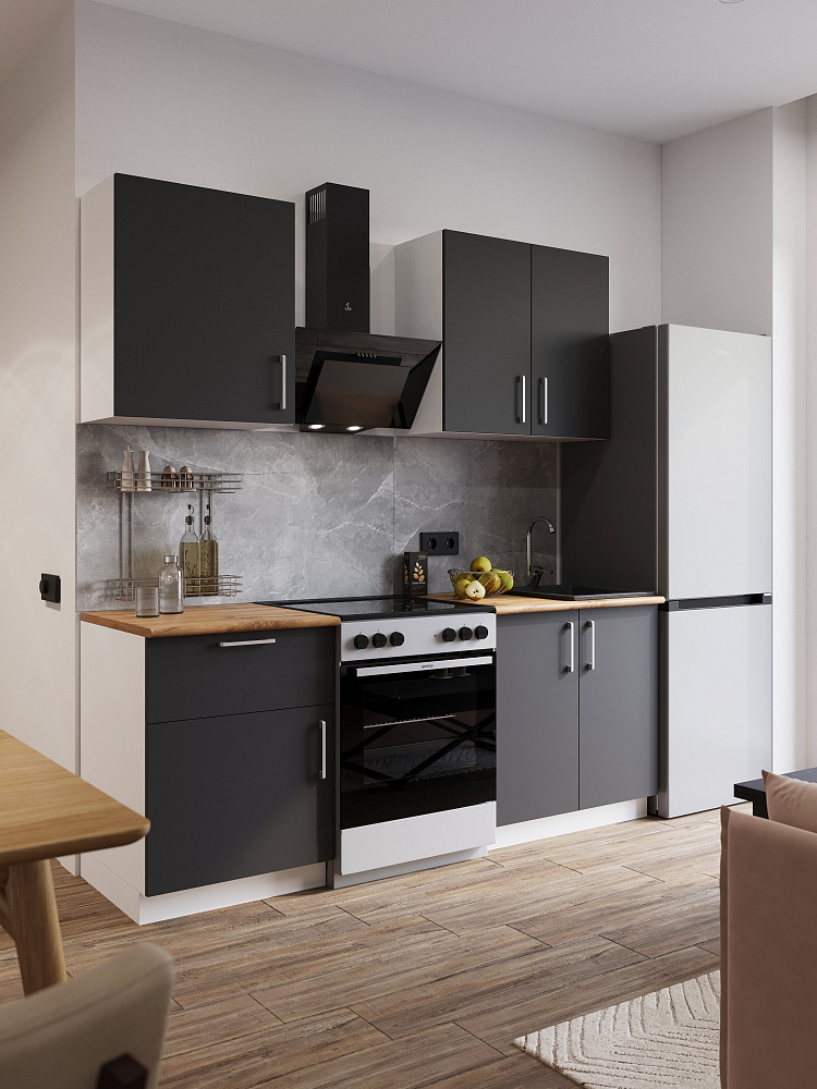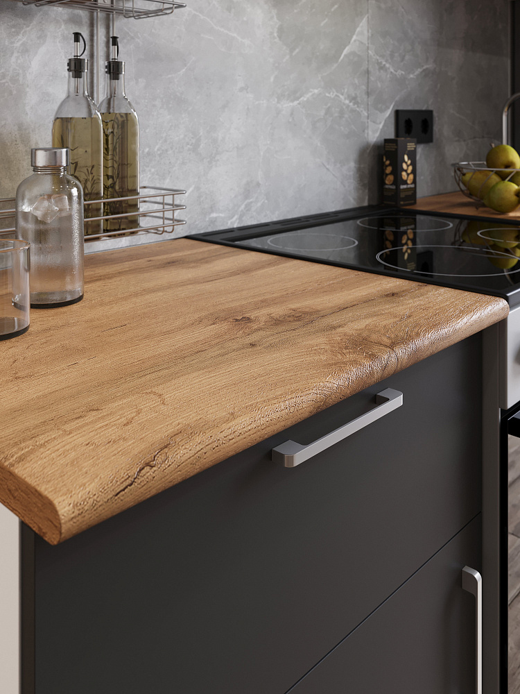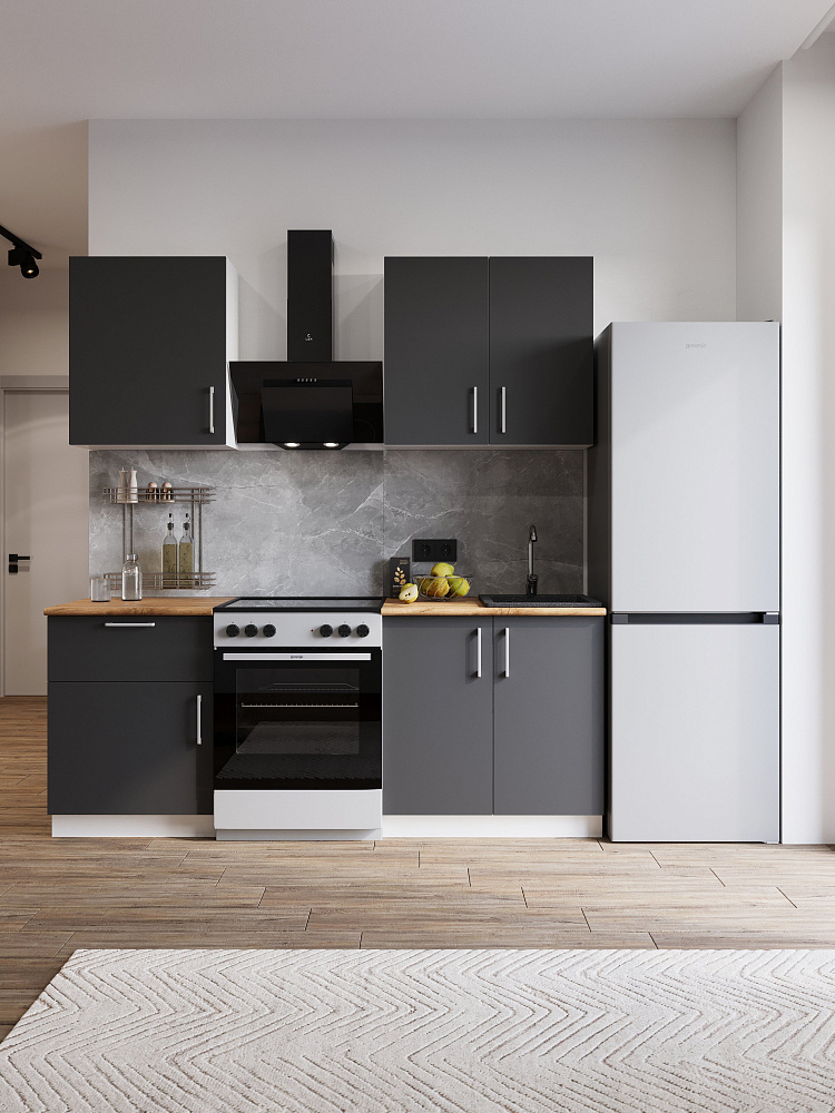 Кухонный гарнитур Domaci Болонья 200 см, фасад графит, ручка хром, столешница дуб вотан KUH-708321