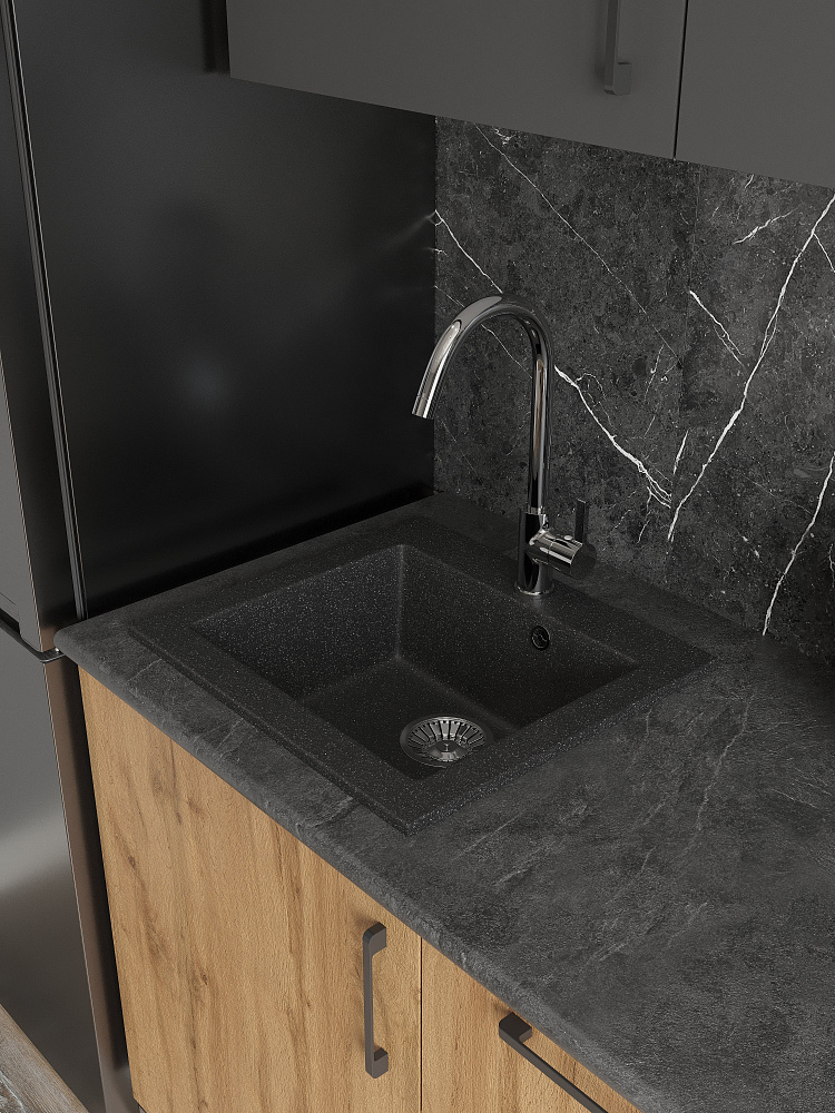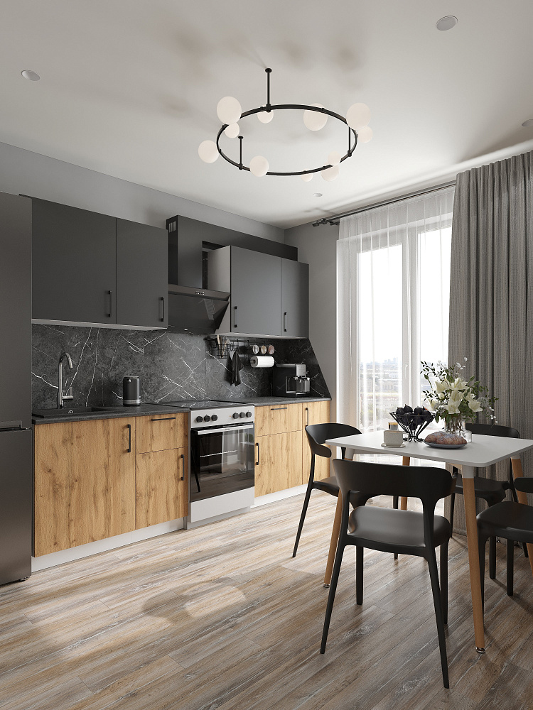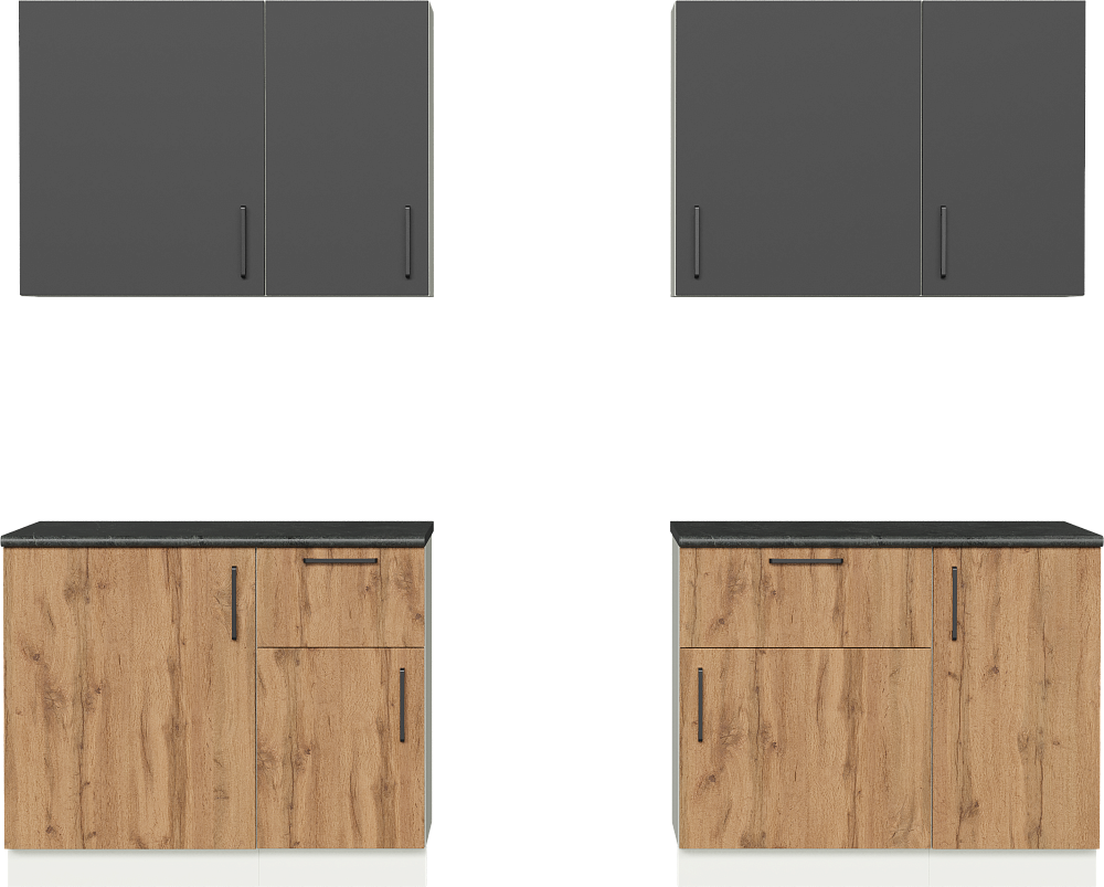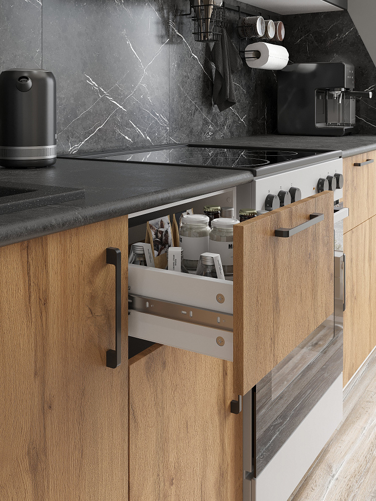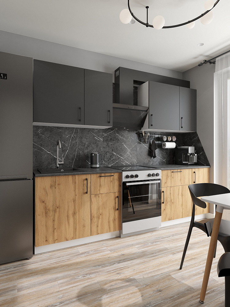 Кухонный гарнитур Domaci Болонья 260 см, фасад дуб вотан, графит, ручка черная, столешница луна KUH-709673