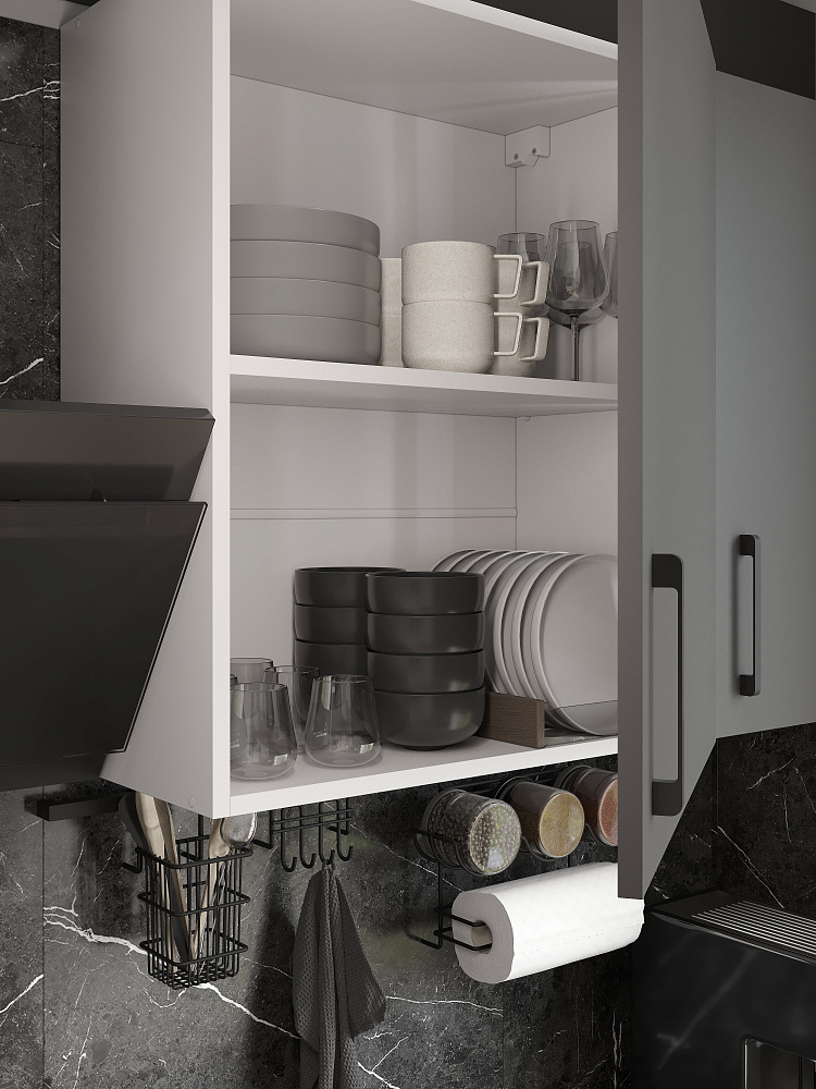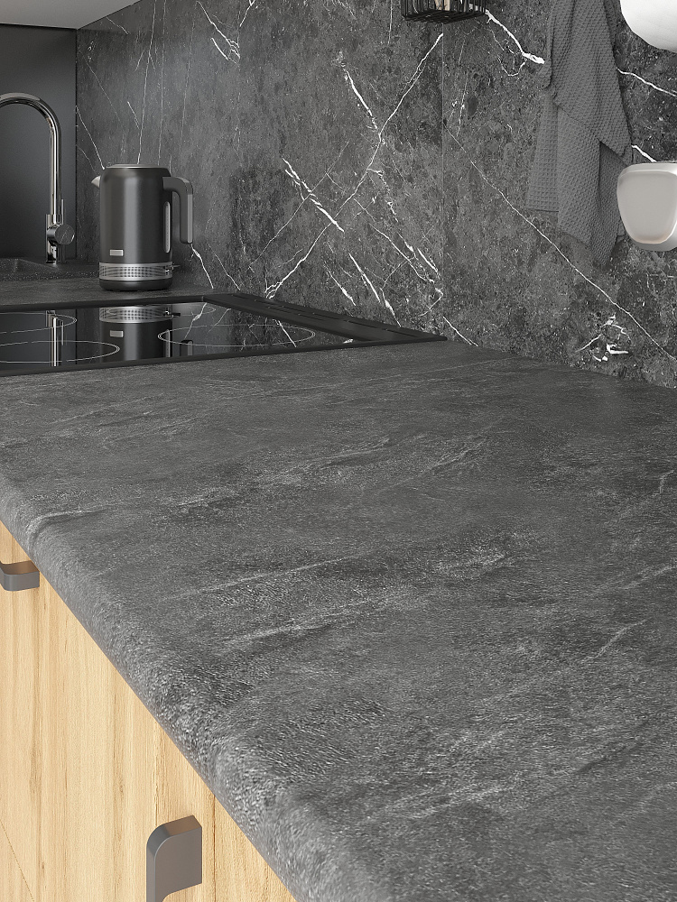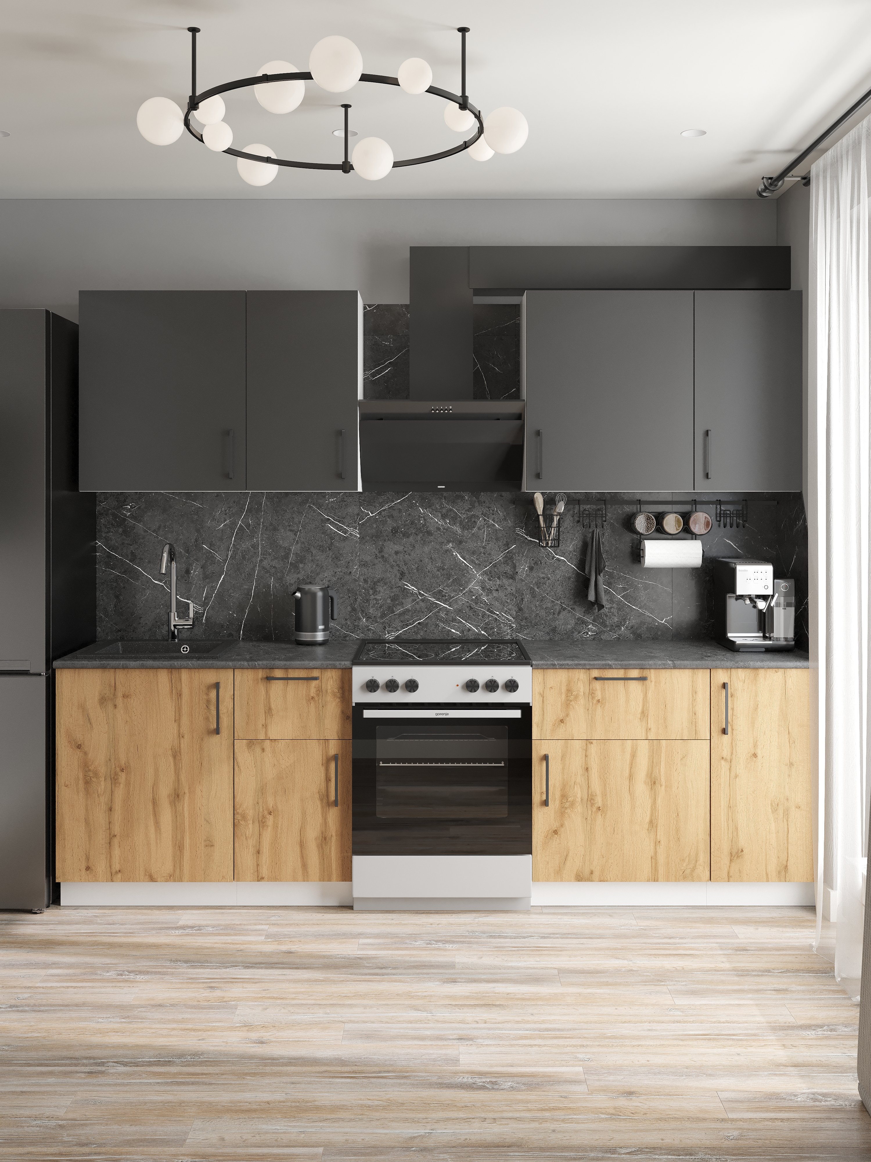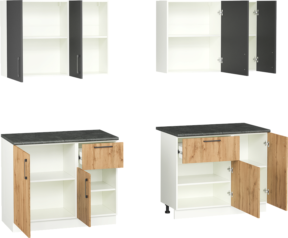 Кухонный гарнитур Domaci Болонья 260 см, фасад дуб вотан, графит, ручка черная, столешница луна KUH-709673