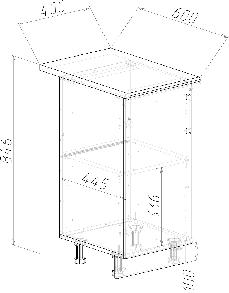 Кухонный модуль напольный Domaci Болонья 40 см, фасад дуб вотан, столешница луна, ручка черная