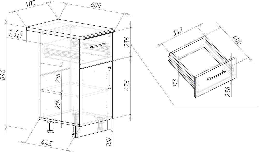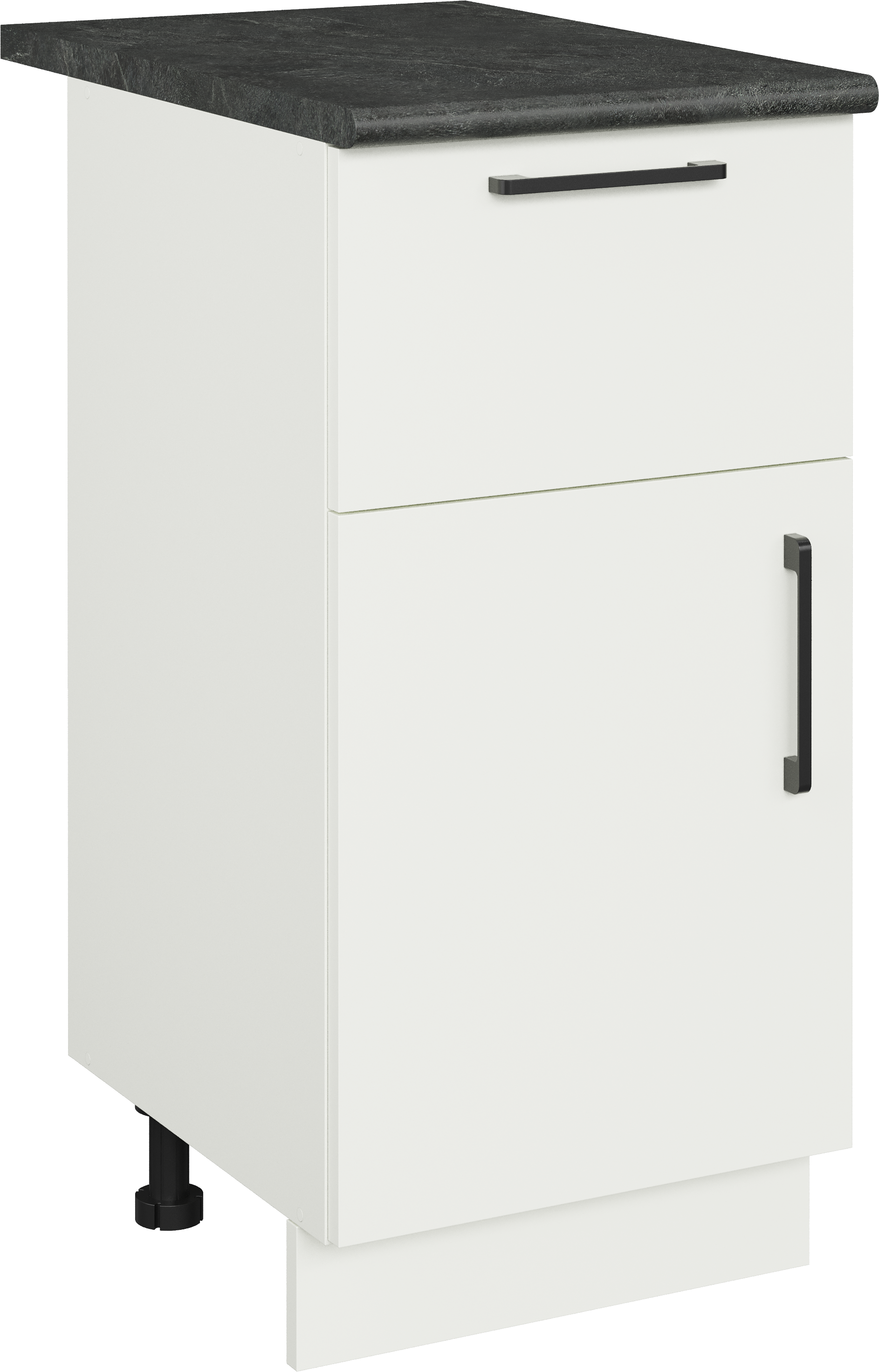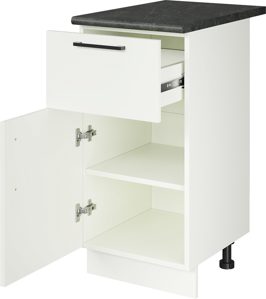 Кухонный модуль напольный Domaci Болонья 40 см с 1 ящиком, фасад белый, столешница луна, ручка черная