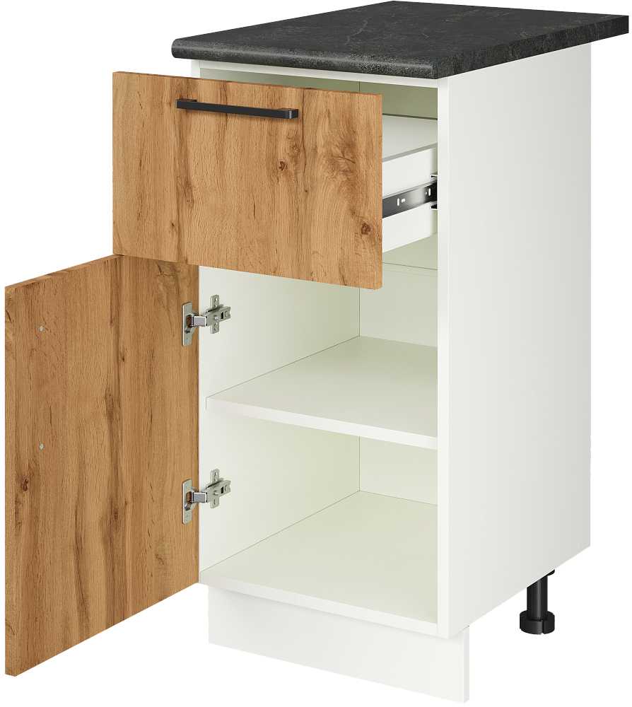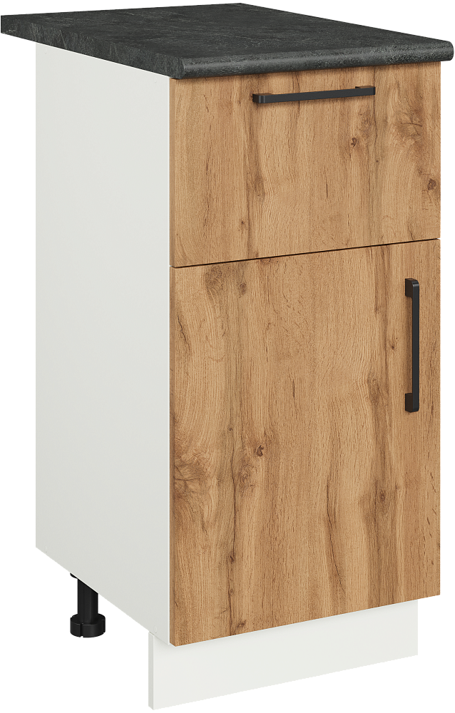 Кухонный модуль напольный Domaci Болонья 40 см с 1 ящиком, фасад дуб вотан, столешница луна, ручка черная