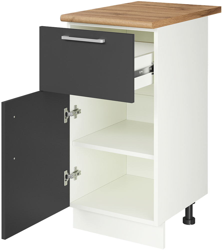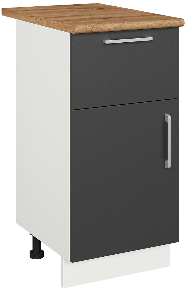 Кухонный модуль напольный Domaci Болонья 40 см с 1 ящиком, фасад графит, столешница дуб вотан, ручка хром