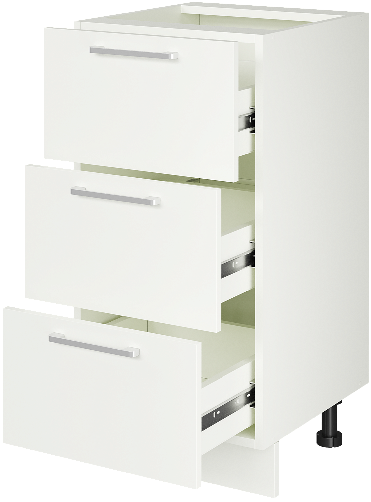 Кухонный модуль напольный Domaci Болонья 40 см с 3 ящиками, фасад белый, ручка хром