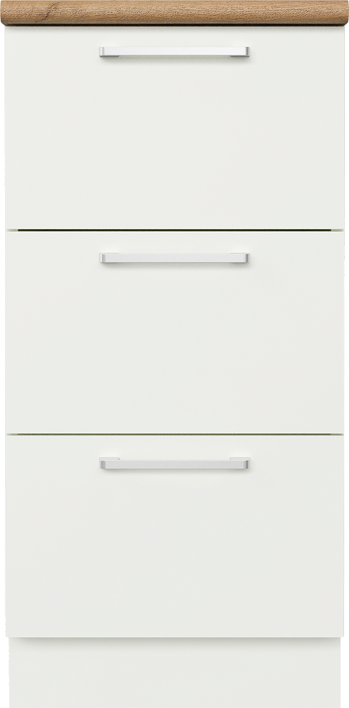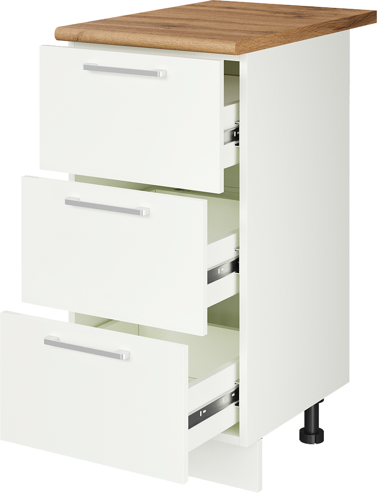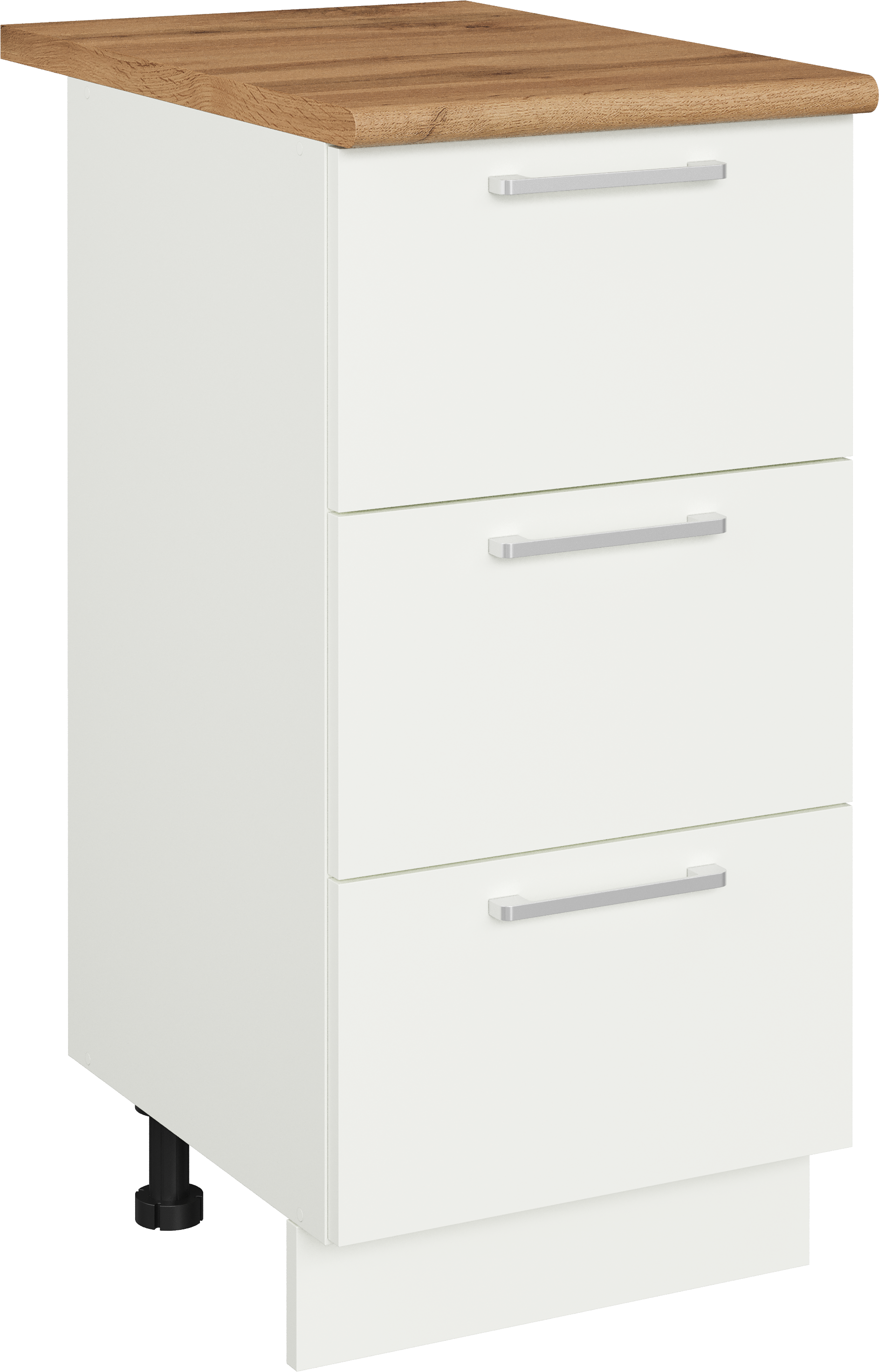 Кухонный модуль напольный Domaci Болонья 40 см с 3 ящиками, фасад белый, столешница дуб вотан, ручка хром