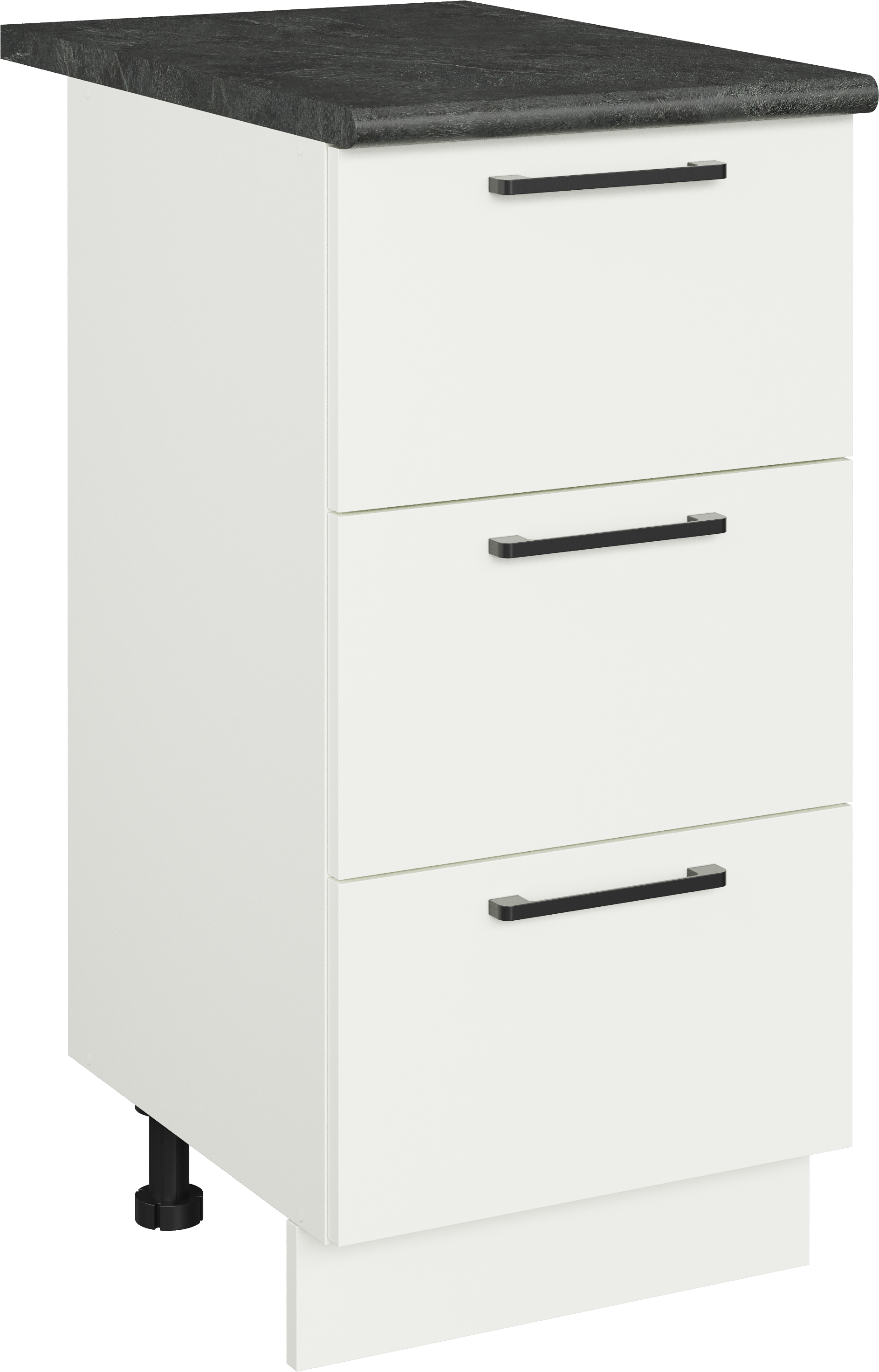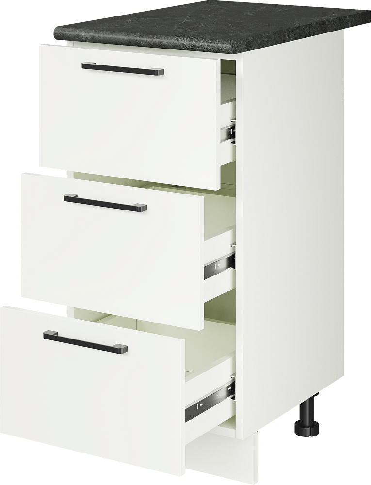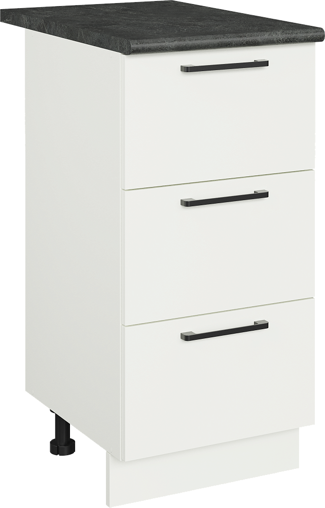 Кухонный модуль напольный Domaci Болонья 40 см с 3 ящиками, фасад белый, столешница луна, ручка черная