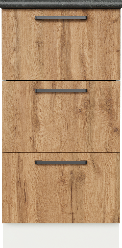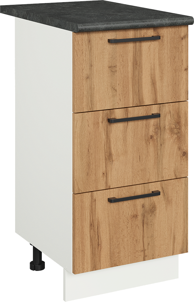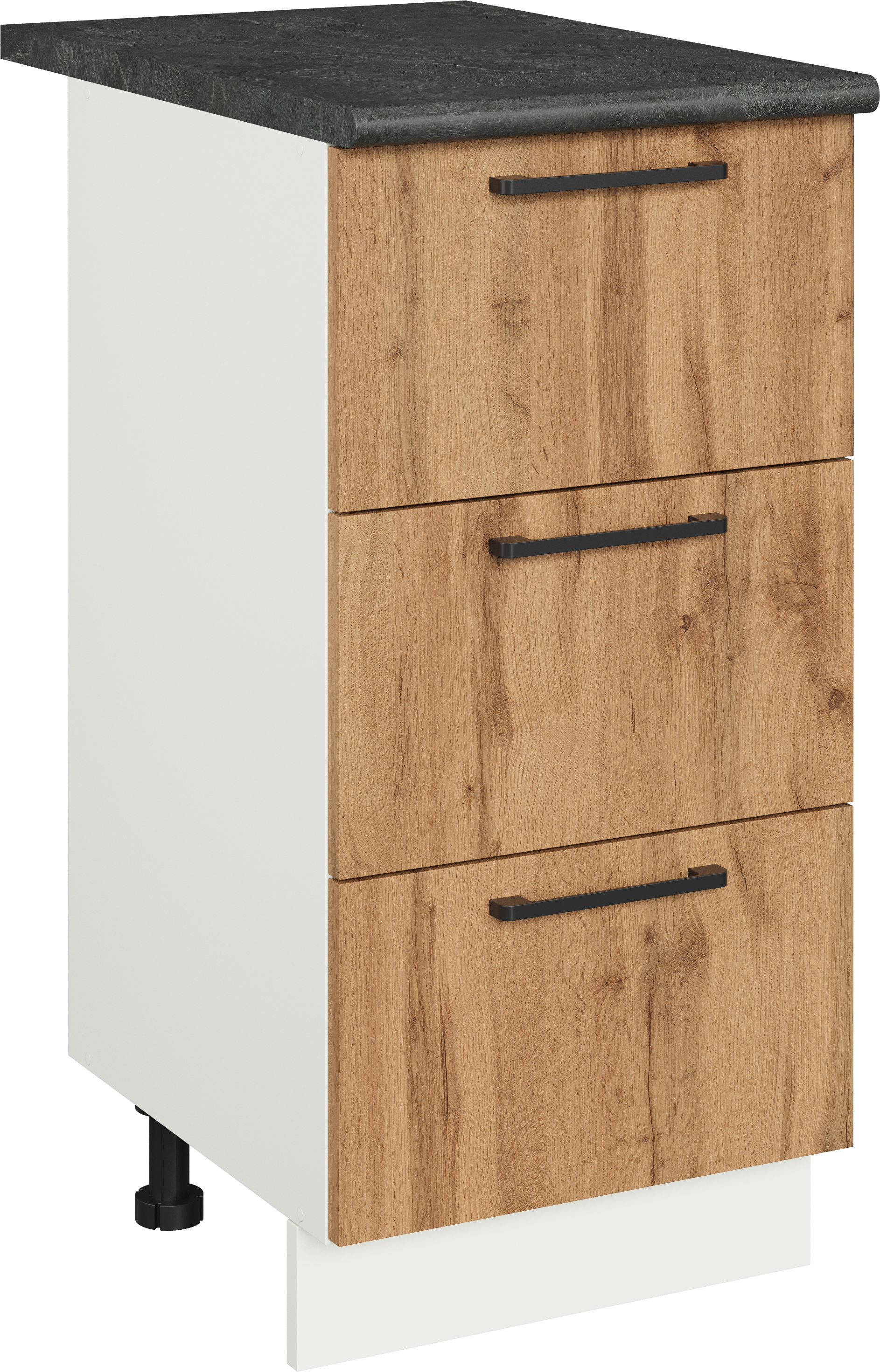 Кухонный модуль напольный Domaci Болонья 40 см с 3 ящиками, фасад дуб вотан, столешница луна, ручка черная
