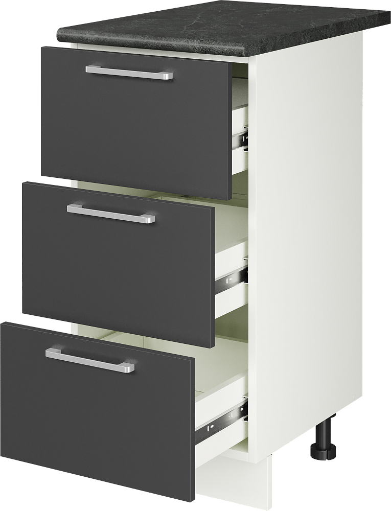 Кухонный модуль напольный Domaci Болонья 40 см с 3 ящиками, фасад графит, столешница луна, ручка хром