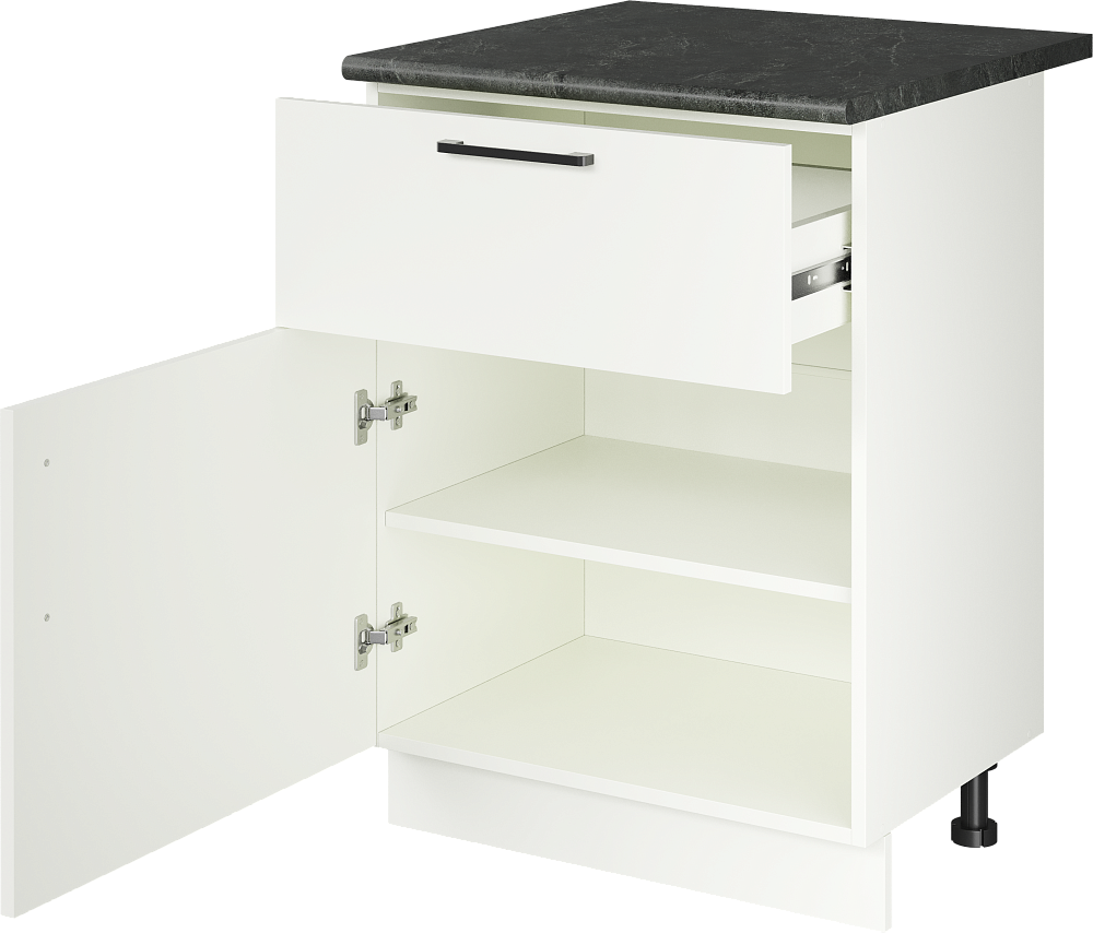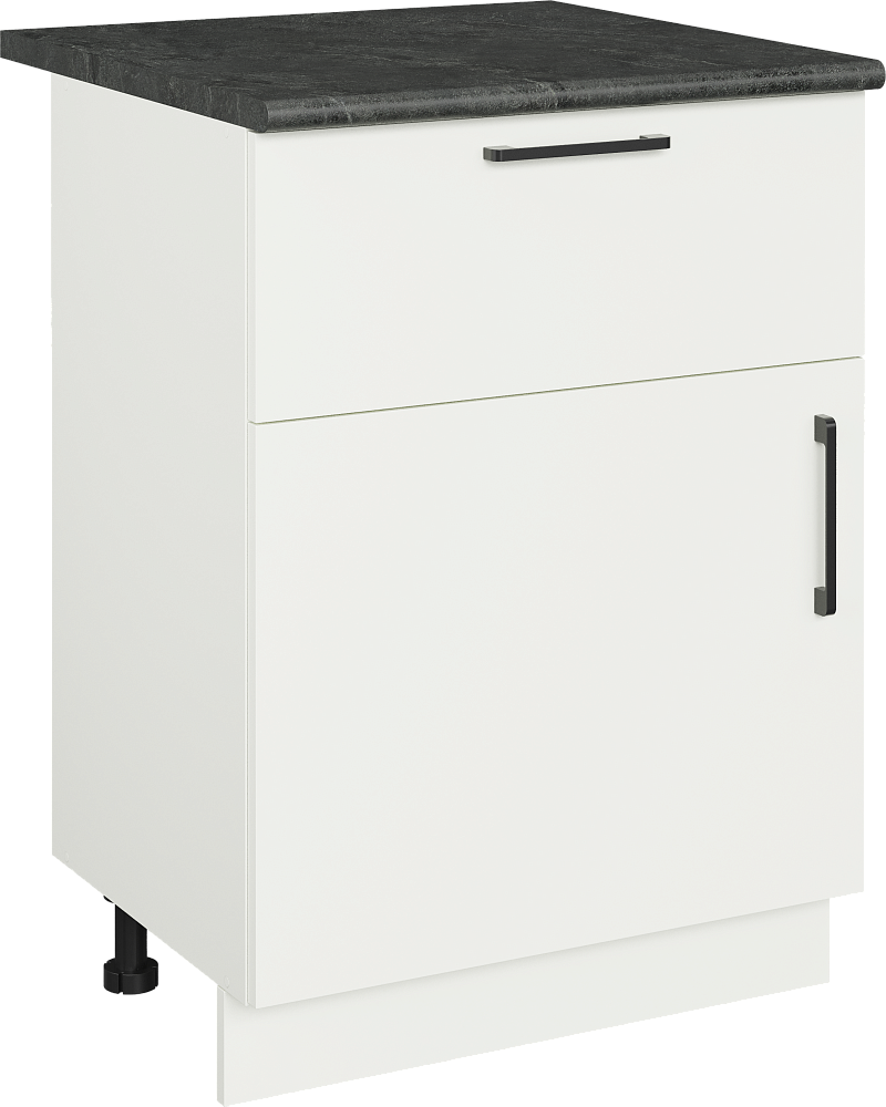 Кухонный модуль напольный Domaci Болонья 60 см с 1 ящиком, фасад белый, столешница луна, ручка черная