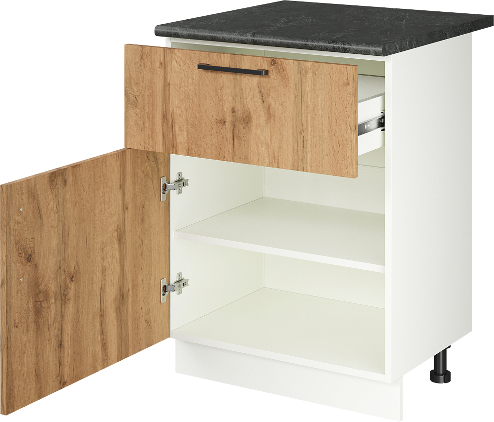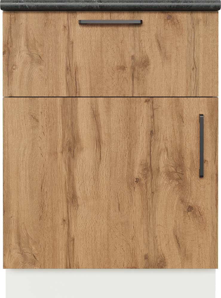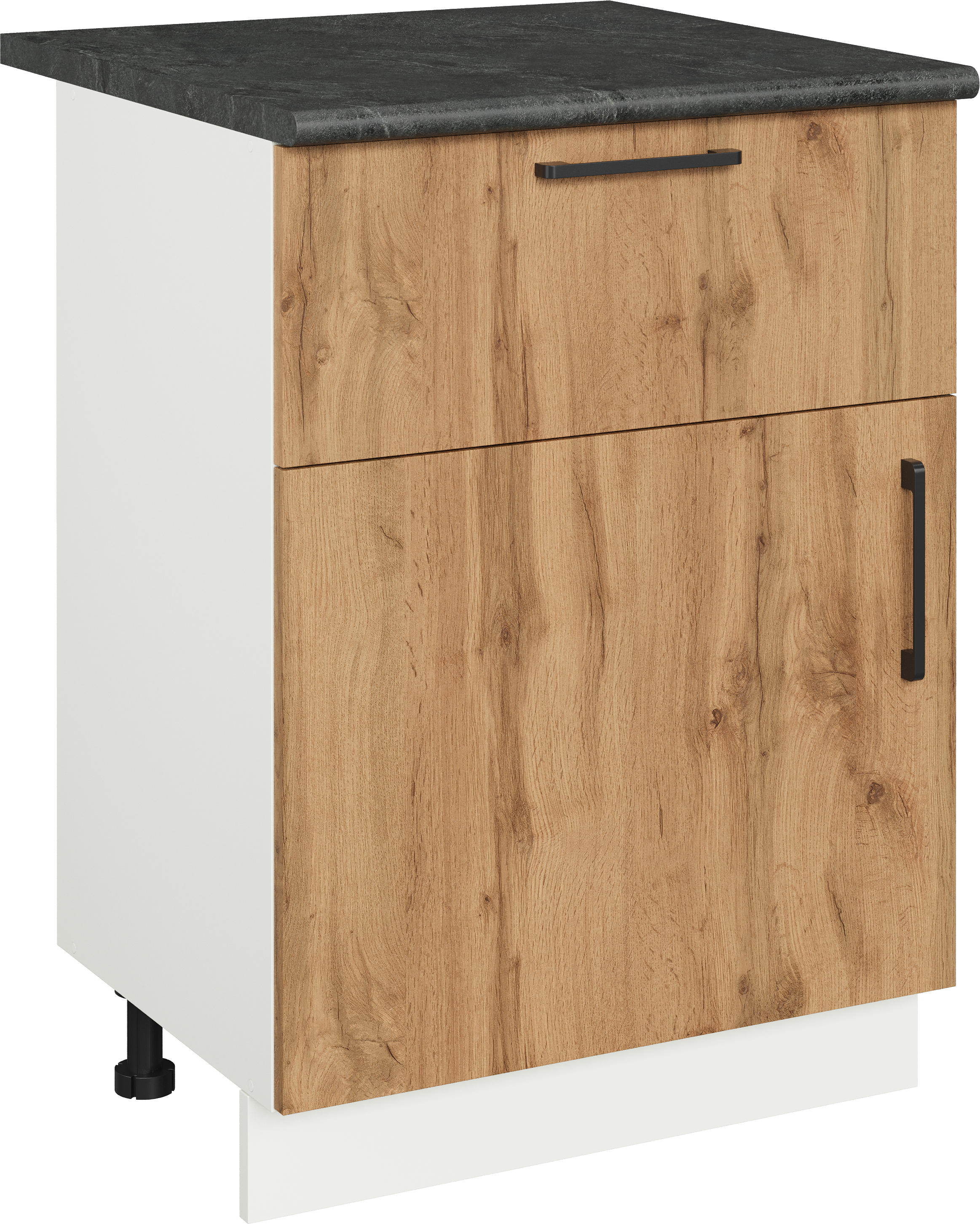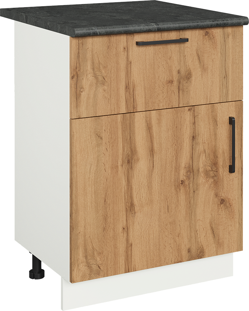 Кухонный модуль напольный Domaci Болонья 60 см с 1 ящиком, фасад дуб вотан, столешница луна, ручка черная