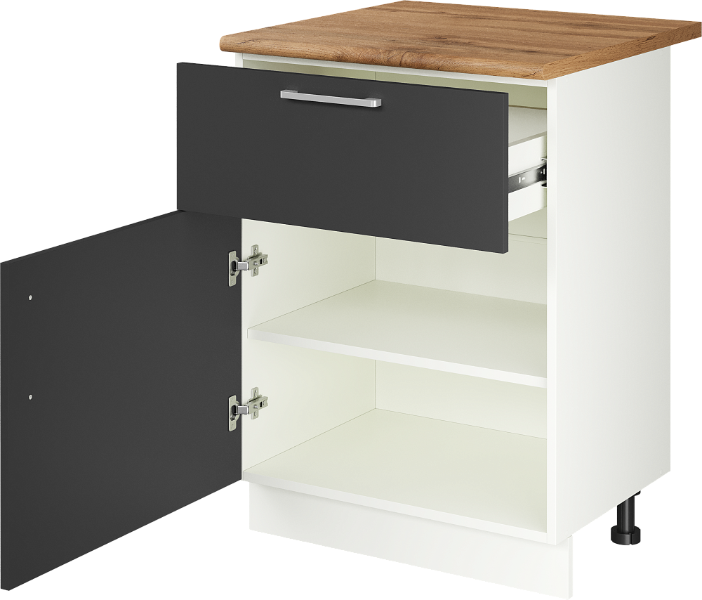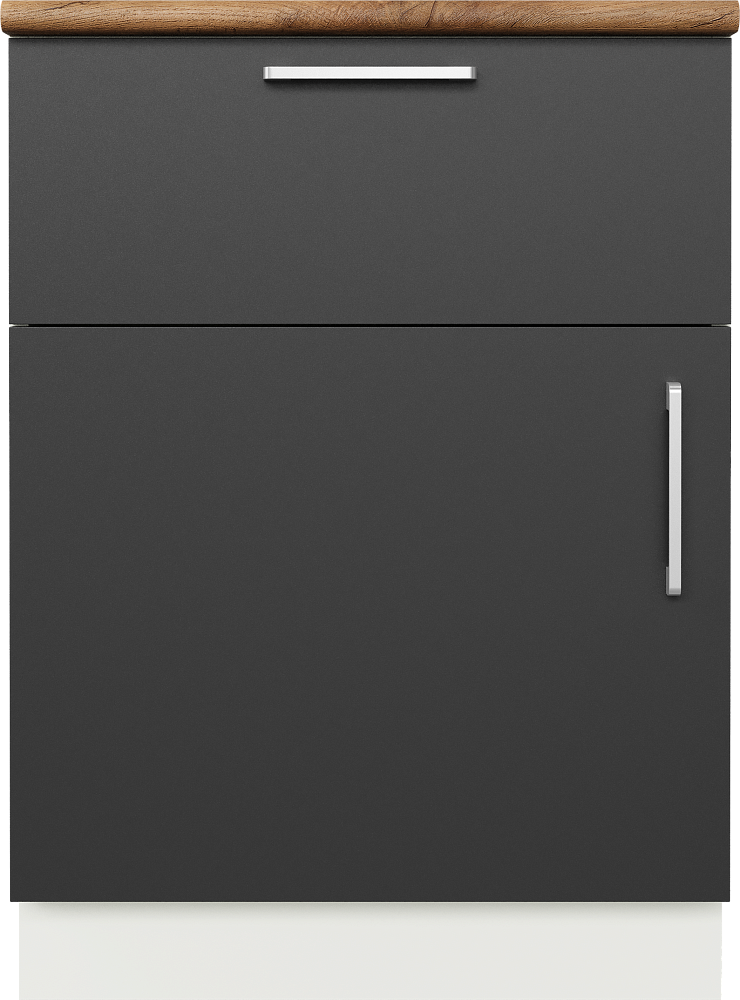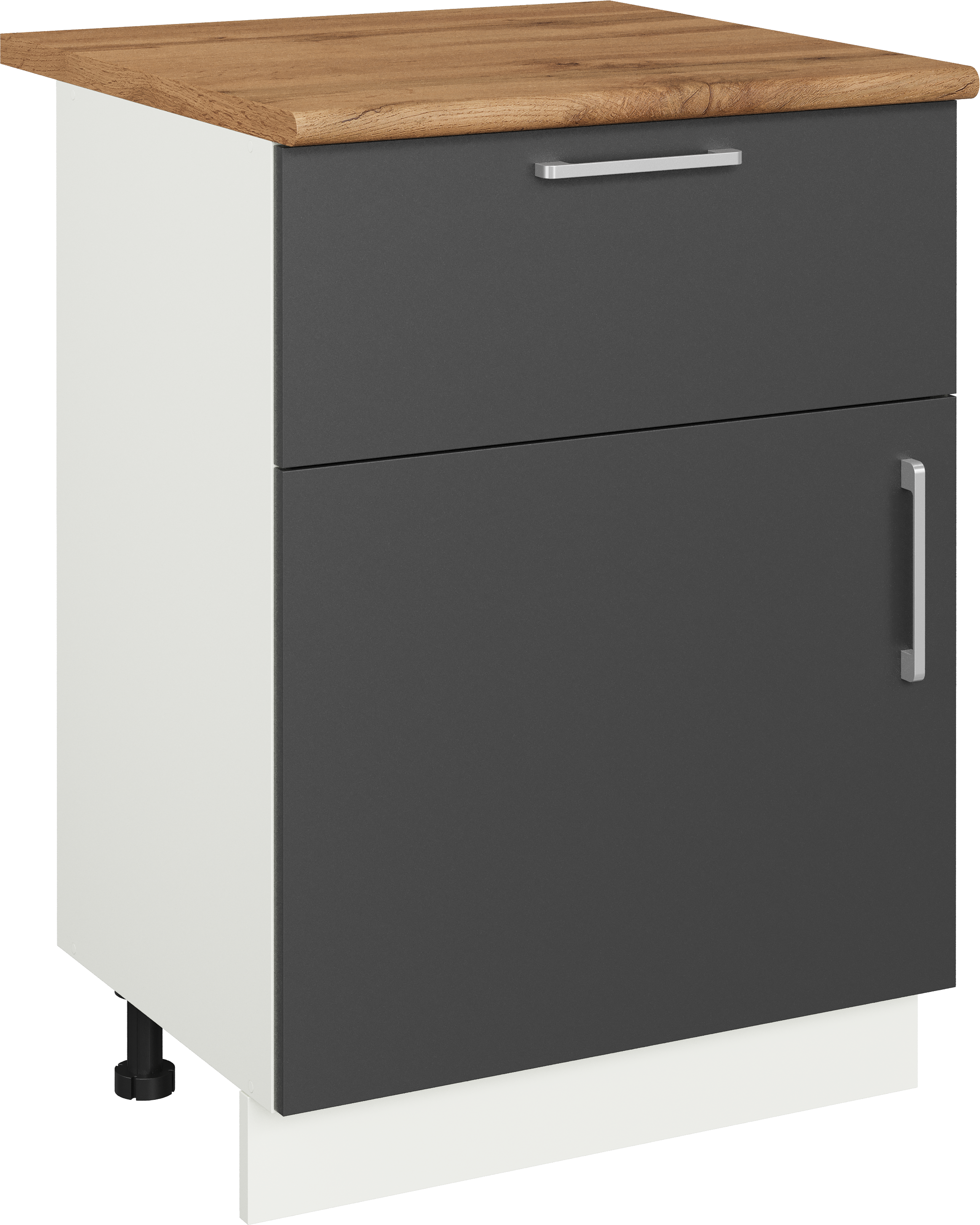 Кухонный модуль напольный Domaci Болонья 60 см с 1 ящиком, фасад графит, столешница дуб вотан, ручка хром