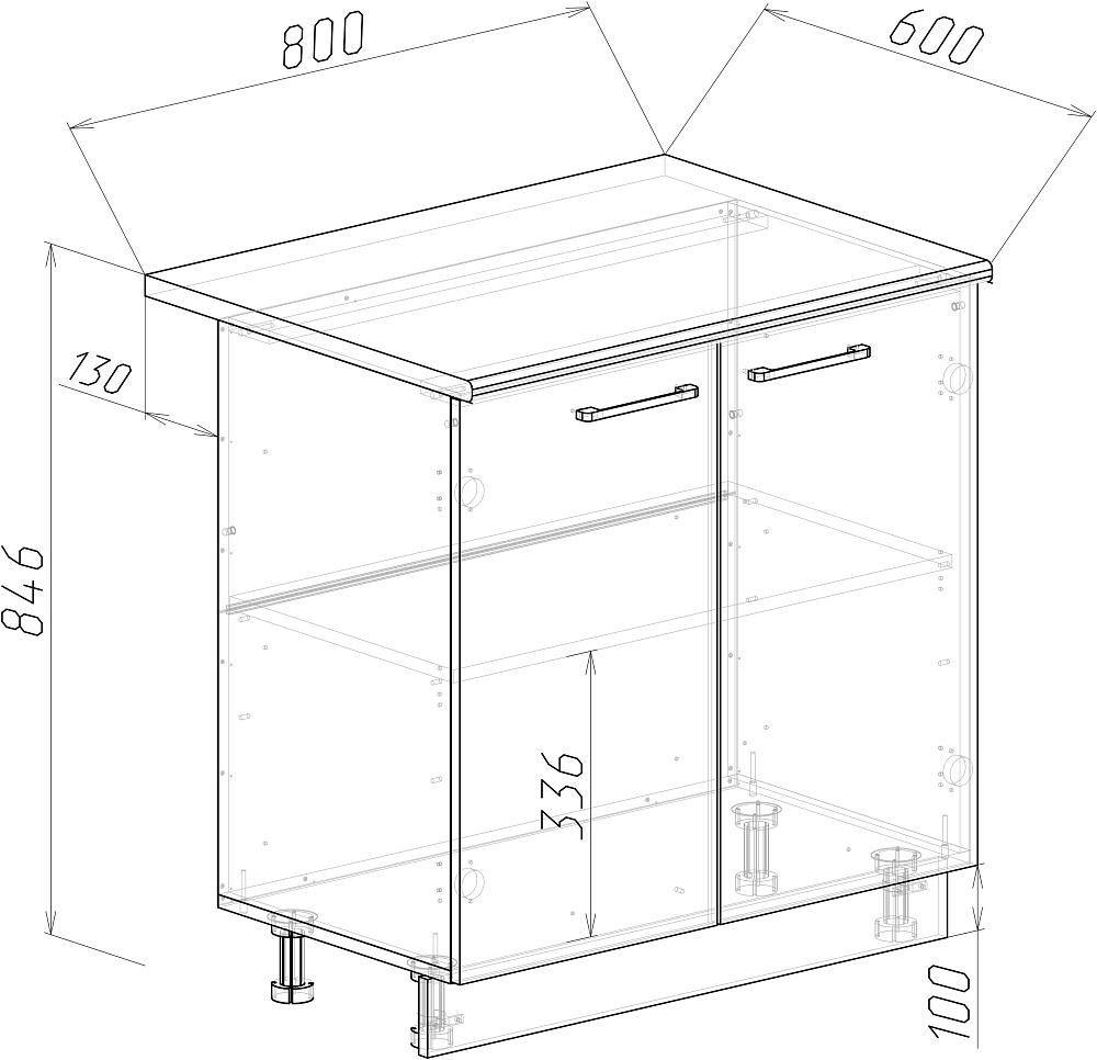 Кухонный модуль напольный Domaci Болонья 80 см, фасад белый, столешница дуб вотан, ручка хром