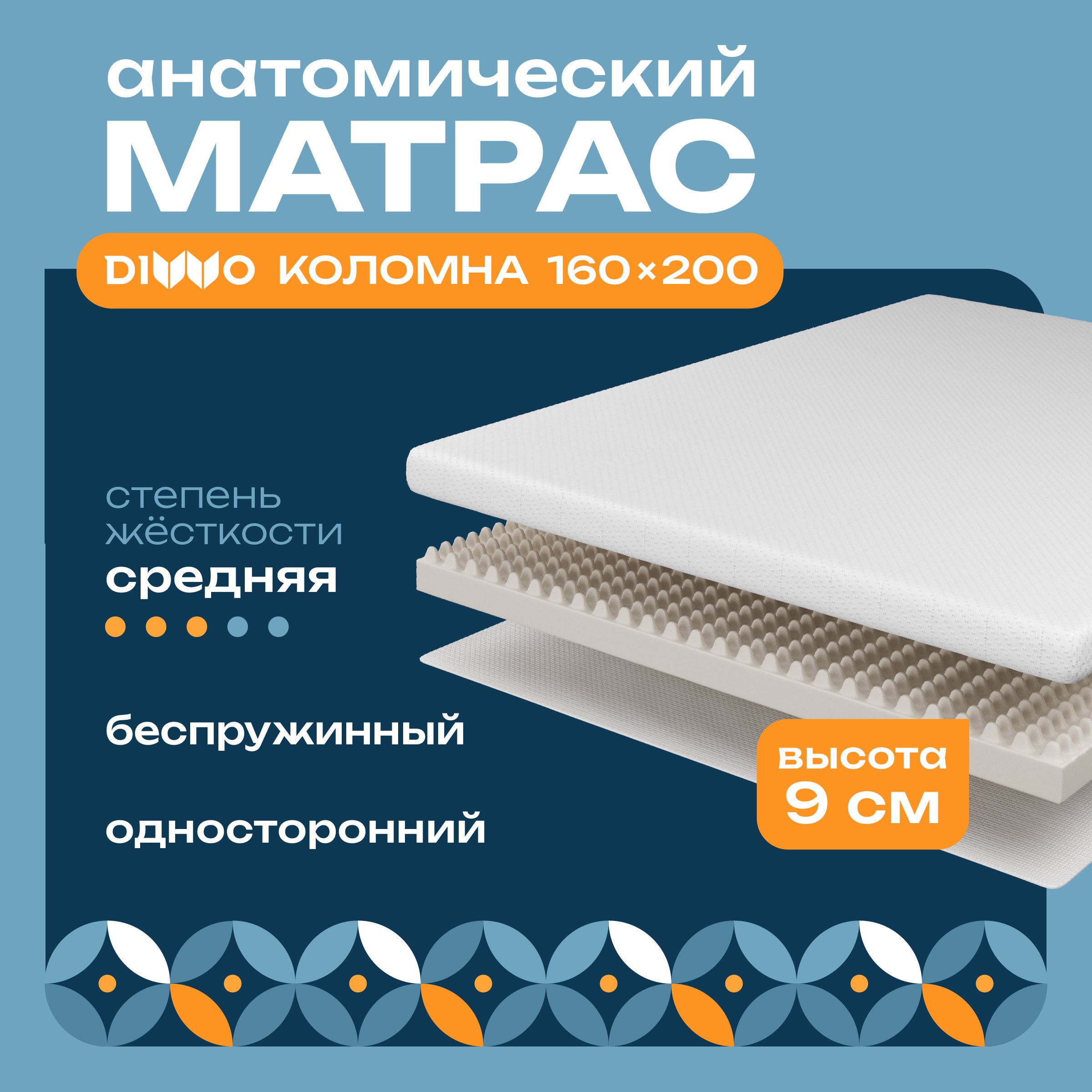 Ищете идеальный матрас для вашей спальни, который обеспечит вам максимальный комфорт и уютные ночи с отличным сном? Представляем вам матрас DIWO Коломна 160х200, анатомический, беспружинный - идеальный выбор для тех, кто ценит качество и комфорт.\n\nБренд DIWO известен своими инновационными разработками в области сантехники, и матрасы этого бренда не являются исключением. Сделанный в России с гарантией 3 года, этот матрас обеспечивает идеальную поддержку вашего тела благодаря своей средней жесткости и эффекту памяти.\n\nМатрас DIWO Коломна имеет размер спального места 160х200 см, что идеально подходит для большинства спален. С его высотой 9 см и весом 8,6 кг, он легко устанавливается и перемещается при необходимости. Максимальная нагрузка до 110 кг гарантирует вам долговечность и надежность использования.\n\nОдним из главных преимуществ этого матраса является его наполнение из пенополиуретана, который обеспечивает идеальную анатомическую поддержку вашего тела во время сна. Кроме того, матрас не имеет пружинного блока, что исключает появление неприятных скрипов и шумов во время использования.\n\nМатрас DIWO Коломна не скручивается в рулон, что гарантирует его сохранность и форму в течение долгого времени. Хотя он не имеет съемного чехла, его легко очистить и поддерживать в чистоте с помощью специальных средств для ухода за матрасами.\n\nТак что, если вы ищете идеальный матрас, который обеспечит вам отличный сон и комфортные ночи, матрас DIWO Коломна 160х200, анатомический, беспружинный - ваш идеальный выбор! Позвольте себе расслабиться и насладиться уютом и комфортом каждую ночь. Не упустите возможность обзавестись этим прекрасным матрасом и заказать его прямо сейчас!