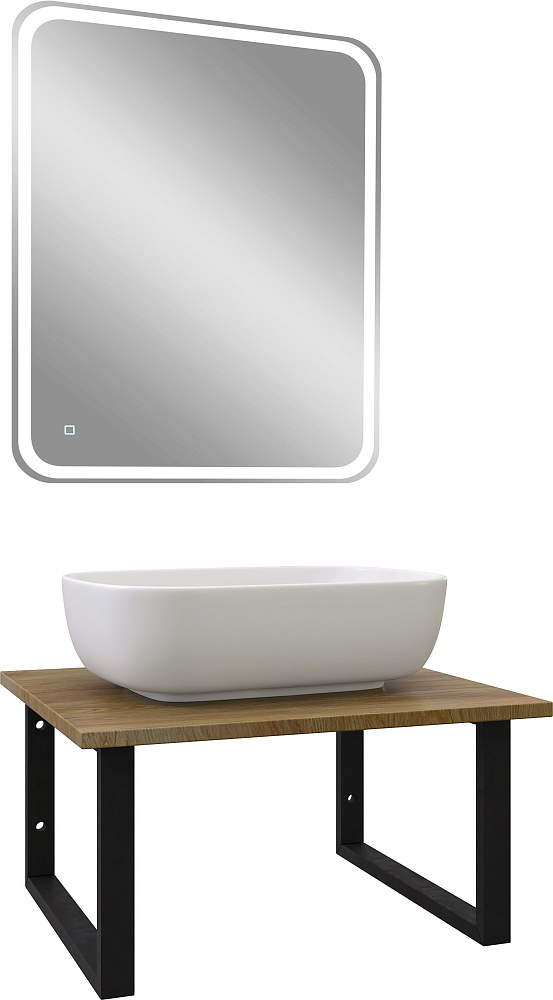 Прямоугольное зеркало DIWO «Коломна 60» с LED-подсветкой по периметру сделает привычные процедуры комфортными. Интенсивность свечения можно регулировать при помощи сенсорной кнопки — достаточно легкого касания. Пластиковый корпус защитит электрические компоненты от попадания влаги. На столешницу устанавливается белая фарфоровая раковина DIWO Moduo 50 Square без готового отверстия. Накладная чаша производится в России, гарантия 10 лет.