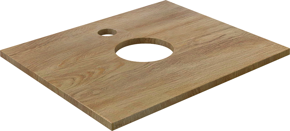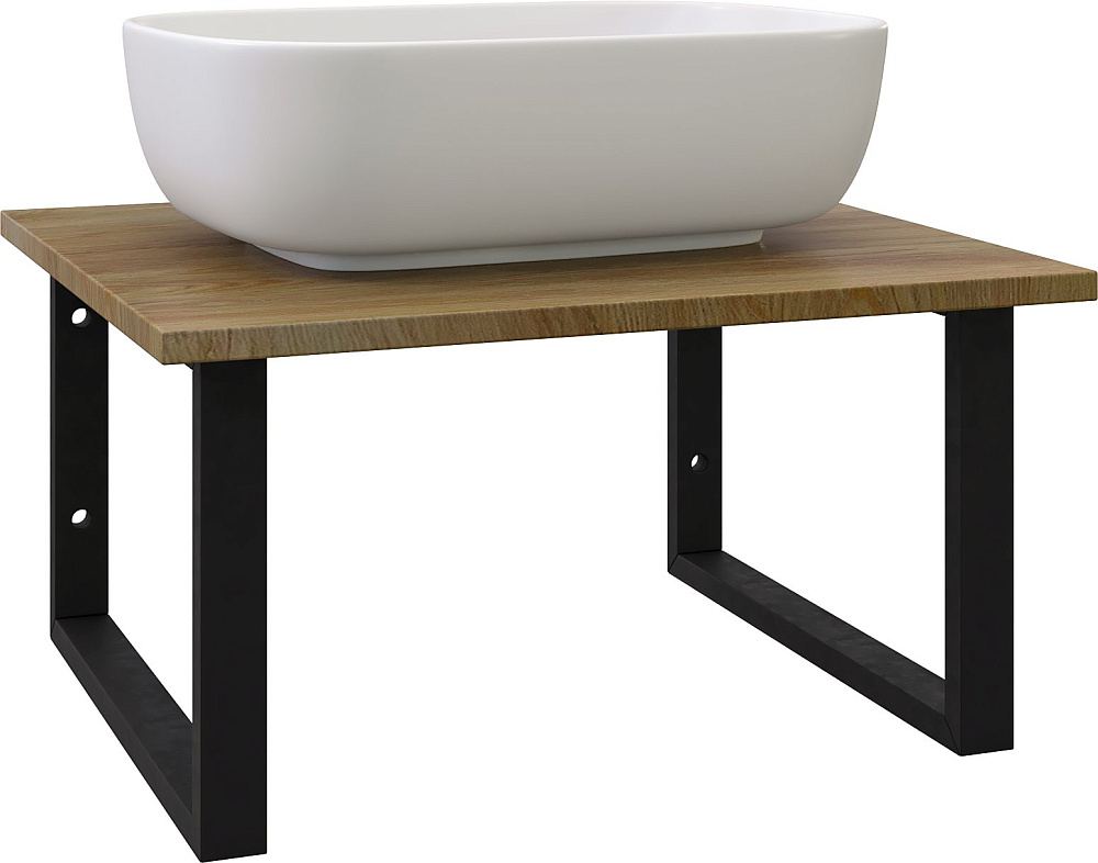 Мебель для ванной DIWO «Элиста 60» — нетривиальная идея для создания минималистичного пространства. Вместо привычной тумбы используется столешница в светлом древесном оттенке, выполненная из влагостойкой МДФ. Подготовлены два отверстия — под смеситель и накладную раковину. Для фиксации столешницы предназначены стальные держатели в цвете «черный муар» с надежными настенными креплениями.