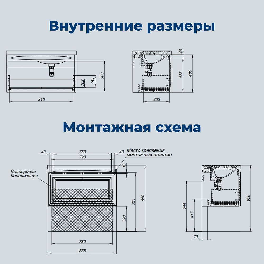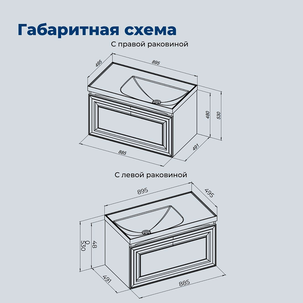 Мебель для ванной комнаты Aquanet Агата 90 R 1 ящик, бежевая
