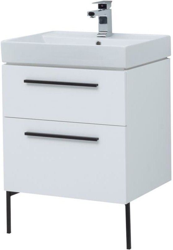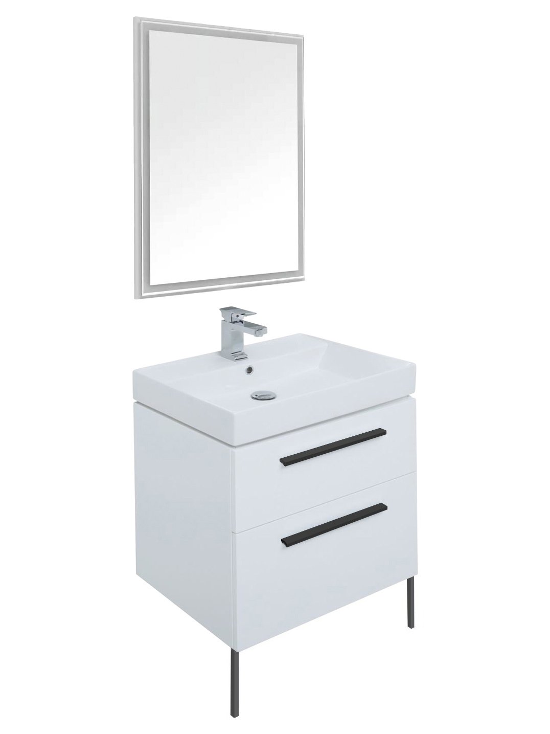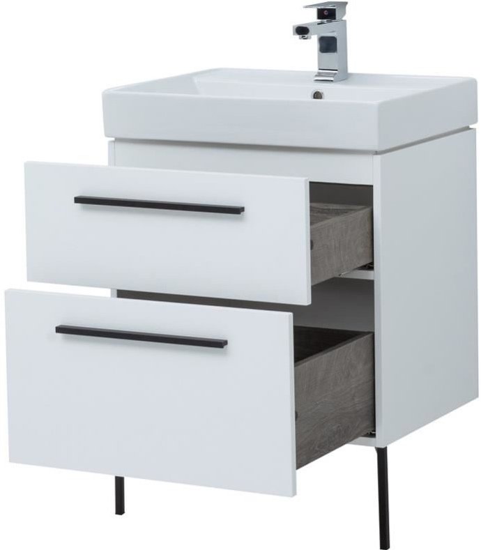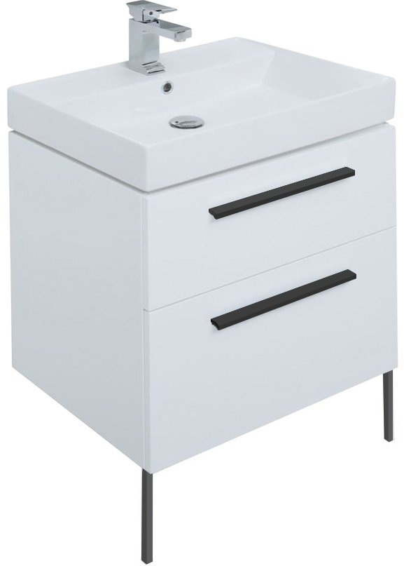 Мебель для ванной комнаты Aquanet Nova 60 2 ящика, белый глянец, ручки черные