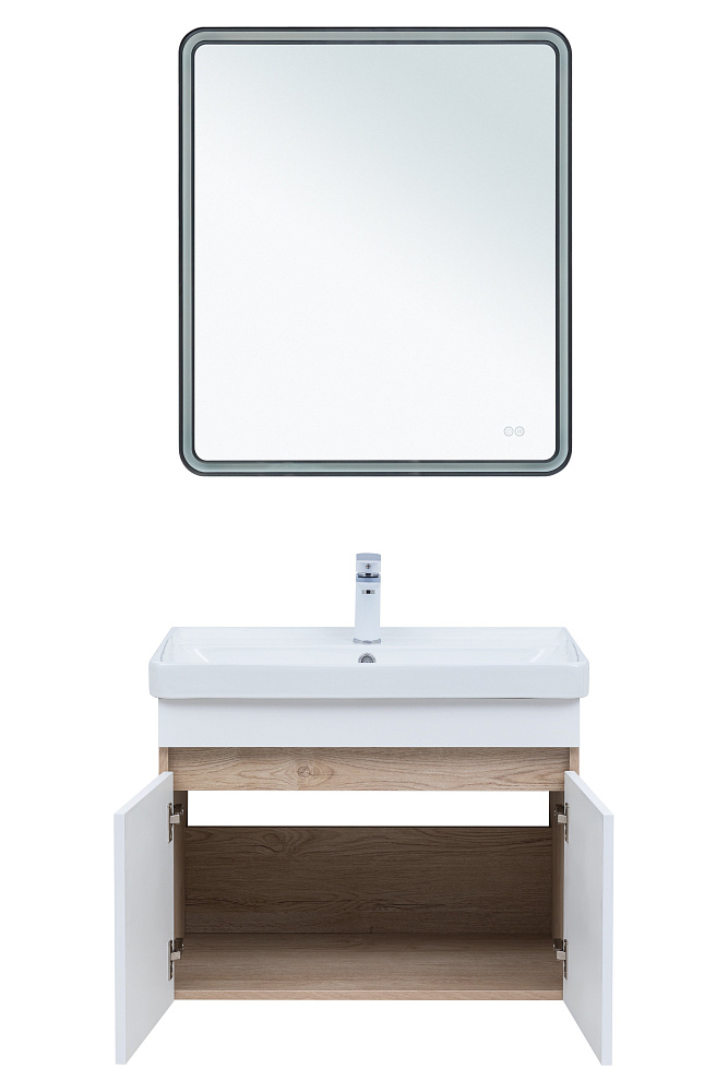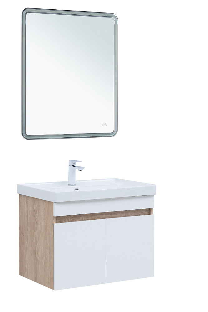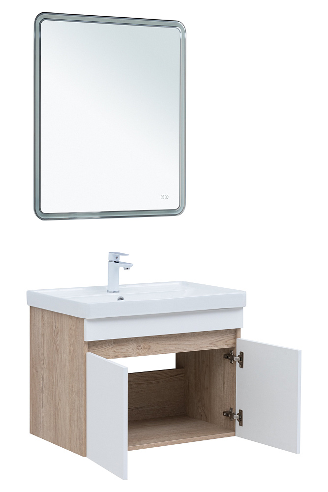 Мебель для ванной комнаты Aquanet Оптима 70 подвесная, дуб светлый, белый сатин