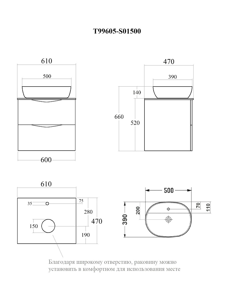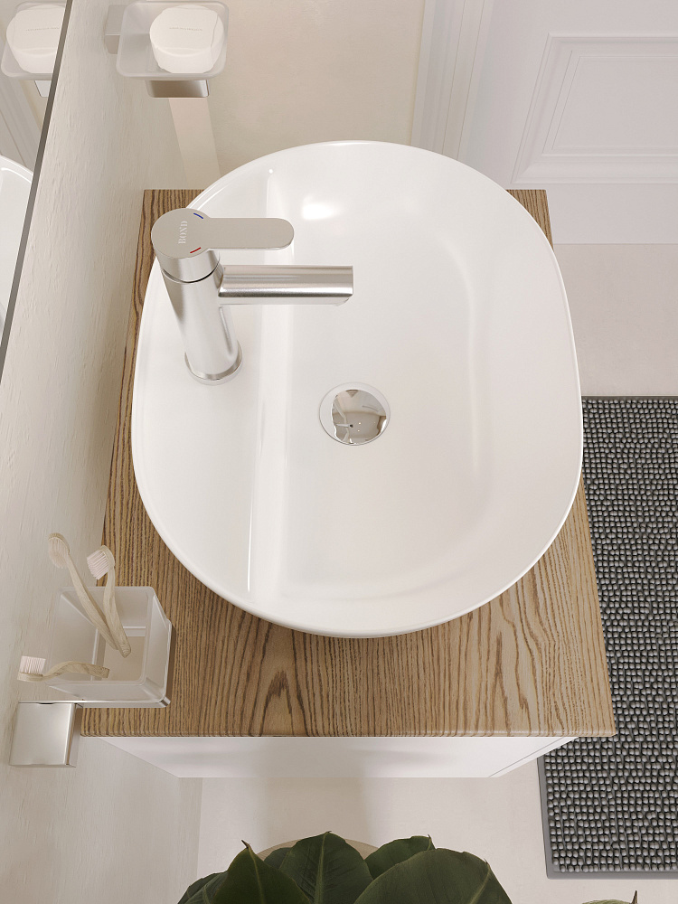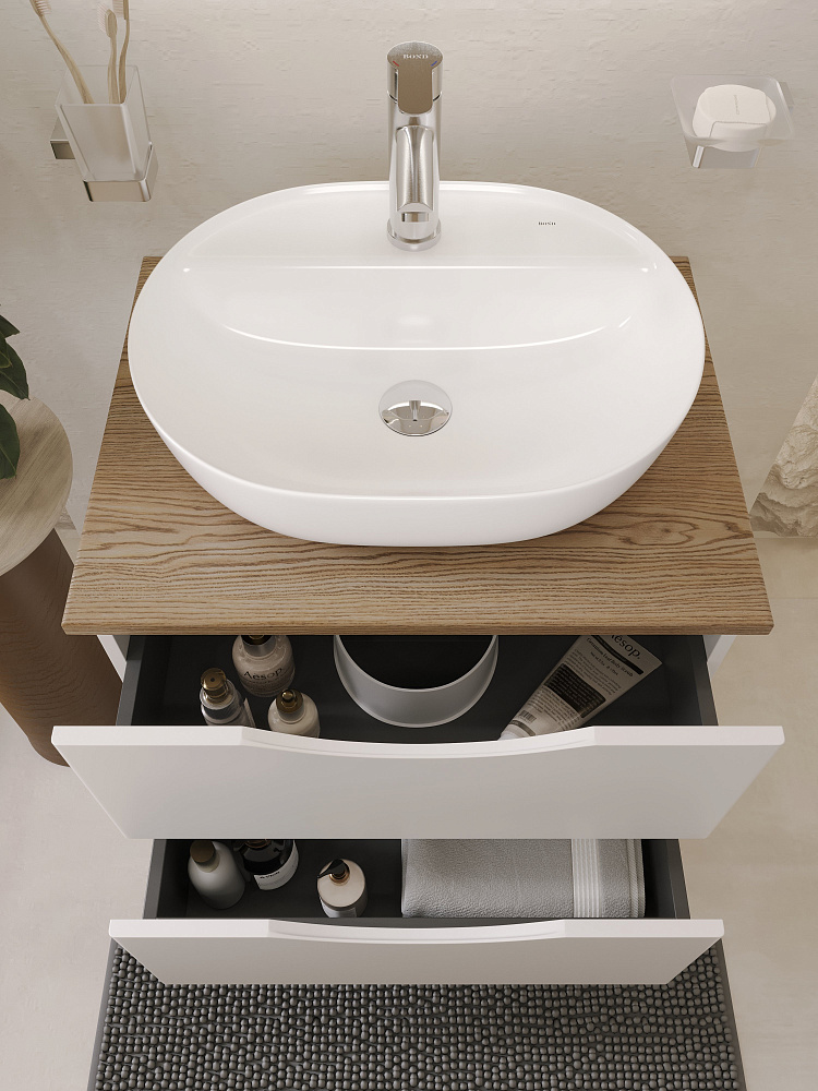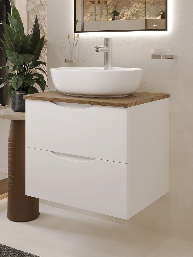 Мебель для ванной комнаты BOND Куб 60 подвесная, матовая белая, под дерево, с раковиной Oval S01-500, зеркало Cube M36ZE