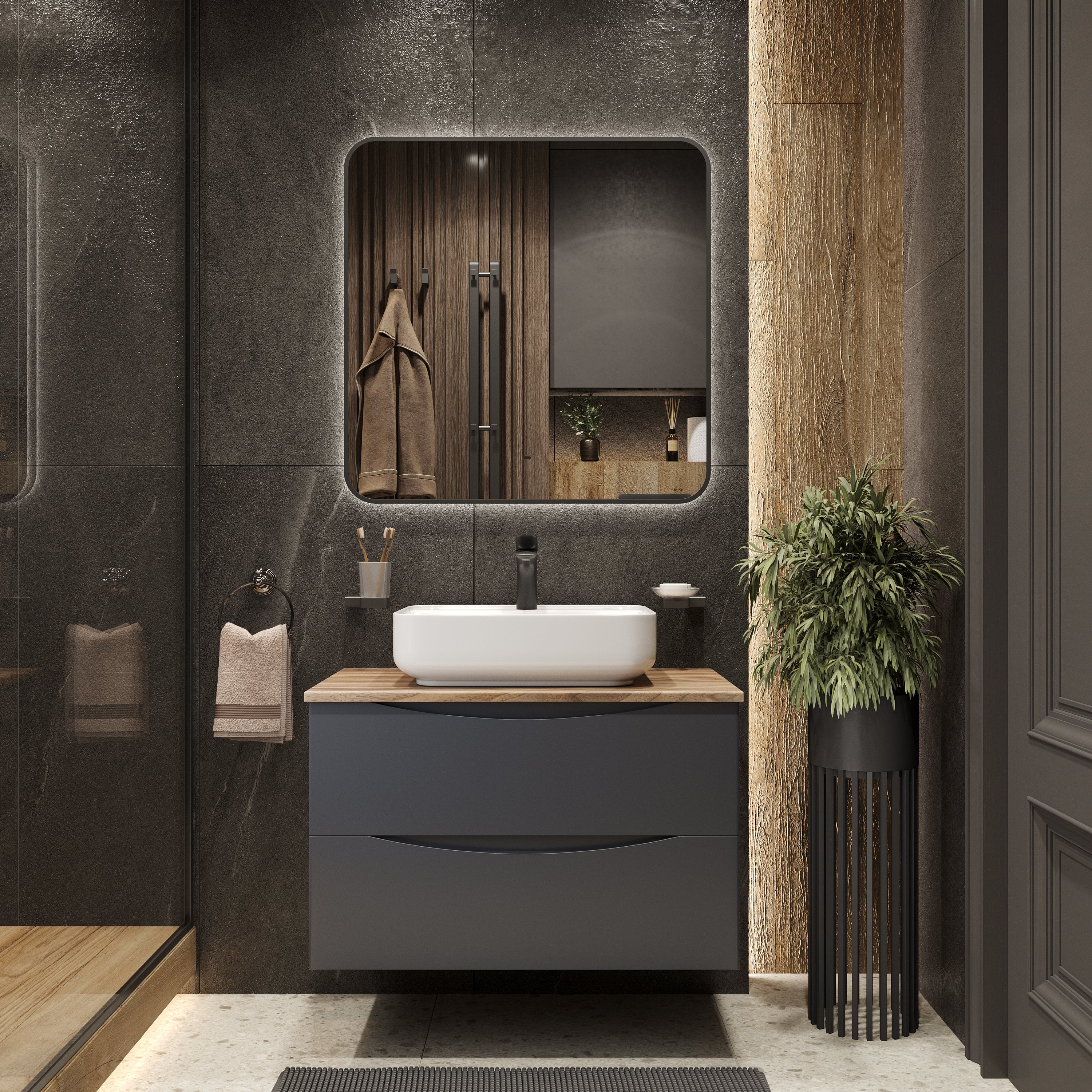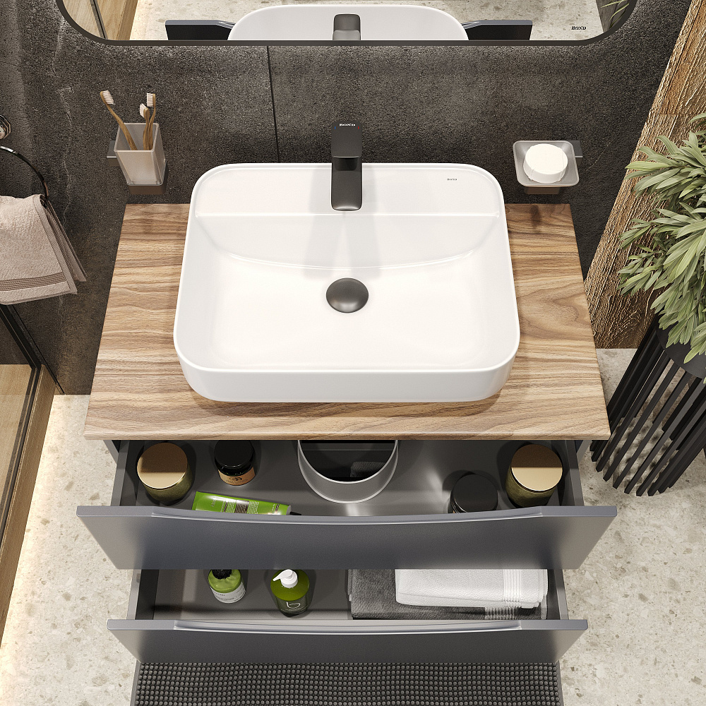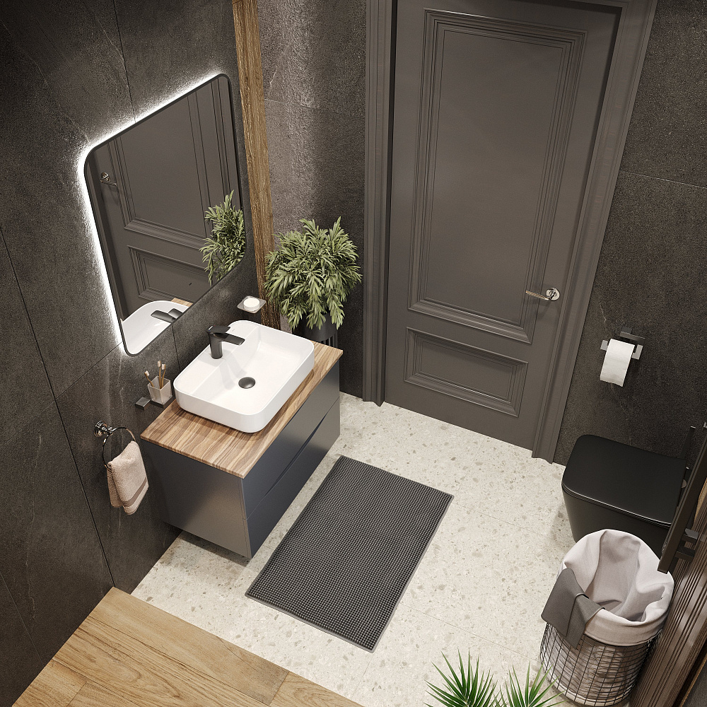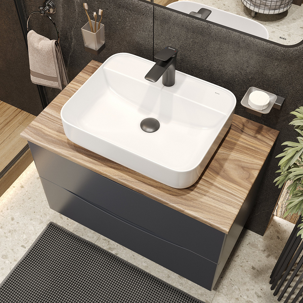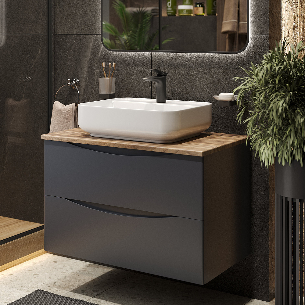 Мебель для ванной комнаты BOND Куб 80 подвесная, серая, под дерево, с раковиной Cube S13-500