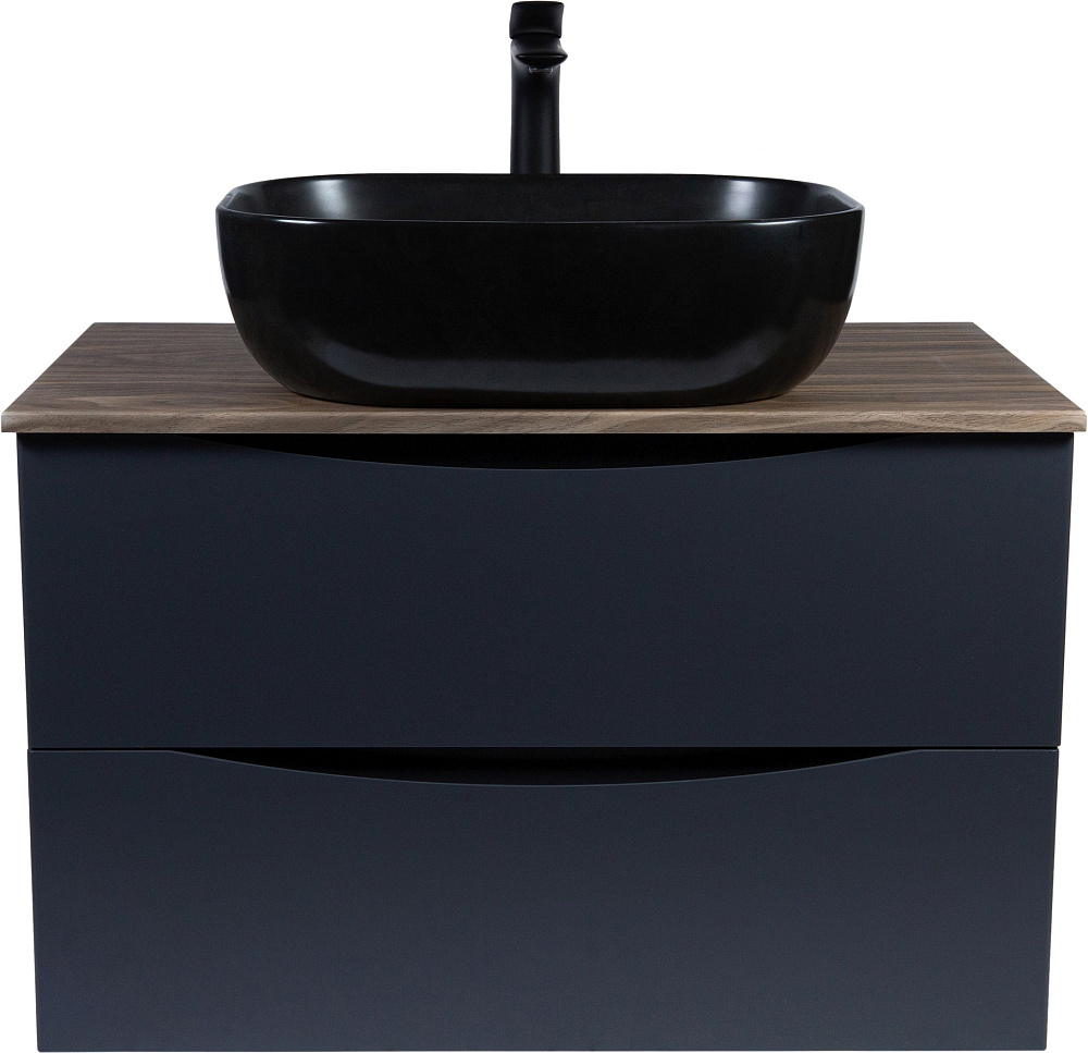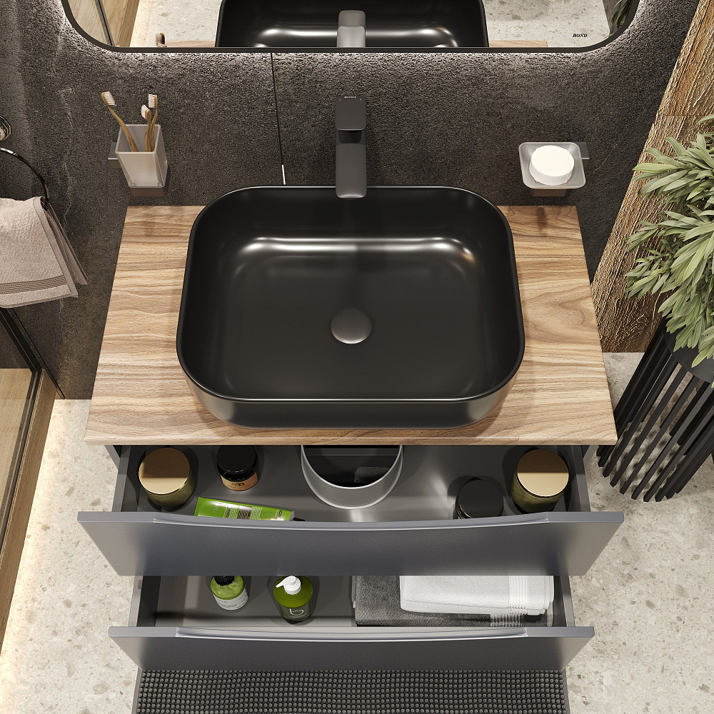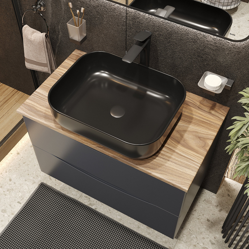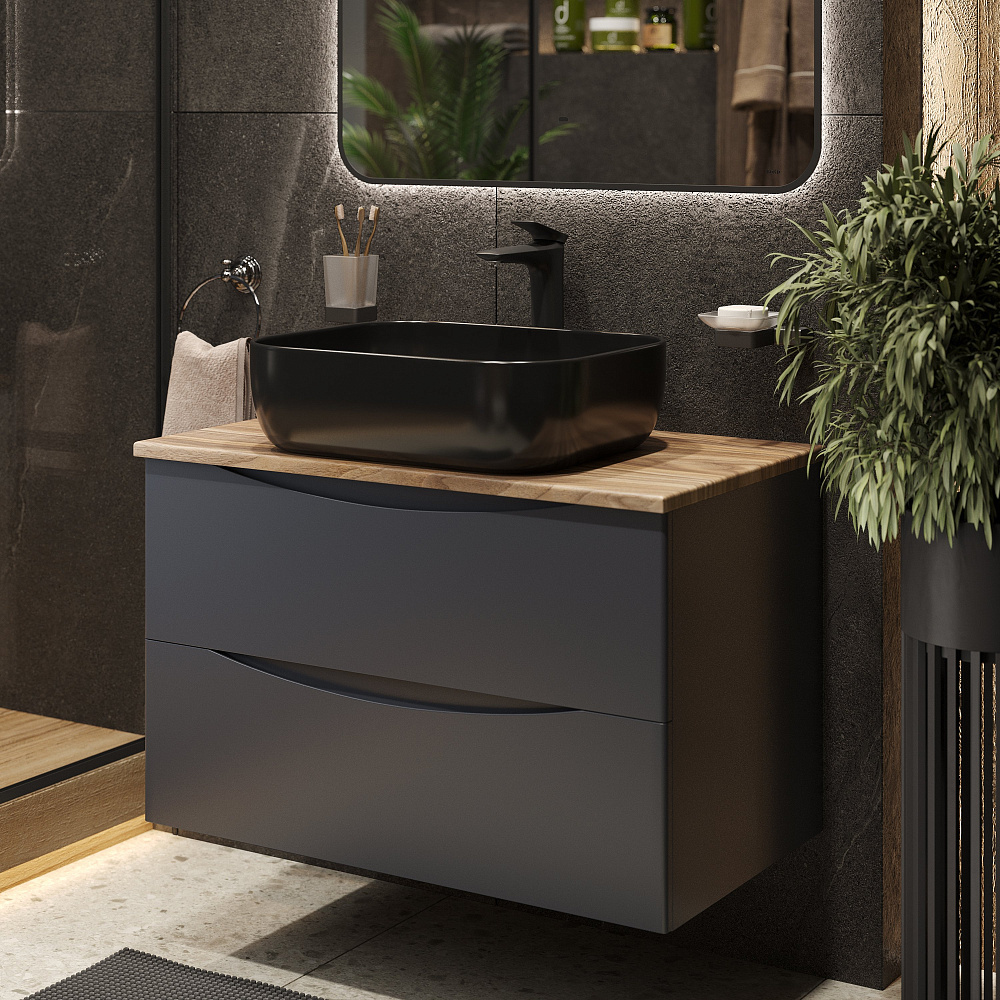 Мебель для ванной комнаты BOND Куб 80 подвесная, серая, под дерево, с раковиной Cube S61-508 черная матовая