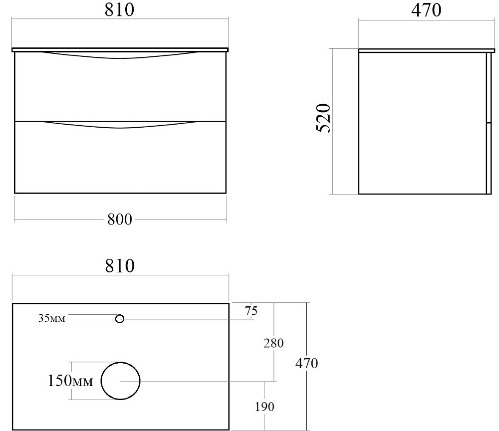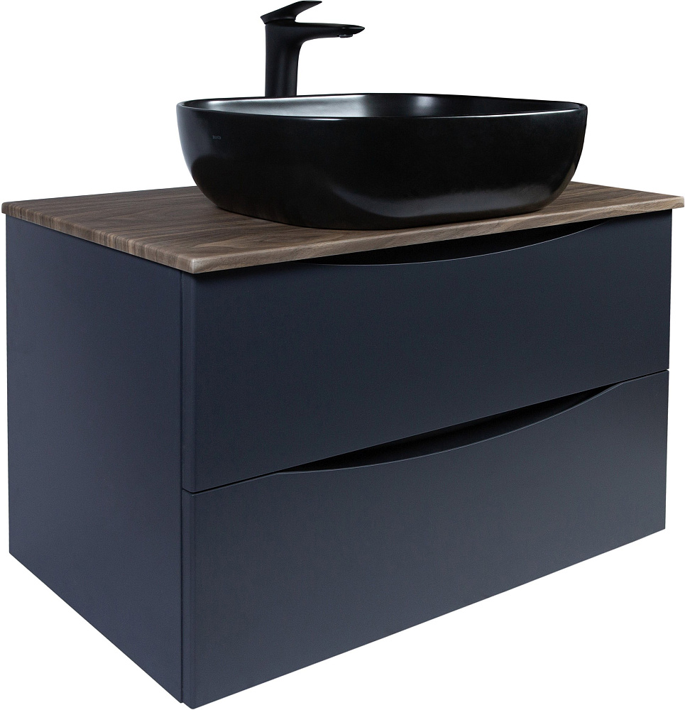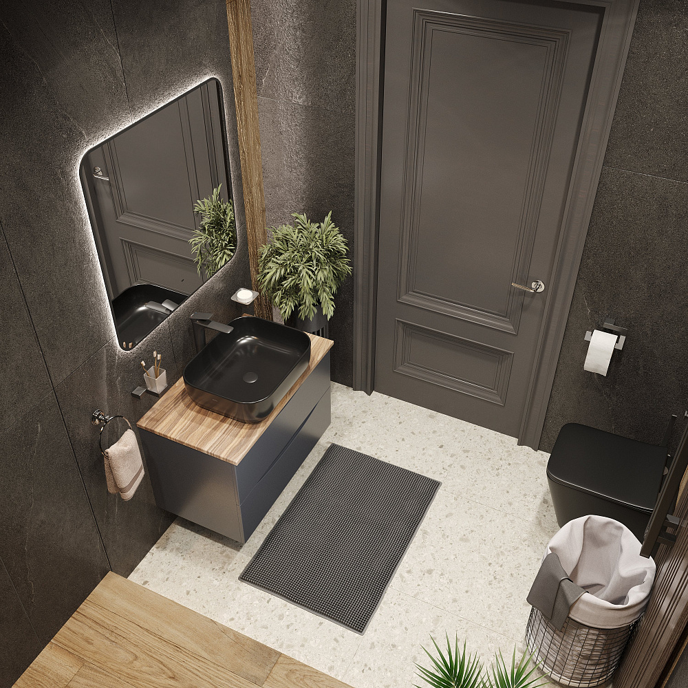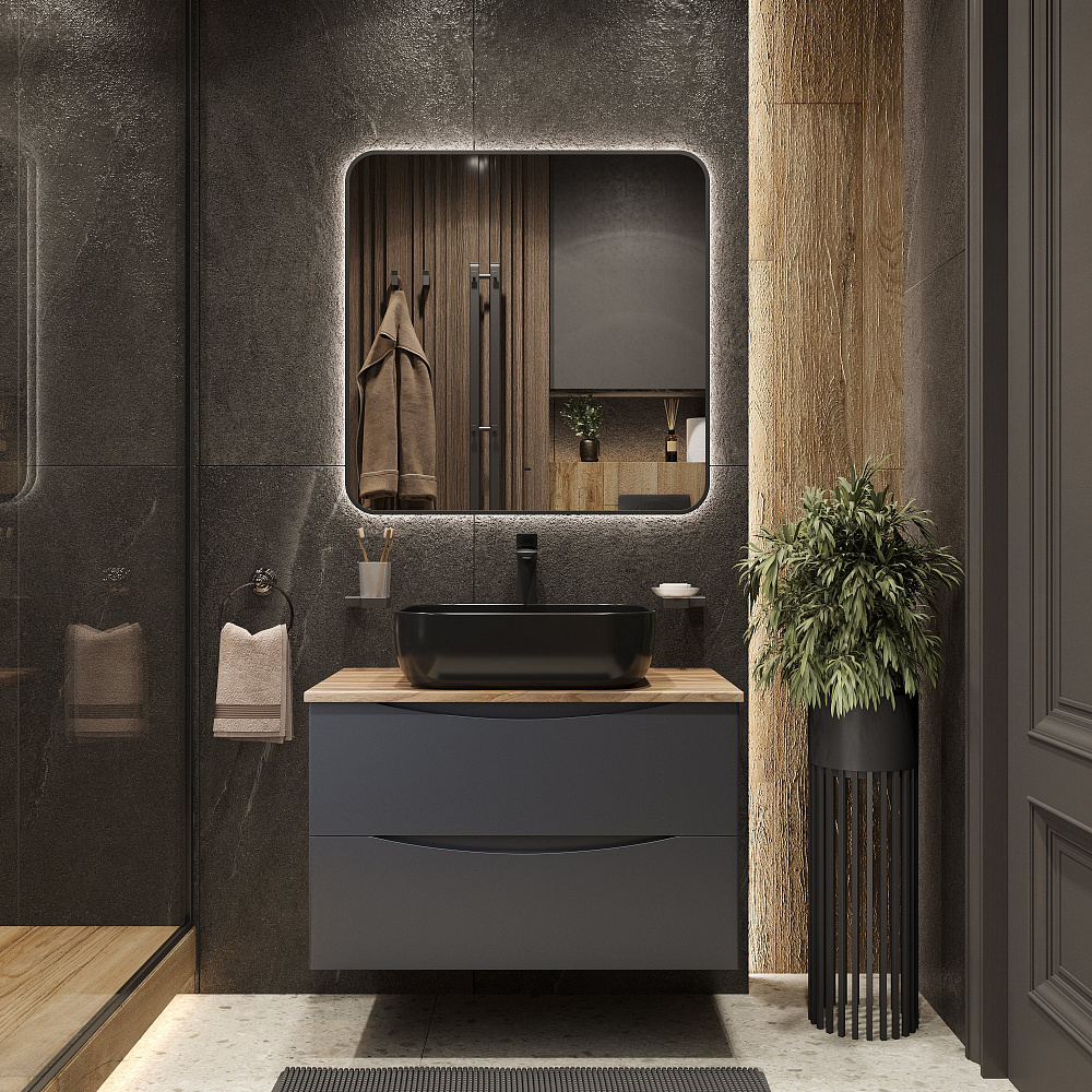Мебель для ванной комнаты BOND Куб 80 подвесная, серая, под дерево, с раковиной Cube S61-508 черная матовая
