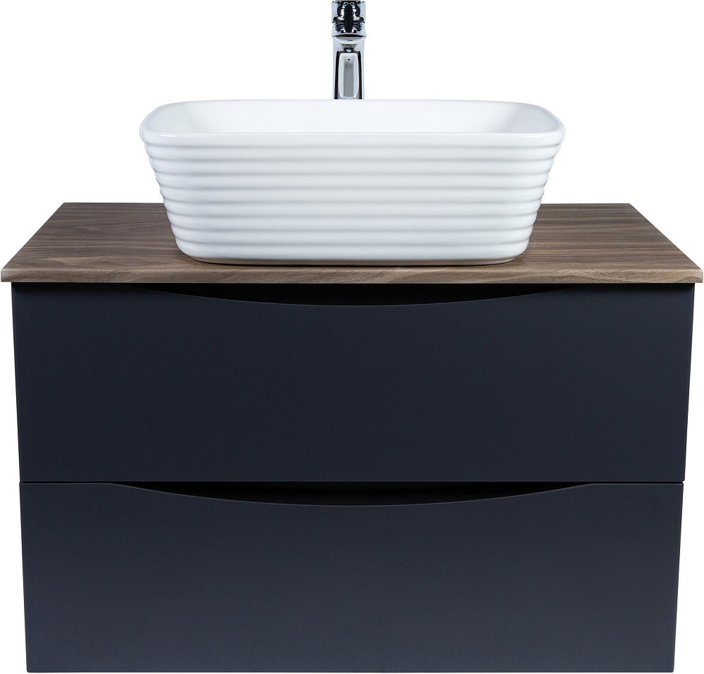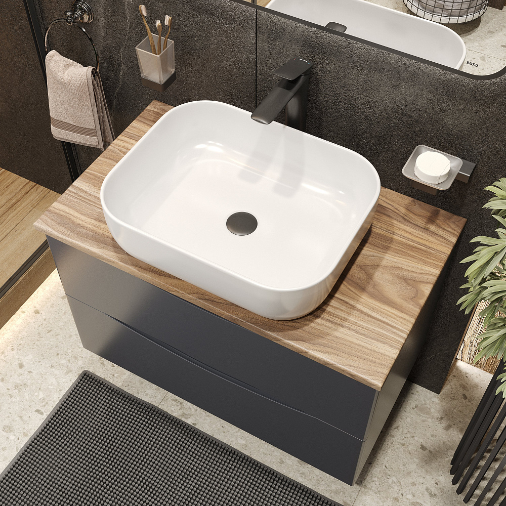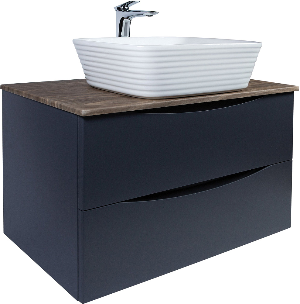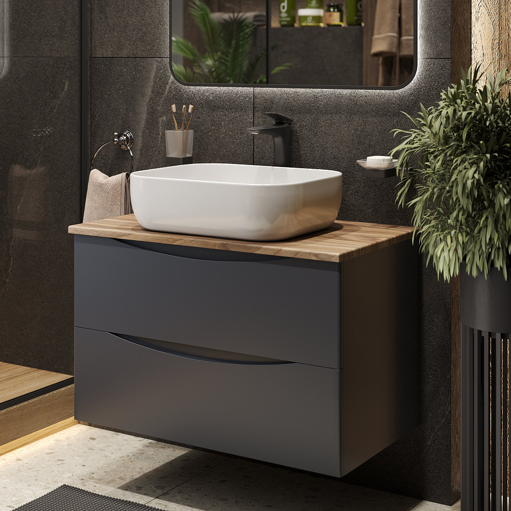 Мебель для ванной комнаты BOND Куб 80 подвесная, серая, под дерево, с раковиной Cube S63-500