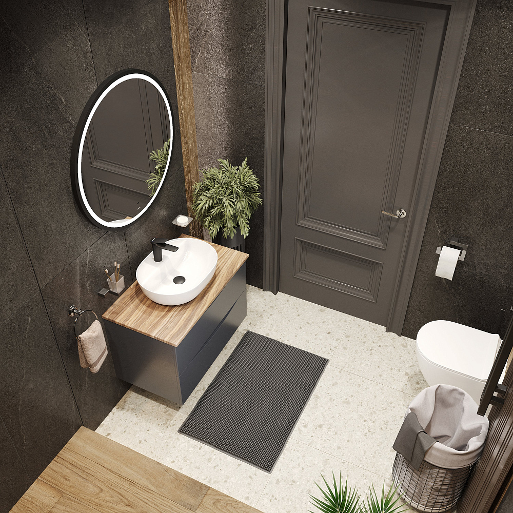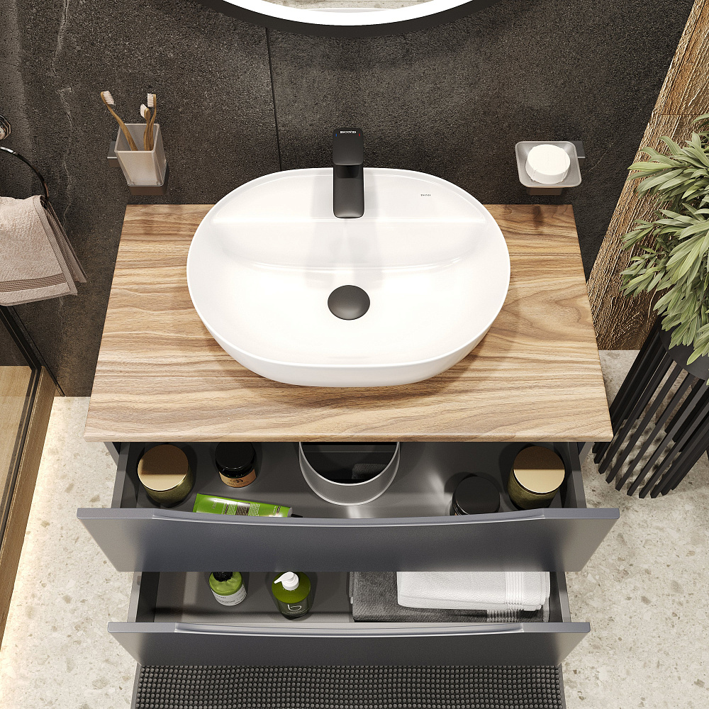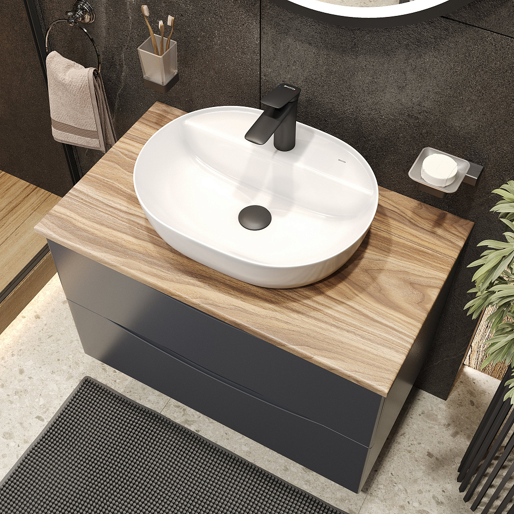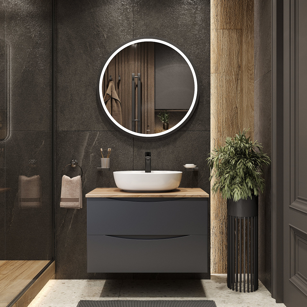 Мебель для ванной комнаты BOND Куб 80 подвесная, серая, под дерево, с раковиной Oval S01-500