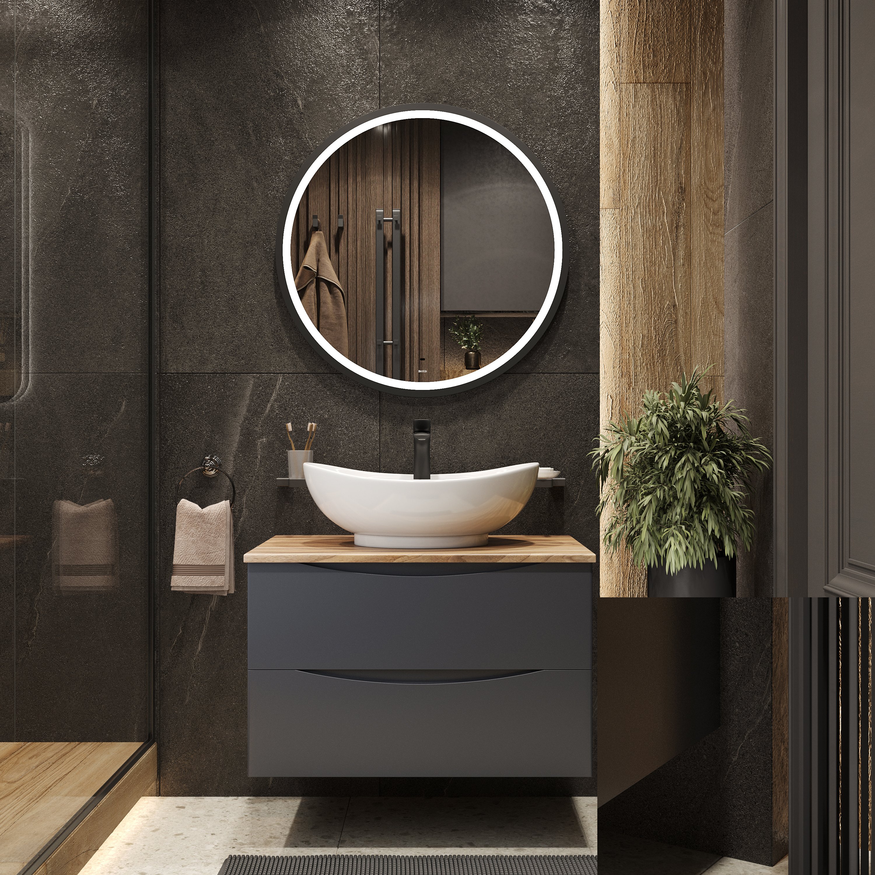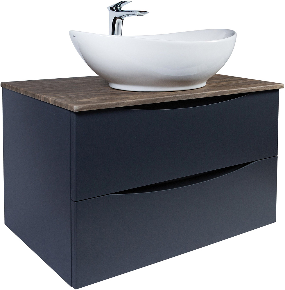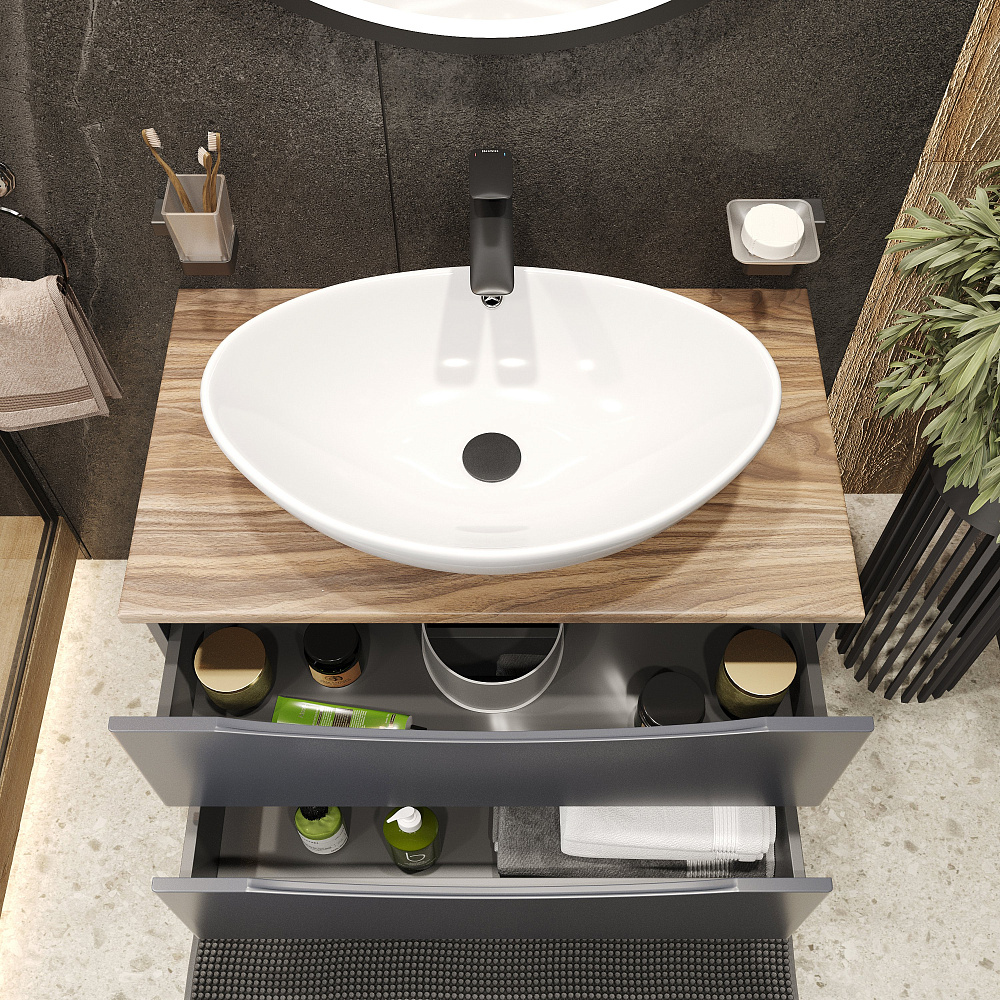 Мебель для ванной комнаты BOND Куб 80 подвесная, серая, под дерево, с раковиной Oval S55-590