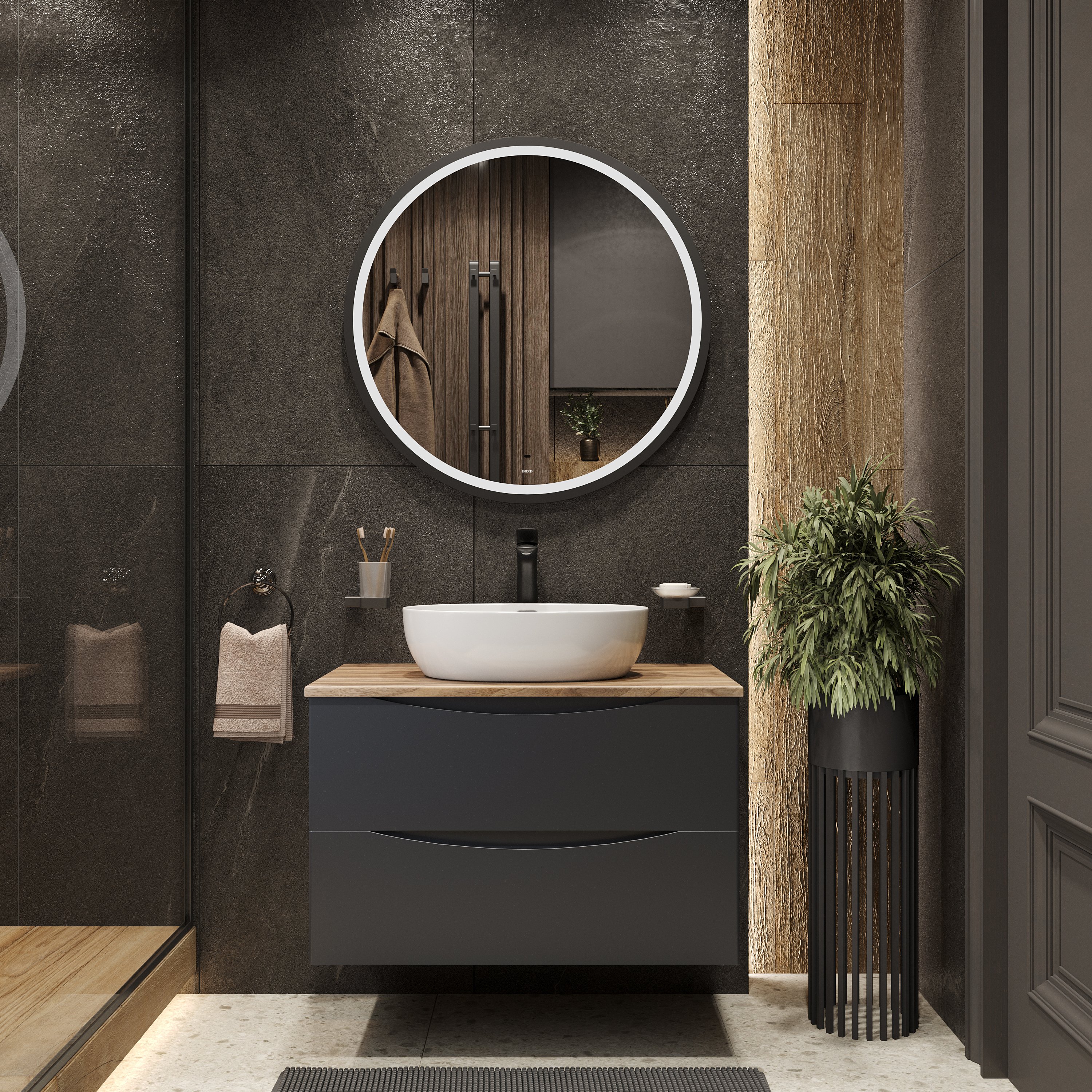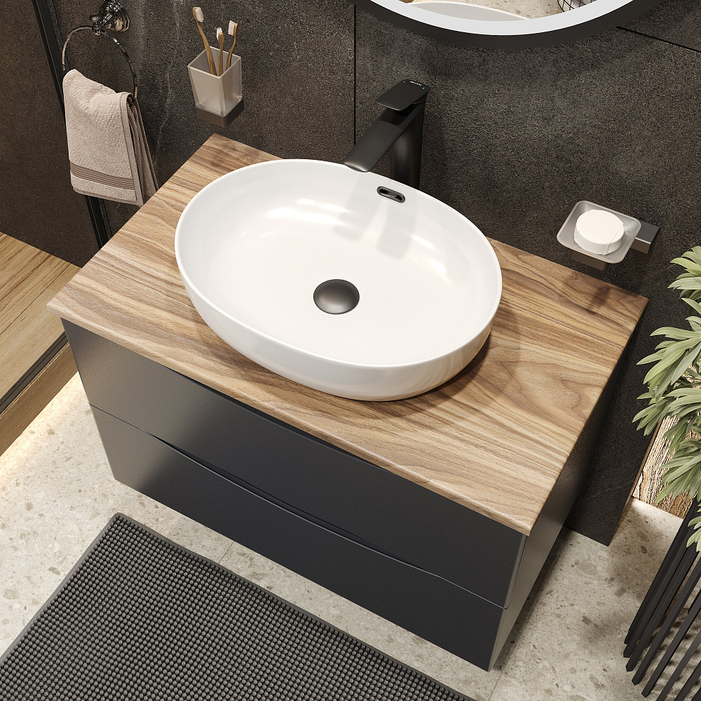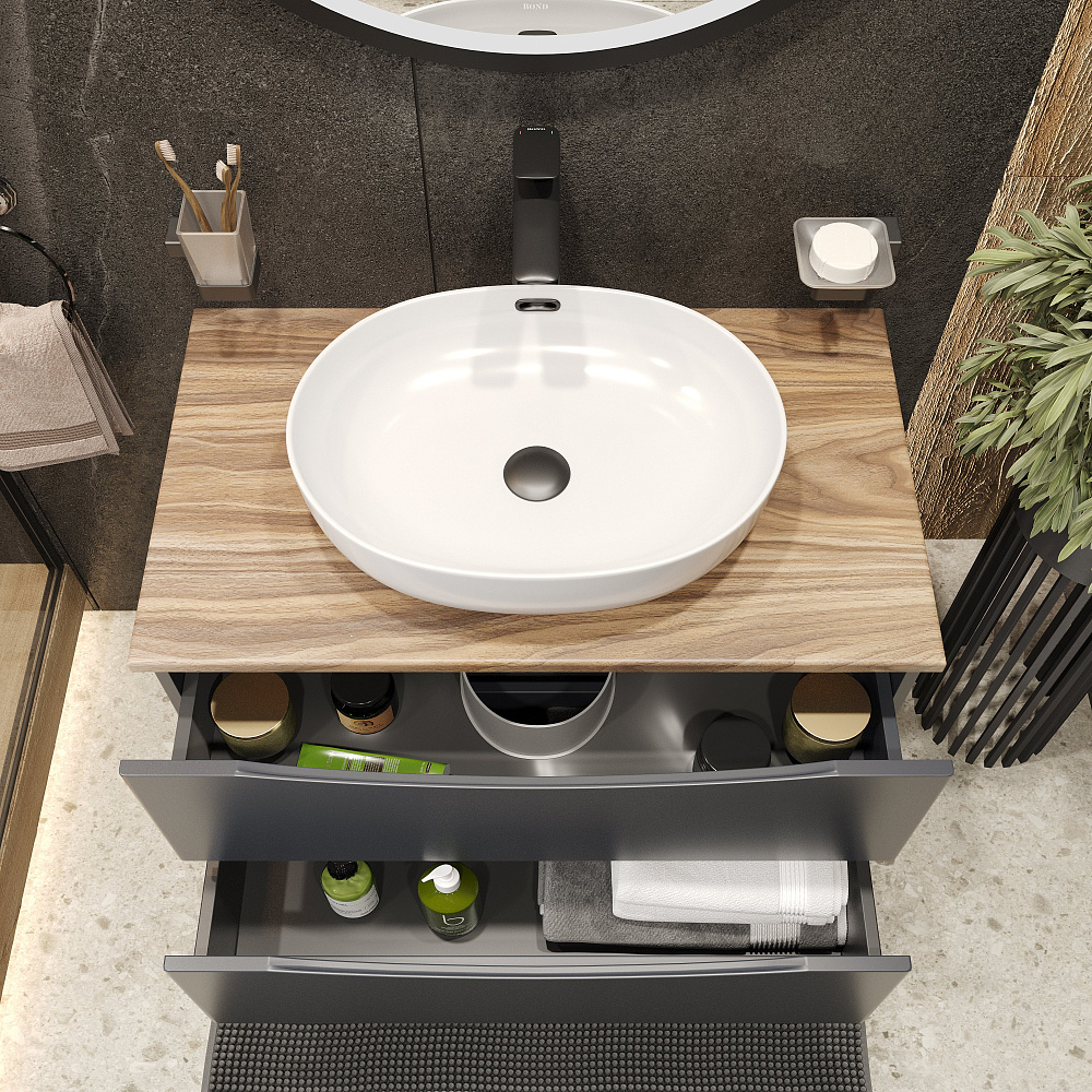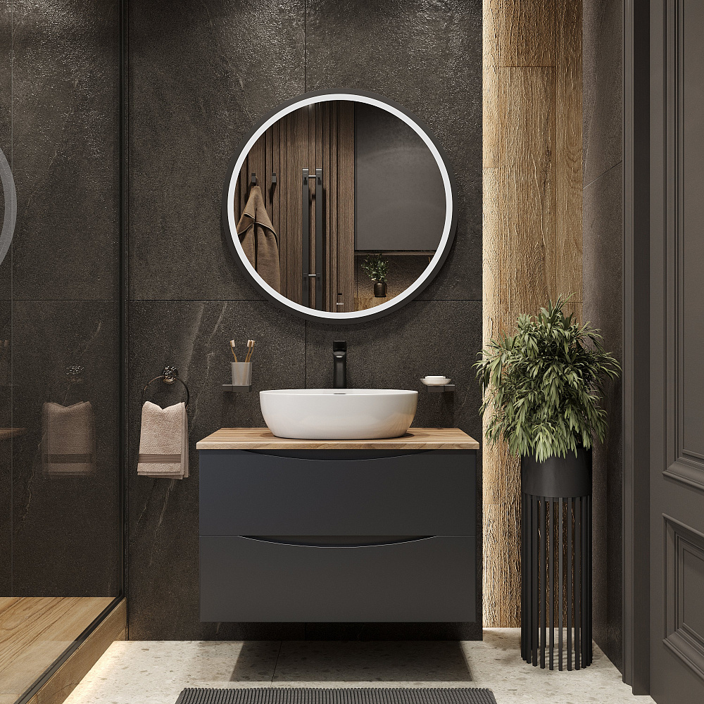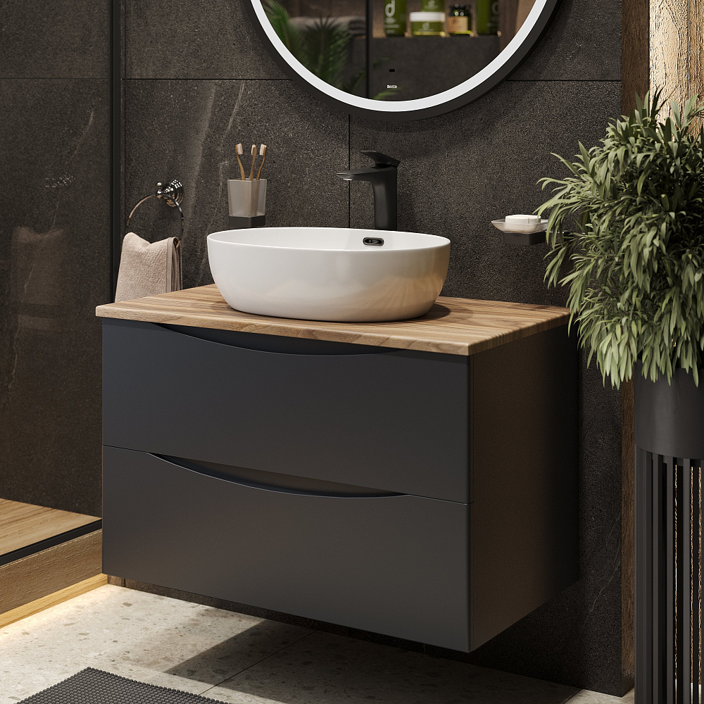 Мебель для ванной комнаты BOND Куб 80 подвесная, серая, под дерево, с раковиной Oval S65-490