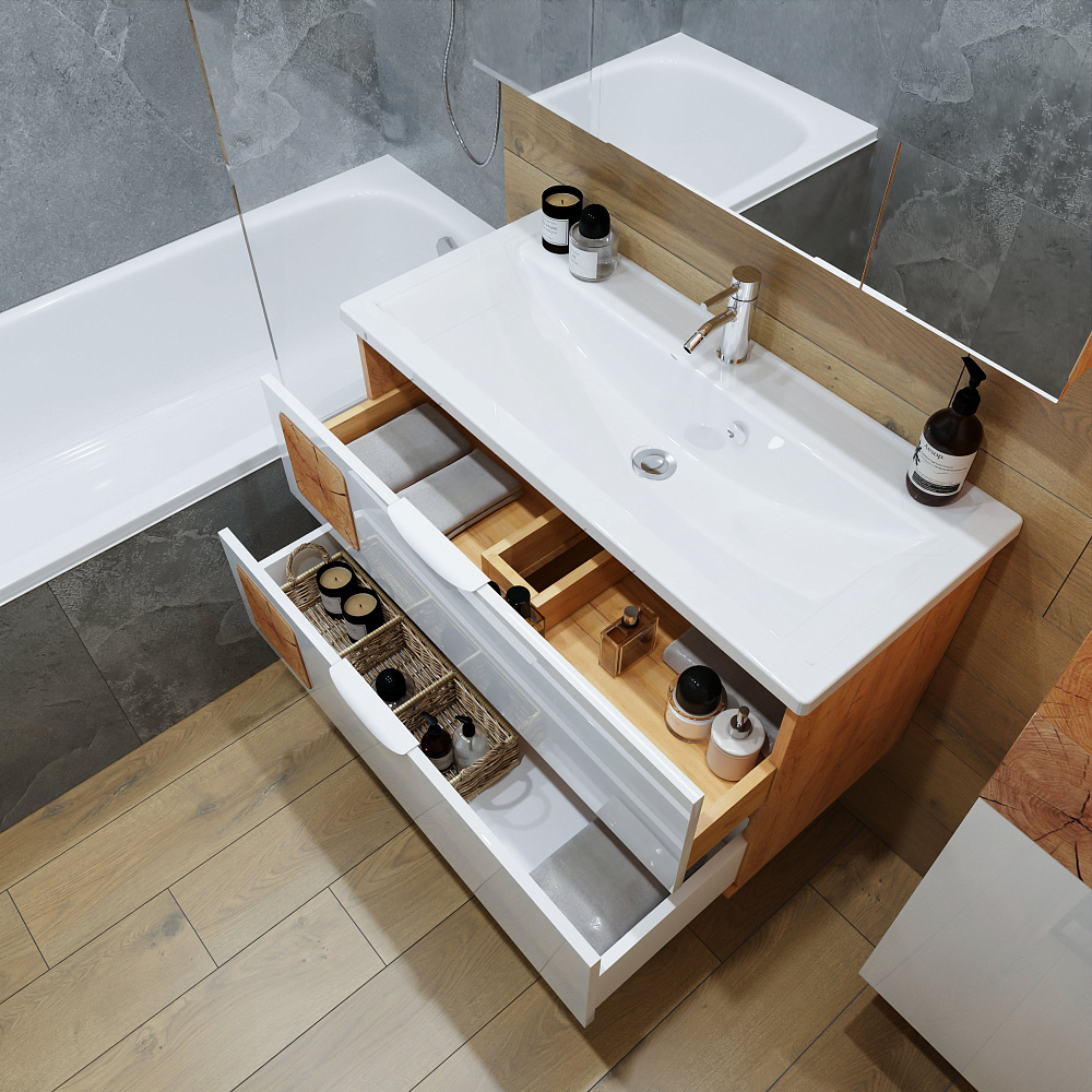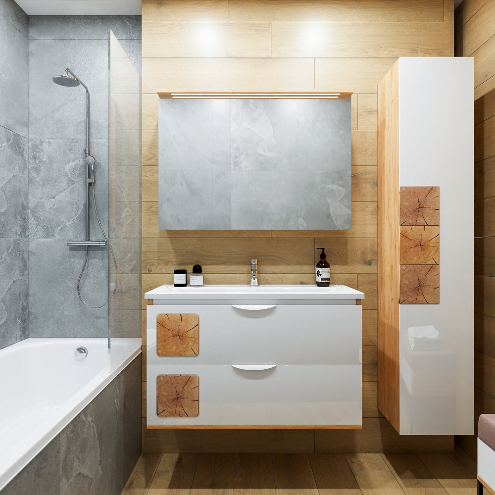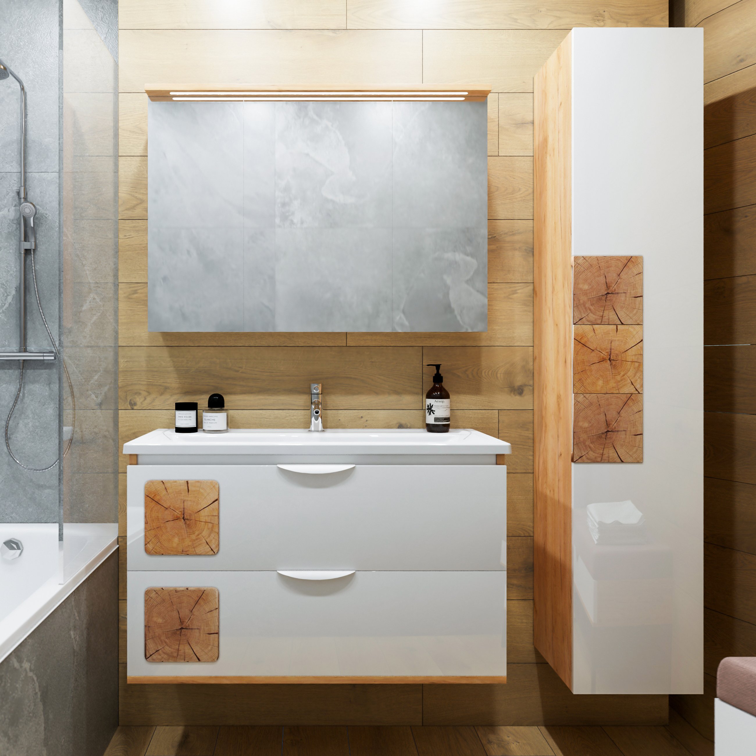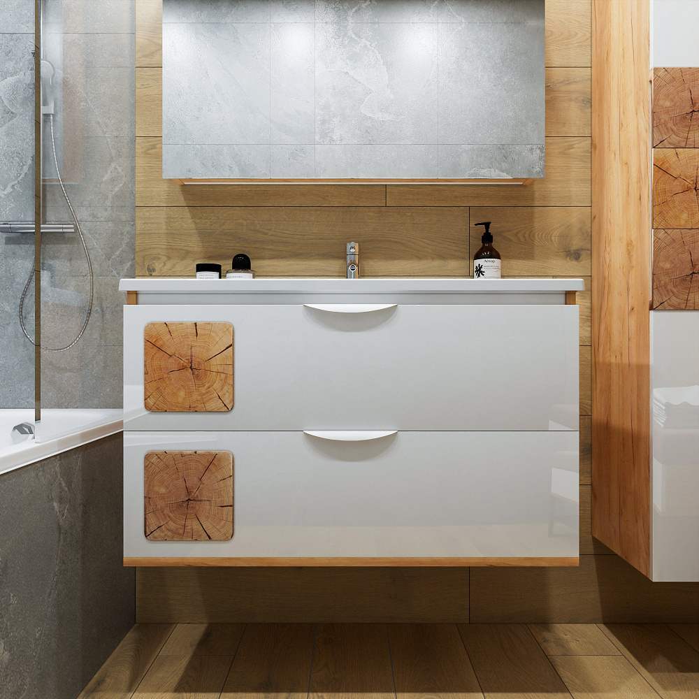 Мебель для ванной комнаты «Бриклаер Форест 100» — это стильное и функциональное решение для вашего санузла. Корпус гарнитура выполнен из ЛДСП толщиной 16 мм, что обеспечивает прочность и долговечность конструкции. Фасады покрыты лаком и украшены вставками из ЛДСП с рисунком «пенёк», добавляя интерьеру оригинальности и уюта. Отсутствие задней стенки позволяет легко подвести трубы, что упрощает процесс монтажа и экономит пространство. Этот гарнитур станет прекрасным дополнением к вашей ванной комнате, создавая атмосферу комфорта и гармонии. Раковина Mario 100, входящая в комплект, дополняет образ гарнитура, подчёркивая его элегантность и изысканность. Её плавные линии и утончённый дизайн идеально сочетаются с общим стилем мебели, создавая завершённый и гармоничный образ. Выбирая мебель для ванной комнаты «Бриклаер Форест 100», вы получаете не только качественный и функциональный гарнитур, но и возможность преобразить своё пространство, сделав его по-настоящему уютным и стильным.