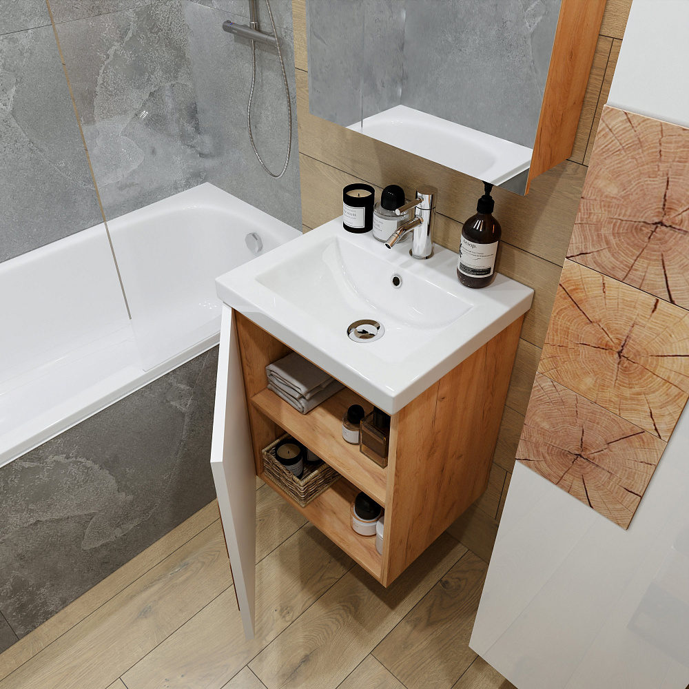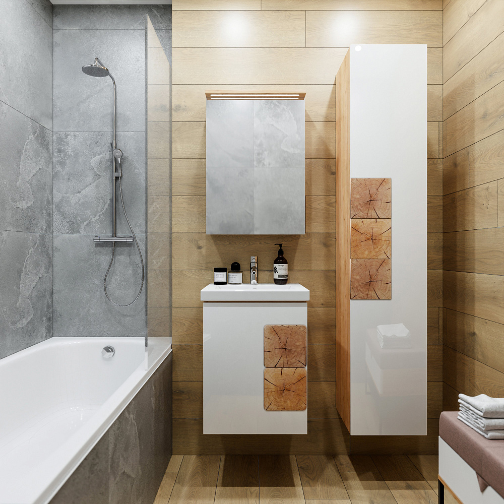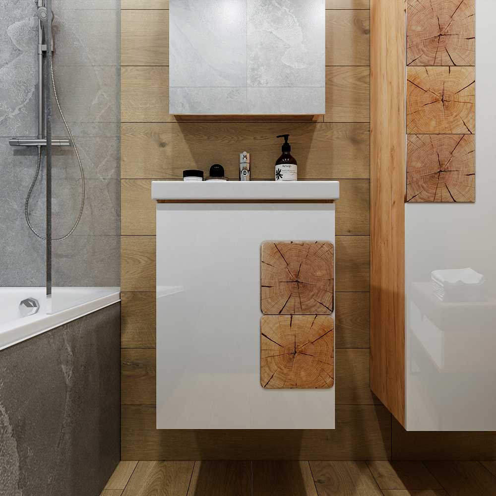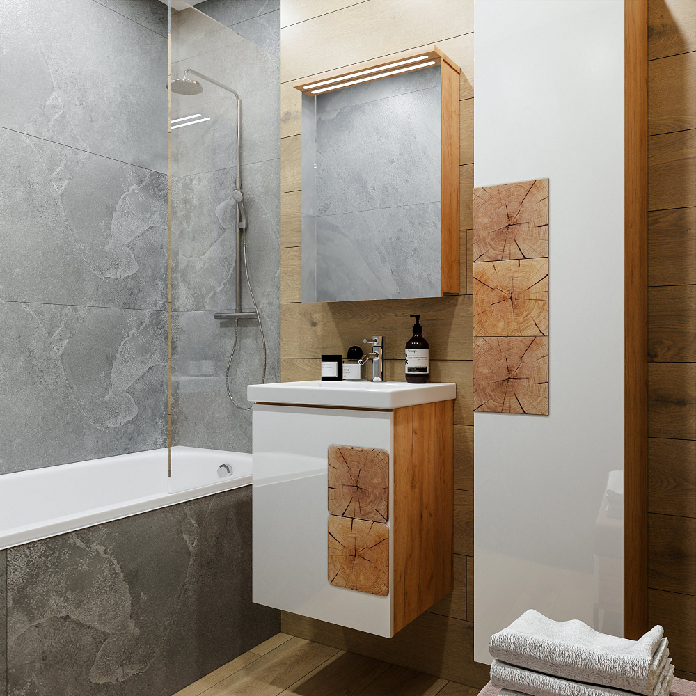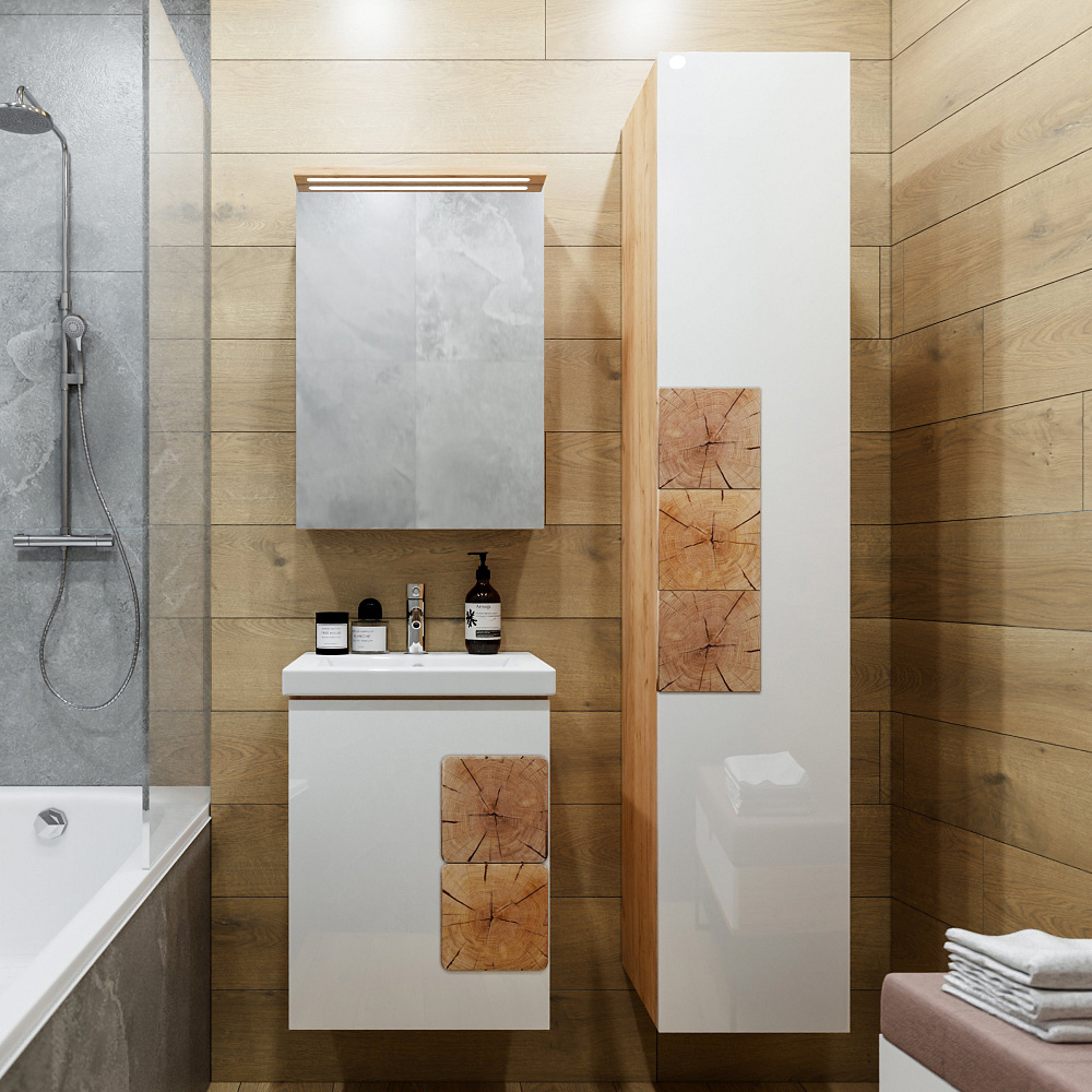 Мебель для ванной комнаты «Бриклаер Форест 50» — это изысканное и функциональное решение для вашего интерьера. Гарнитур выполнен из высококачественных материалов, которые обеспечивают долговечность и надёжность конструкции. Корпус мебели изготовлен из ЛДСП толщиной 16 мм, что гарантирует его прочность и устойчивость к механическим повреждениям. Фасады покрыты лаком и украшены вставками из ЛДСП с рисунком «пенёк», что придаёт гарнитуру особый шарм и делает его по-настоящему уникальным. Отсутствие задней стенки позволяет легко подвести трубы, что упрощает процесс монтажа и делает использование мебели ещё более удобным. «Бриклаер Форест 50» станет прекрасным дополнением к вашей ванной комнате, создавая атмосферу уюта и комфорта. Этот гарнитур не только функционален, но и красив, благодаря своему стильному дизайну и качественным материалам. Он подчеркнёт индивидуальность вашего интерьера и будет радовать вас долгие годы.
