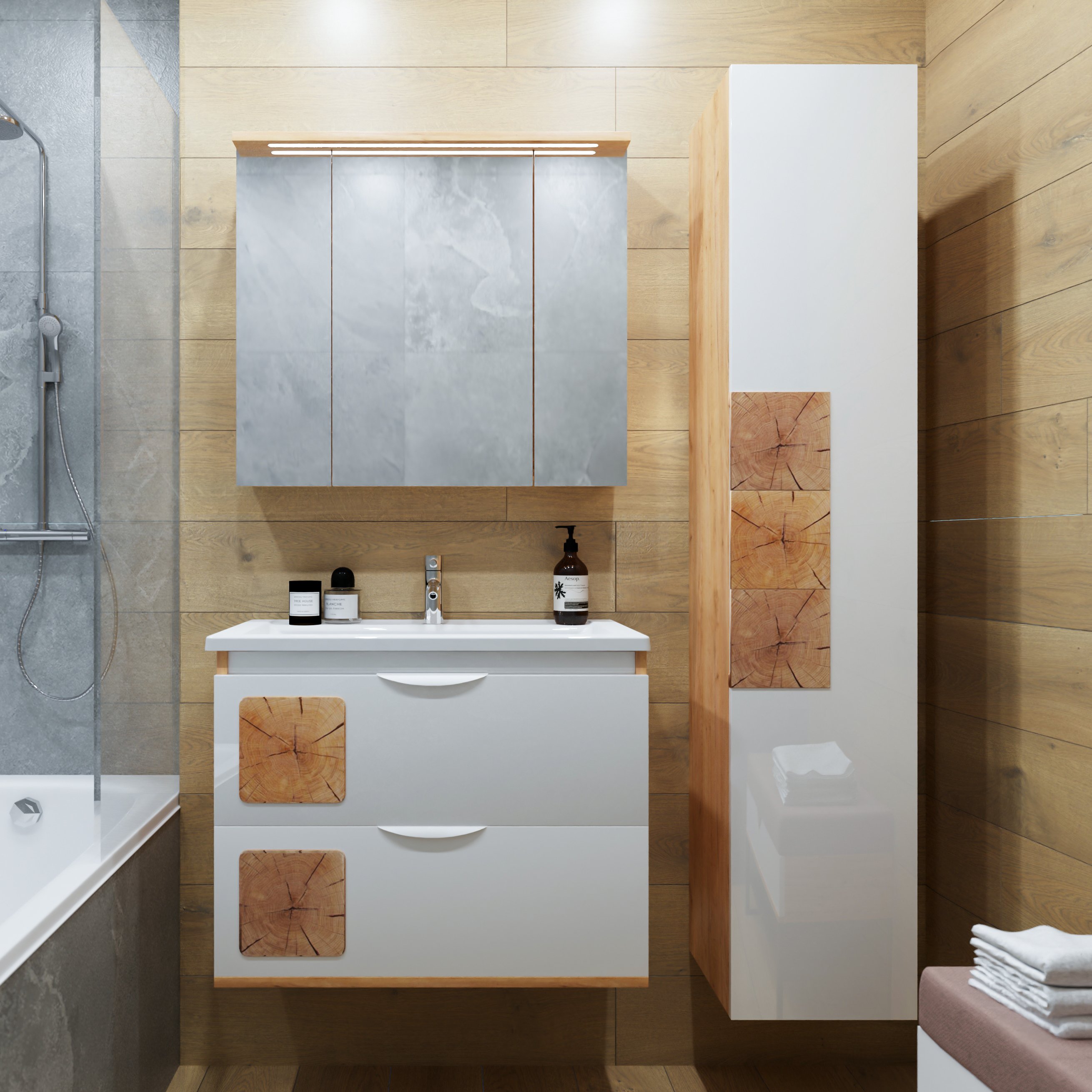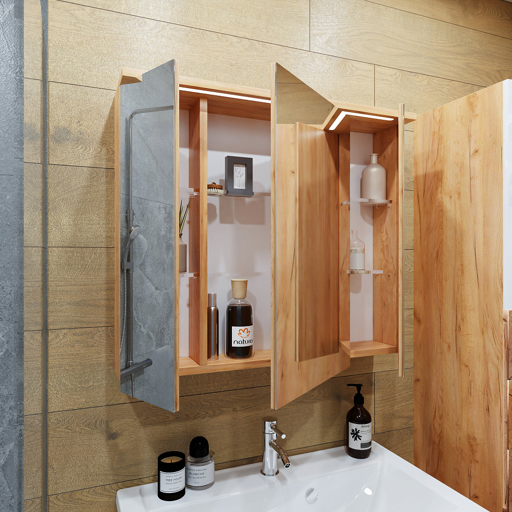 Мебель для ванной комнаты «Бриклаер Форест 80» — это идеальное сочетание стиля, качества и функциональности. Гарнитур выполнен из ЛДСП толщиной 16 мм, что обеспечивает прочность и долговечность конструкции. Фасады покрыты лаком и украшены вставками из ЛДСП с рисунком «пенёк», придавая мебели особый шарм и уникальность. Отсутствие задней стенки позволяет легко подвести трубы, обеспечивая удобство при монтаже и эксплуатации. Этот гарнитур станет прекрасным дополнением к вашей ванной комнате, создавая атмосферу уюта и комфорта. «Бриклаер Форест 80» доступен в элегантном сочетании дуба золотого и белого глянца, что делает его идеальным выбором для тех, кто ценит красоту и стиль в каждой детали. Эта мебель не только функциональна, но и способна преобразить пространство, придавая ему особый характер и изысканность.